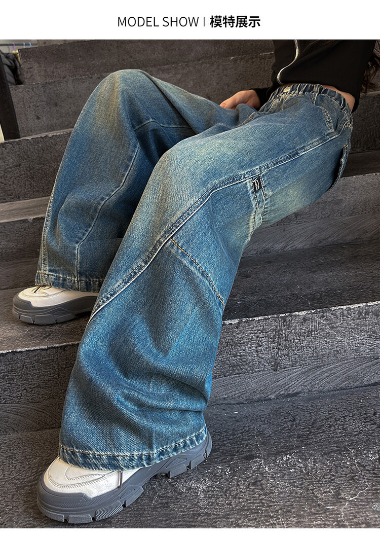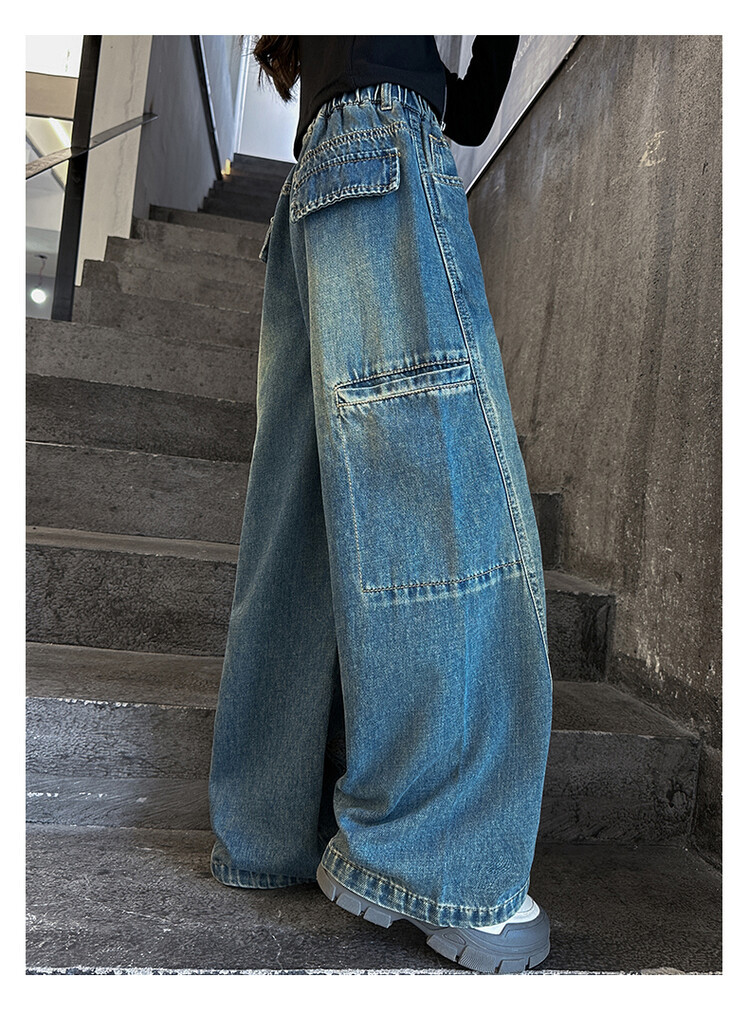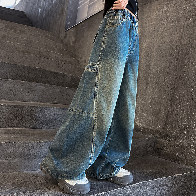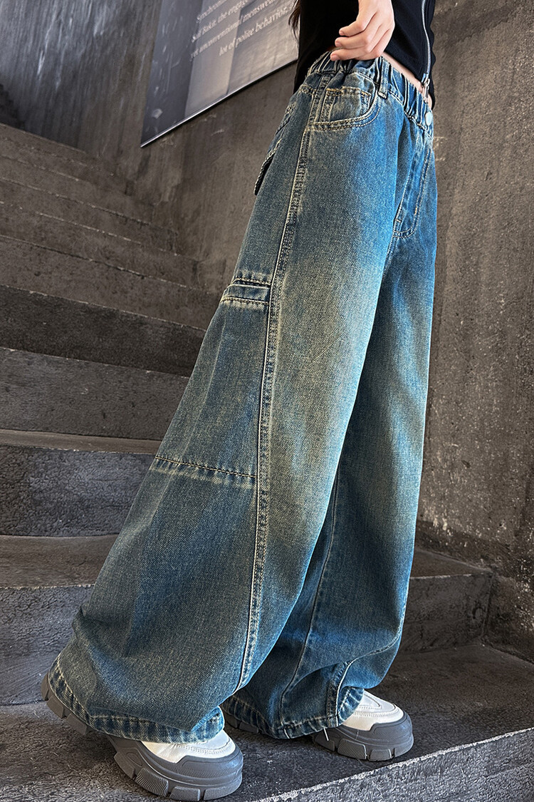 미국 블루 레트로 툴링 청바지 소녀 2024 봄 새로운 스트레이트 높은 허리 슬리밍 디자인 센스스토어 가기