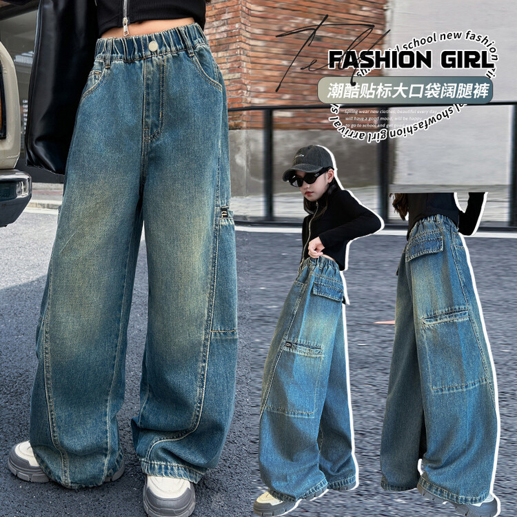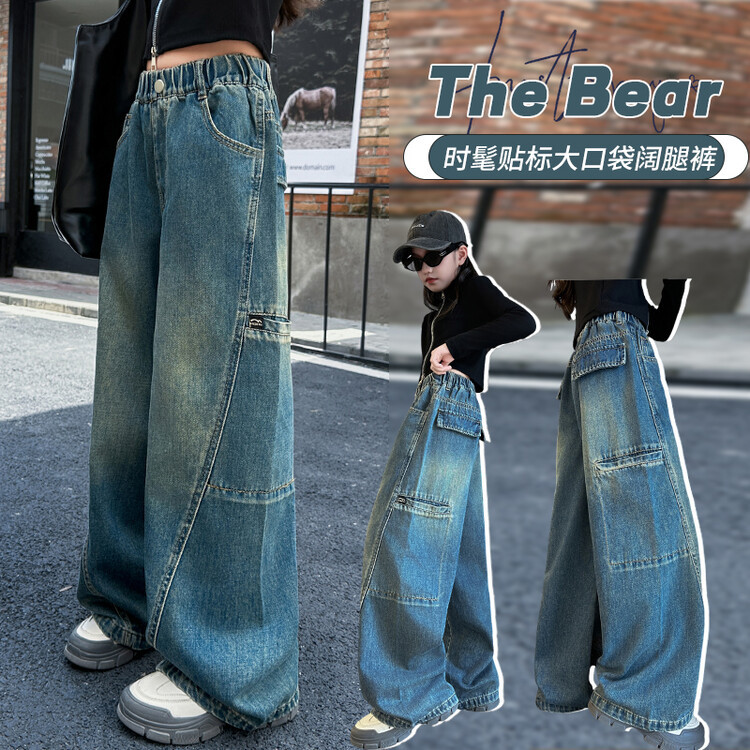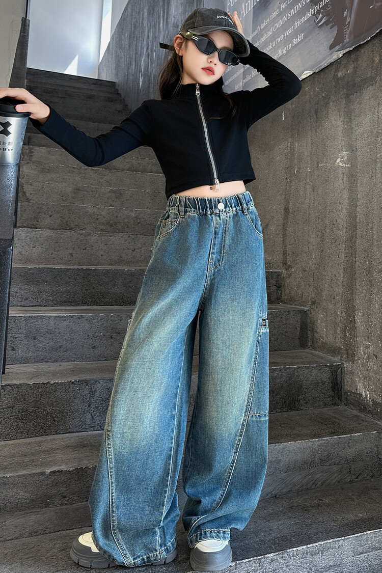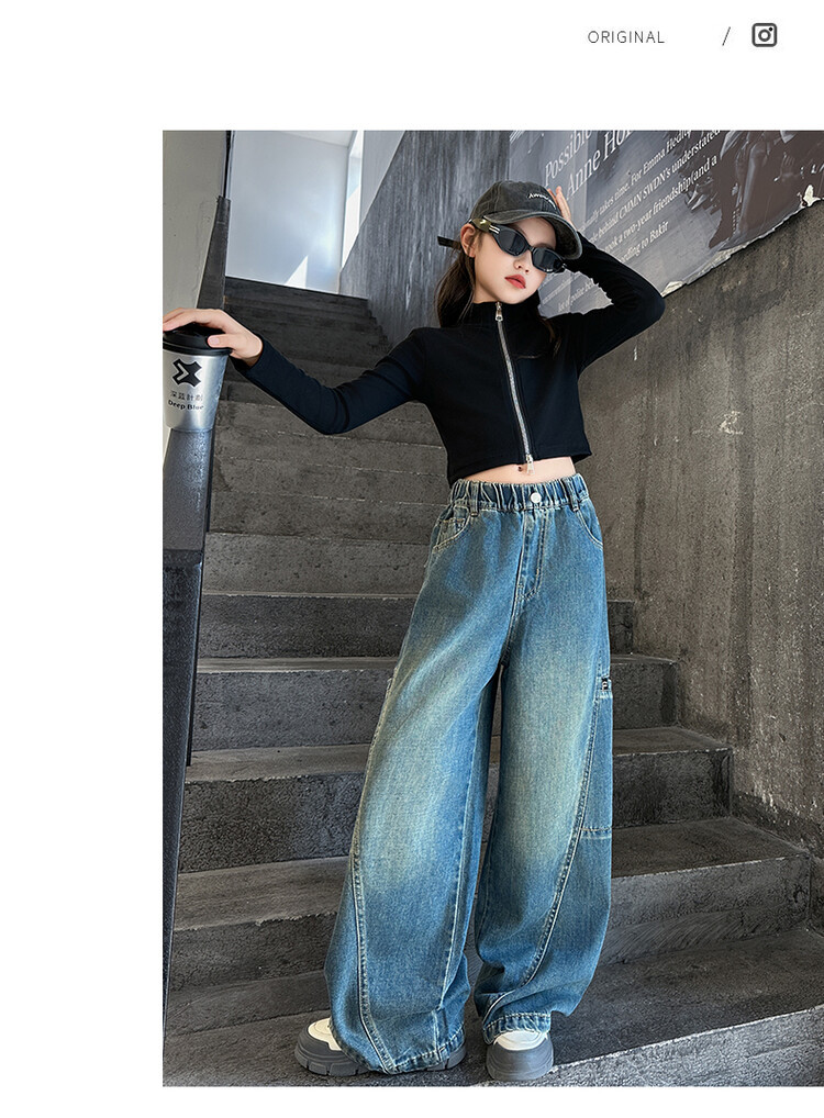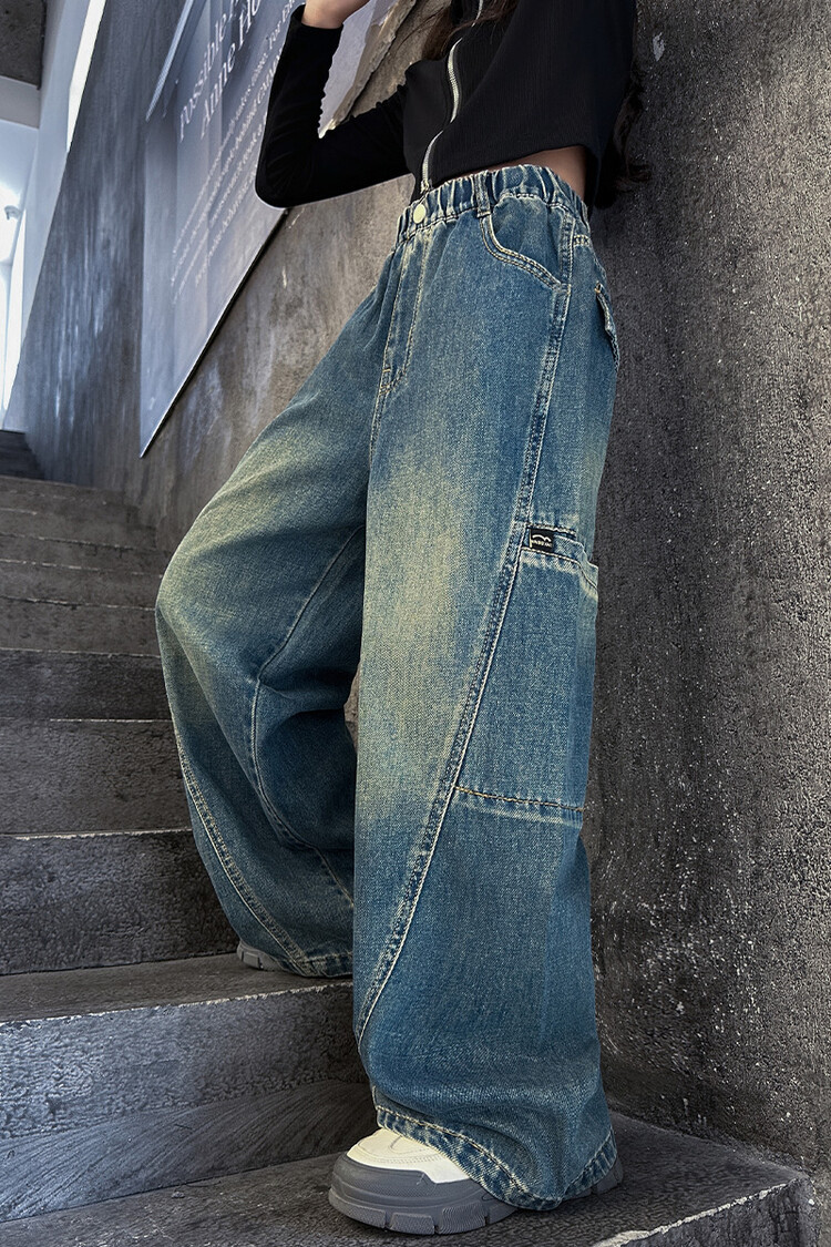 미국 블루 레트로 툴링 청바지 소녀 2024 봄 새로운 스트레이트 높은 허리 슬리밍 디자인 센스스토어 가기