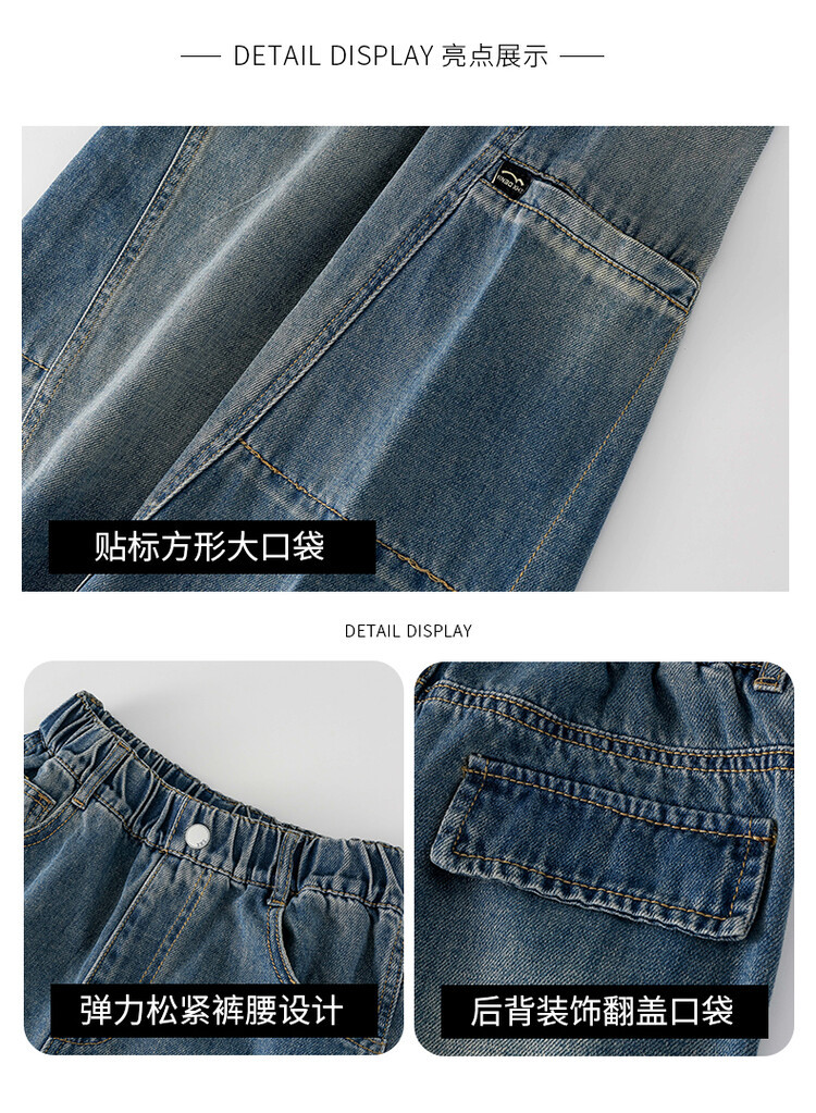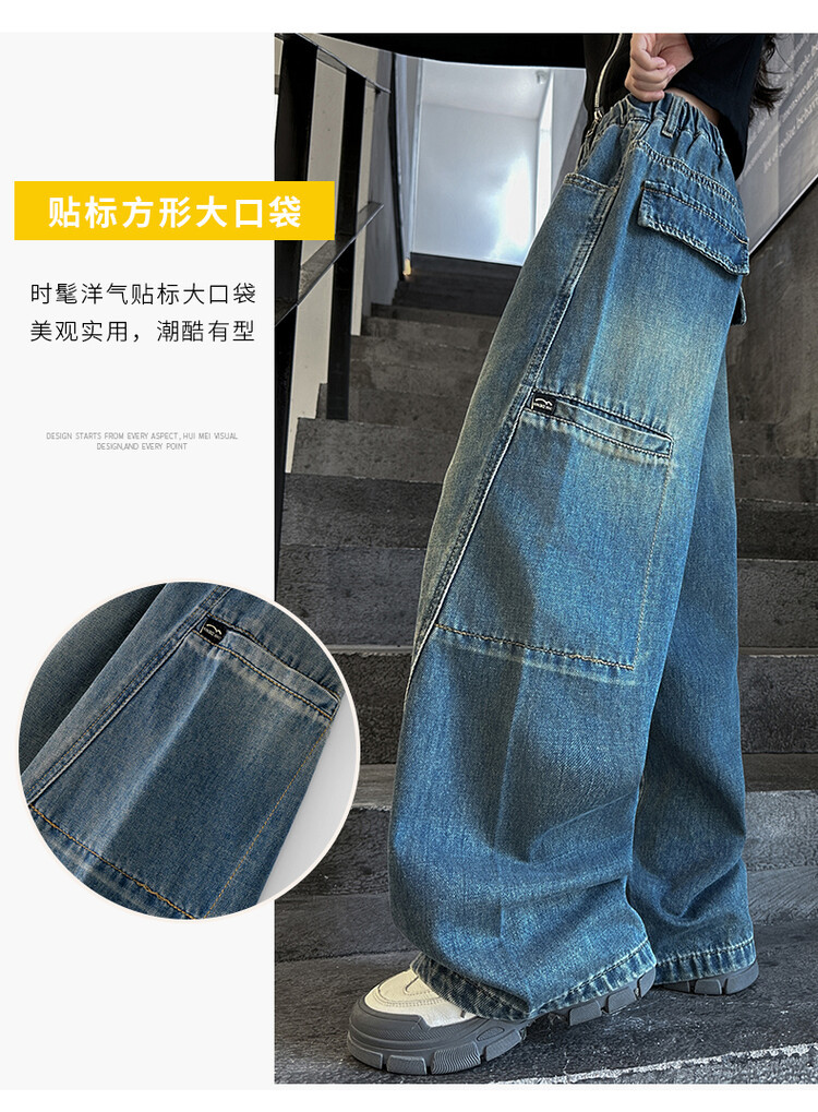 미국 블루 레트로 툴링 청바지 소녀 2024 봄 새로운 스트레이트 높은 허리 슬리밍 디자인 센스