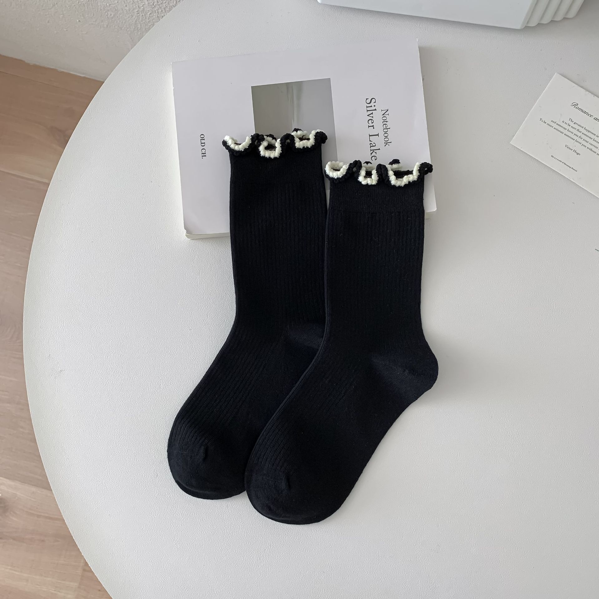 뼈없는 레이스 더미 양말 Ins 한국 색상 대비 우드 이어 미드 양말 일본 스타일 달콤한 소녀 JK 발레 스타일