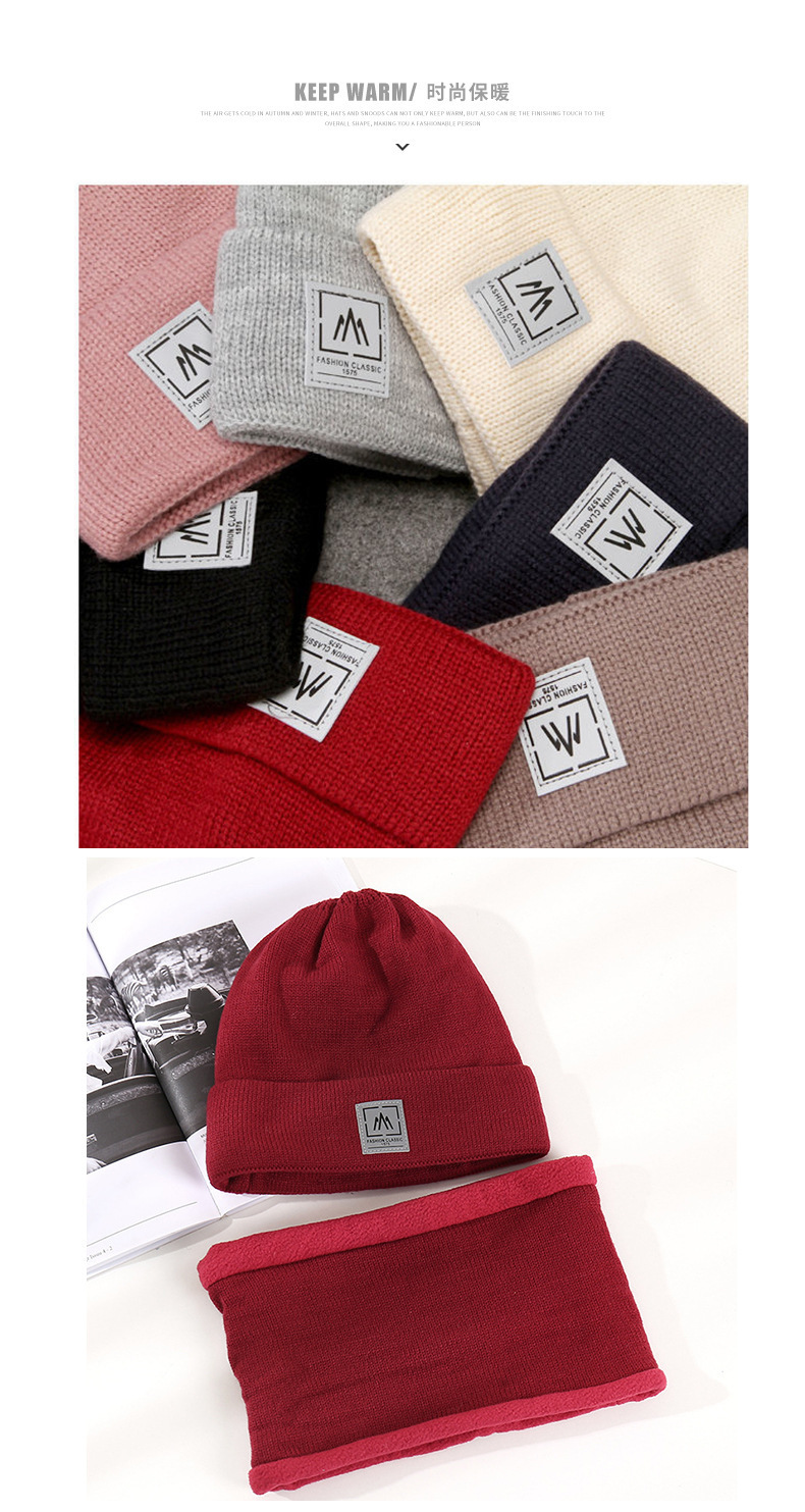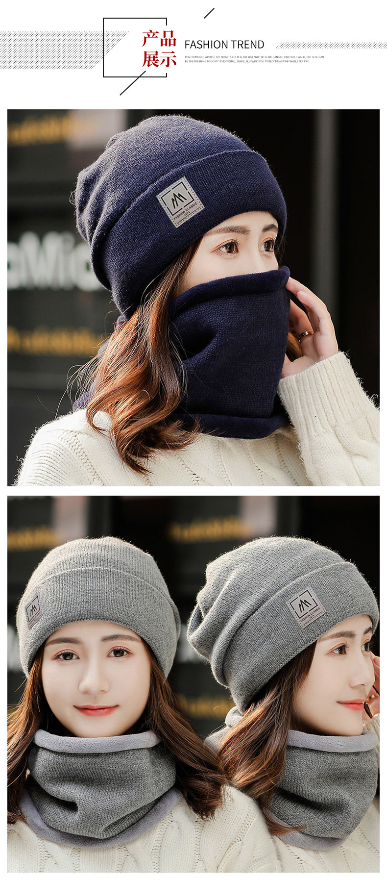 새로운 남성과 여성의 스카프 모자 세트 모자와 표준 귀 보호 문 모자 양모 모자 가을과 겨울 기모 두꺼운 니트 모자스토어 가기