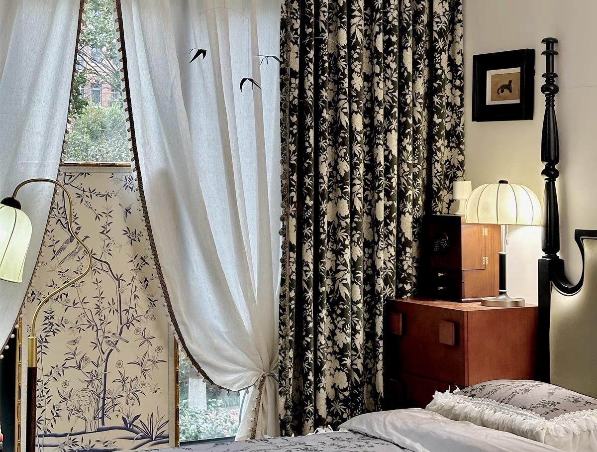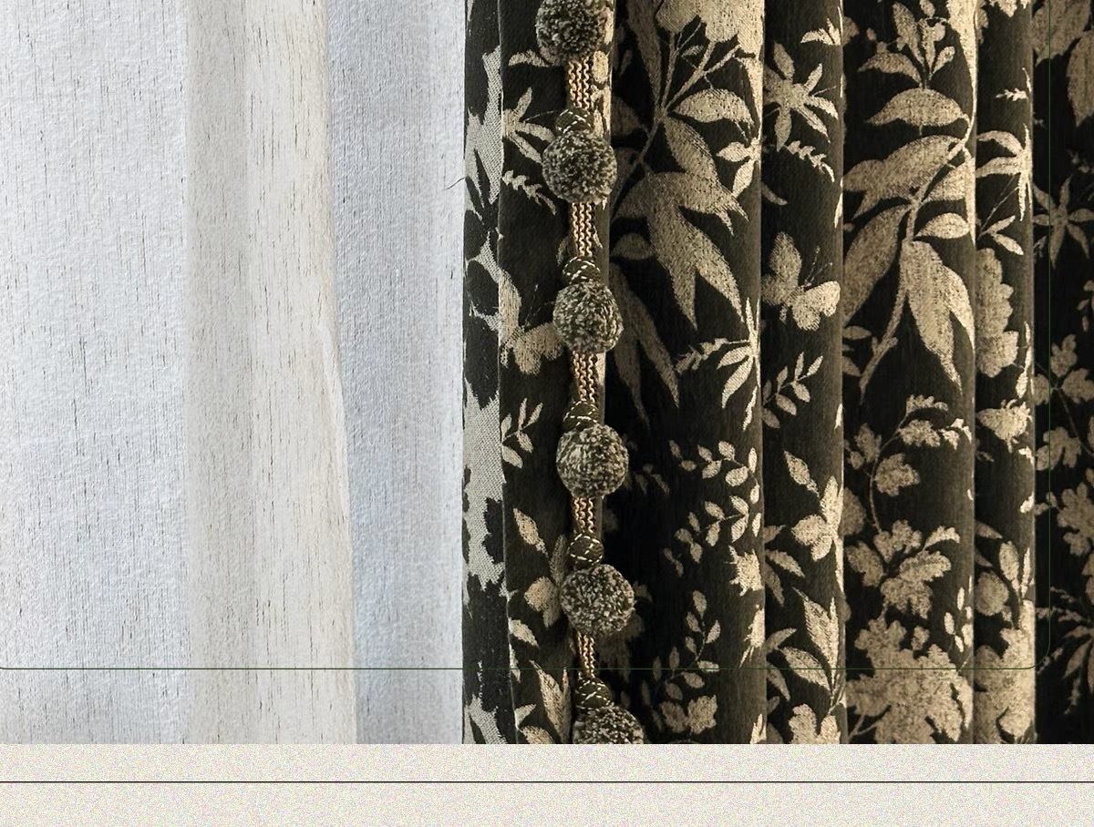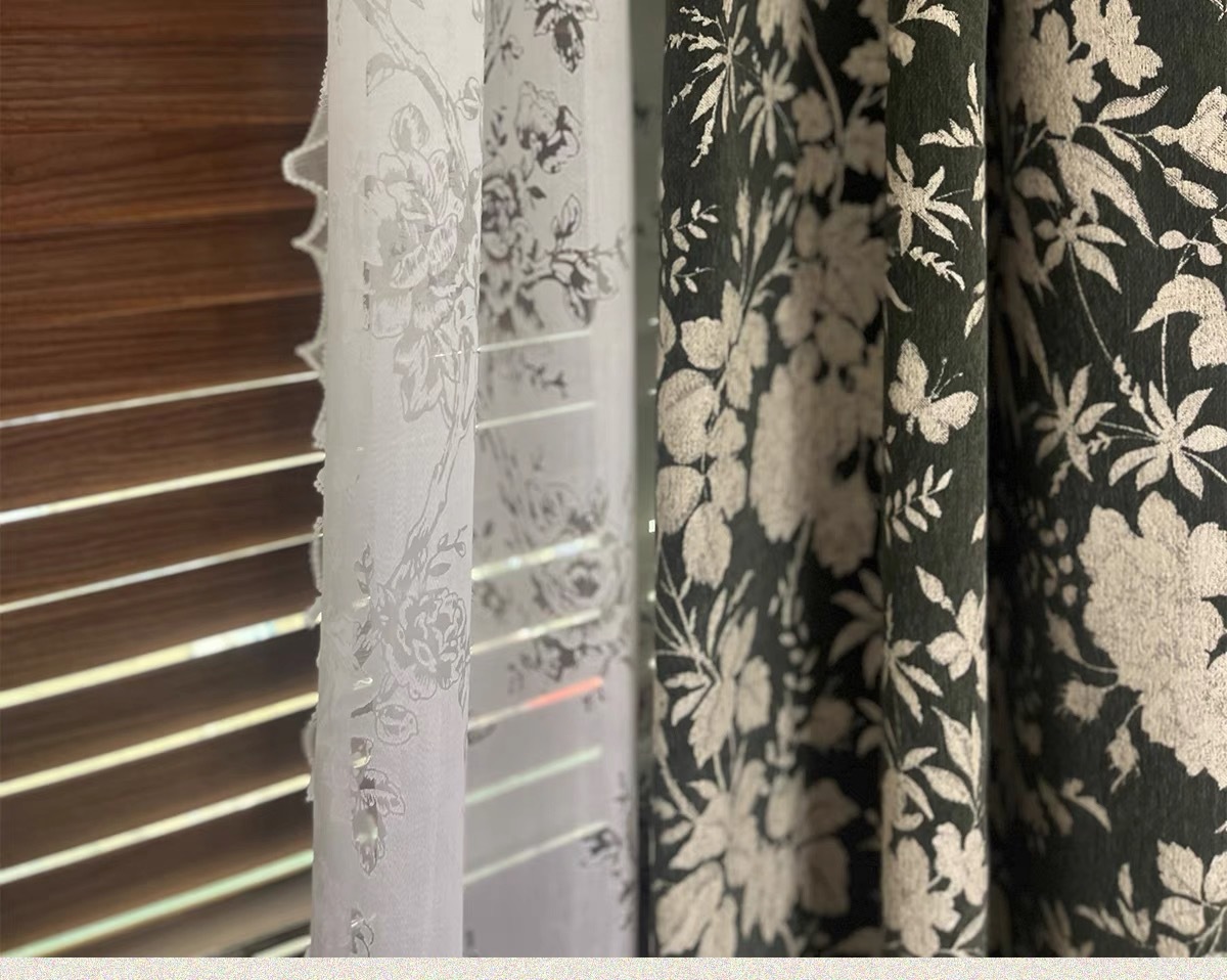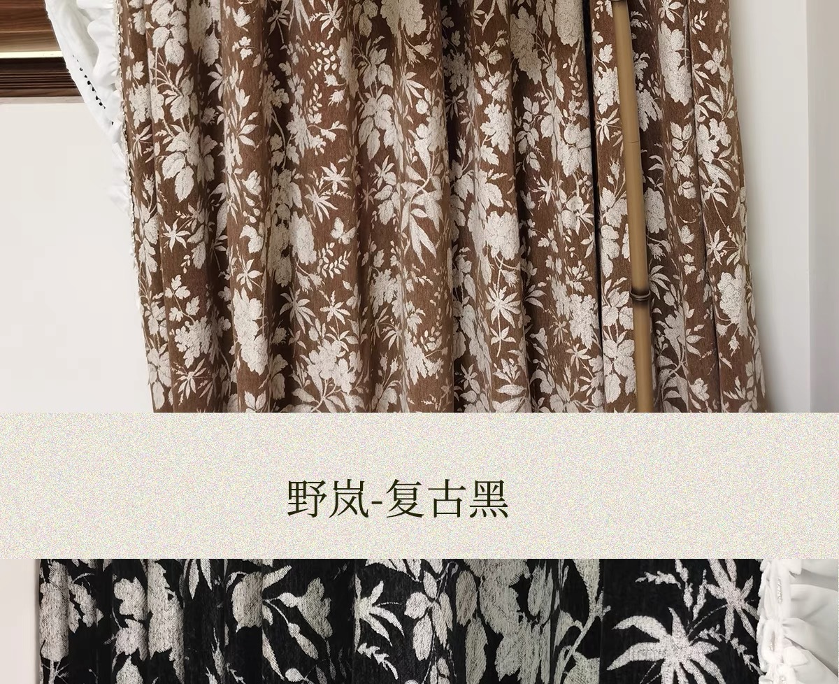 앤티크 라이트 럭셔리 아메리칸 스타일 커튼 거실 침실 빈티지 체닐 자카드 음영 커튼 와일드 란 더블 도어