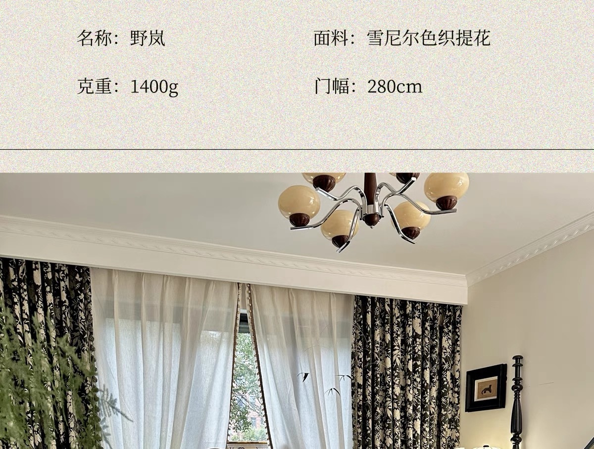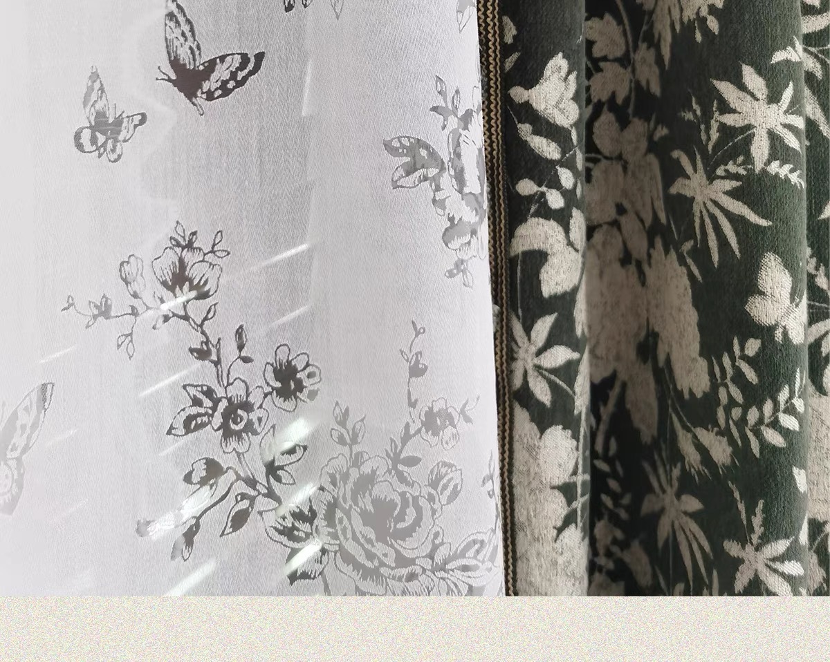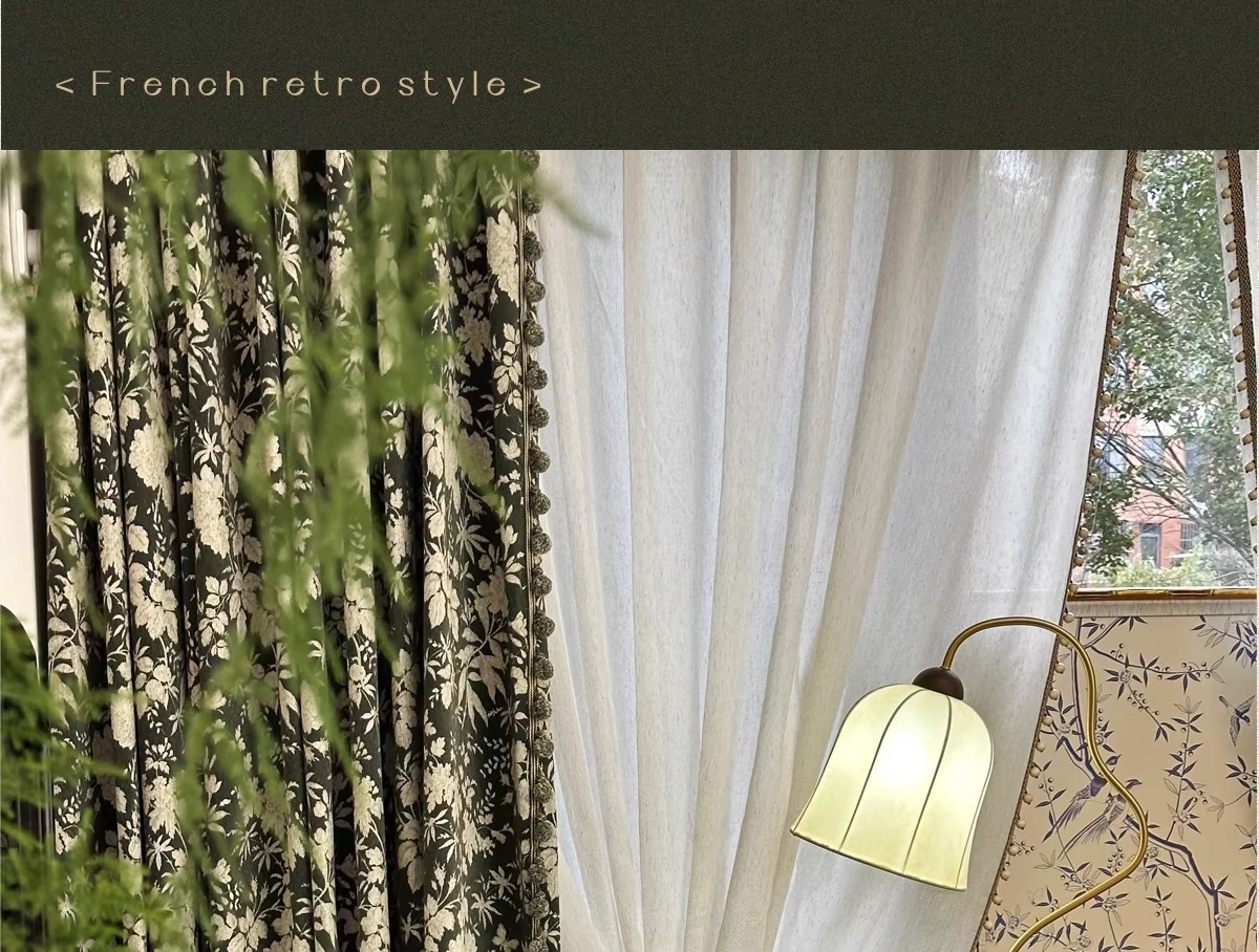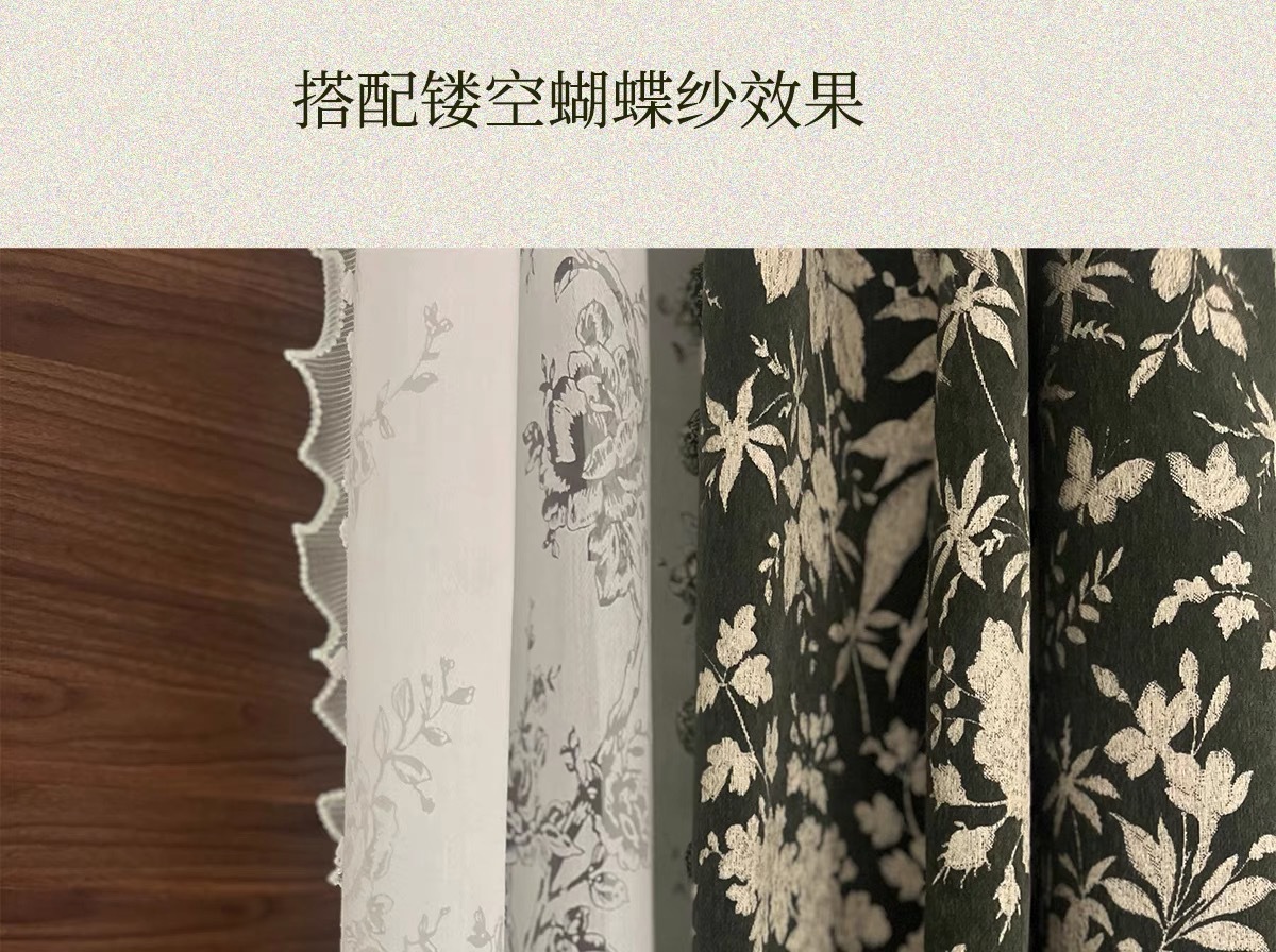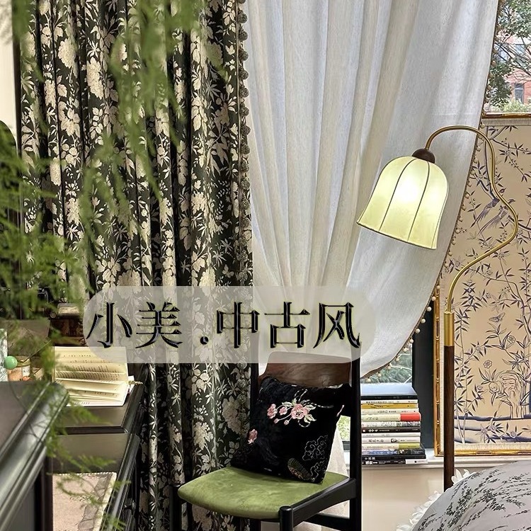 앤티크 라이트 럭셔리 아메리칸 스타일 커튼 거실 침실 빈티지 체닐 자카드 음영 커튼 와일드 란 더블 도어스토어 가기