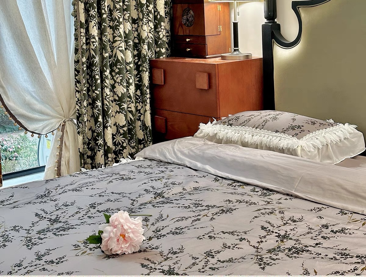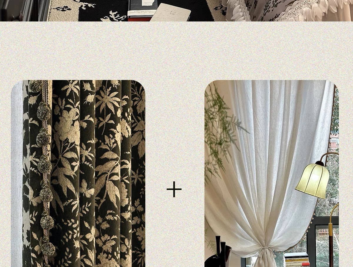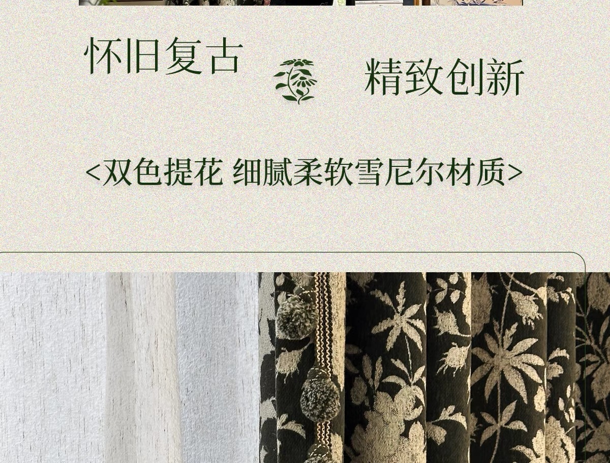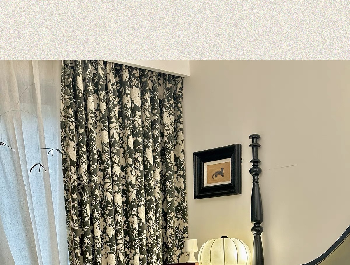 앤티크 라이트 럭셔리 아메리칸 스타일 커튼 거실 침실 빈티지 체닐 자카드 음영 커튼 와일드 란 더블 도어스토어 가기