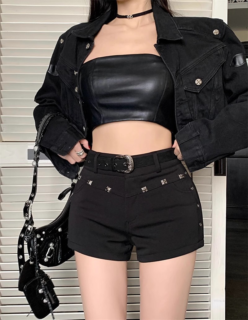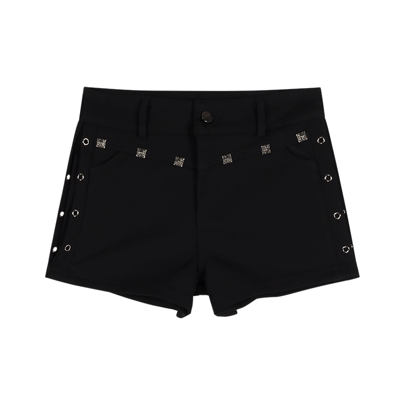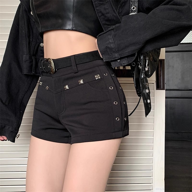 블랙 리벳 캐주얼 반바지 여성 여름 미국 스타일 어린 소녀 하이 웨이스트 슬림-핏 스트레이트 바지 스키니 청바지스토어 가기