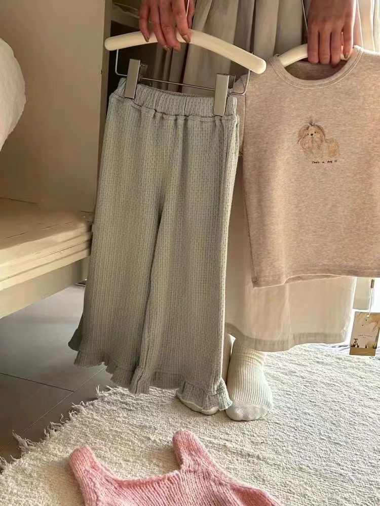 소녀 가을 착용 한국 달콤한 세트 2024 새로운 어린이 긴 스웨터 조끼 스커트 티셔츠 레이스 와이드 다리 바지스토어 가기