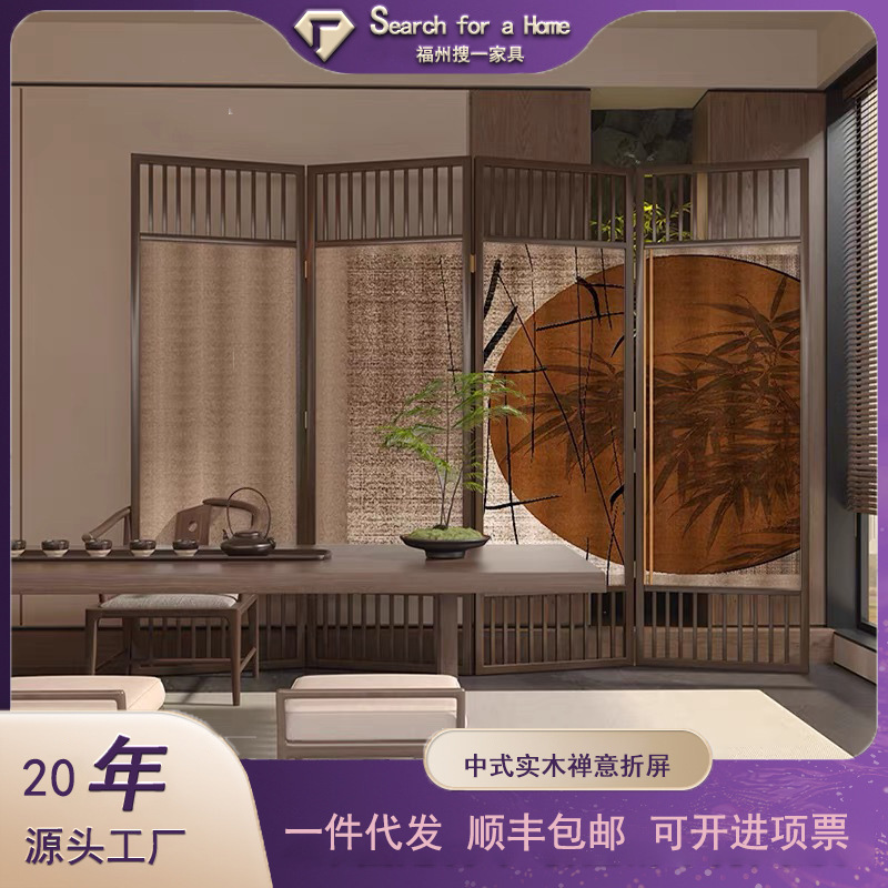 스크린 새로운 중국 스타일 파티션 거실 찻집 입구 배경 벽 접이식 모바일 오피스 단단한 나무-접이식 스크린스토어 가기