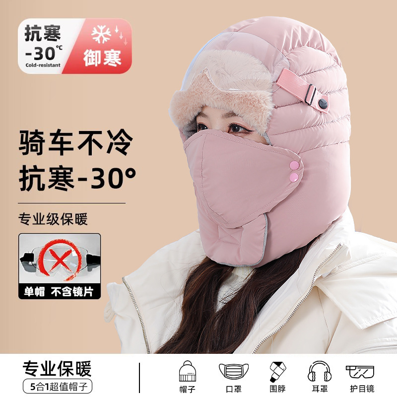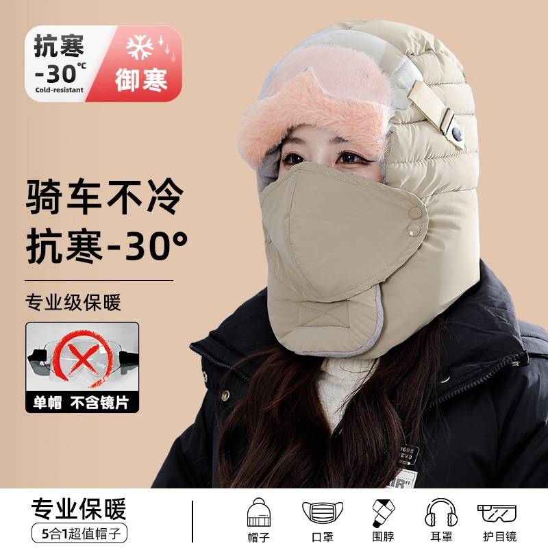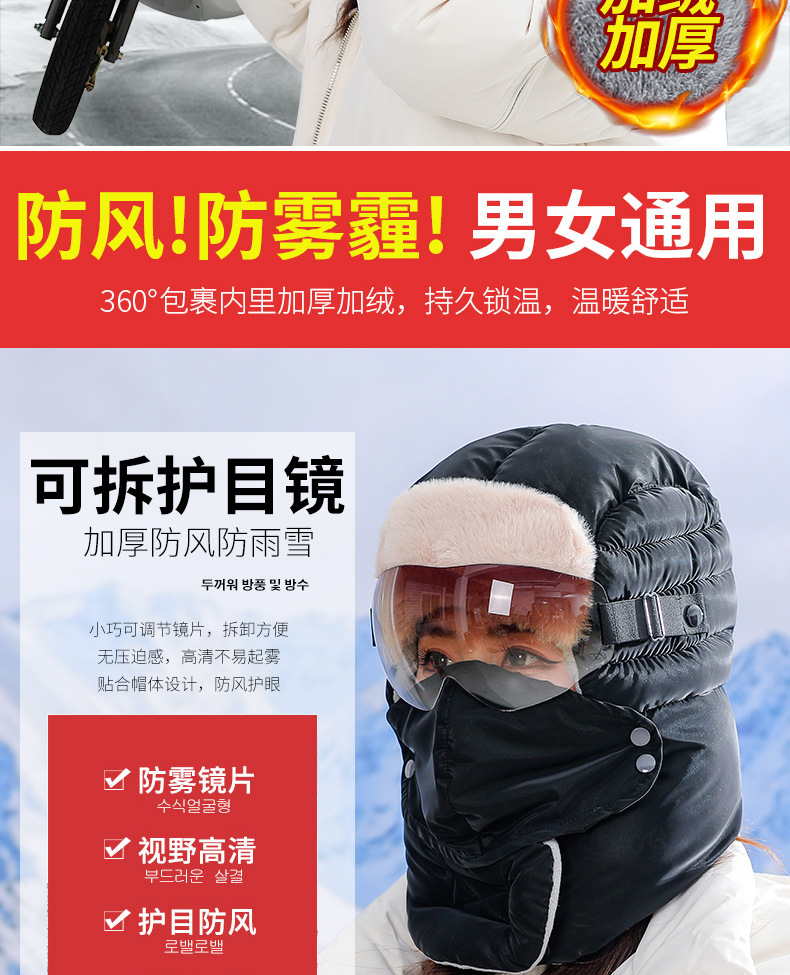 겨울 승마 전기 자동차 방풍 및 방한 레이 펑 모자 남성과 여성의 두꺼운 따뜻한 귀 및 눈 보호 오토바이 승마 모자스토어 가기