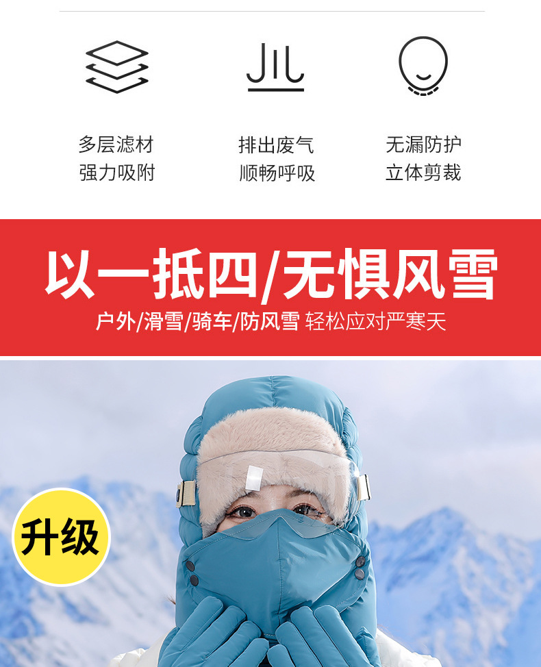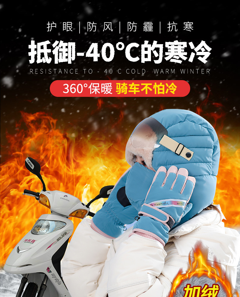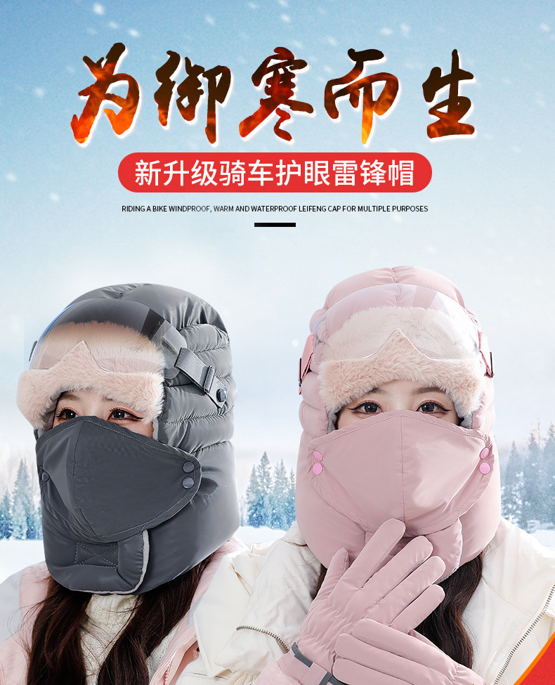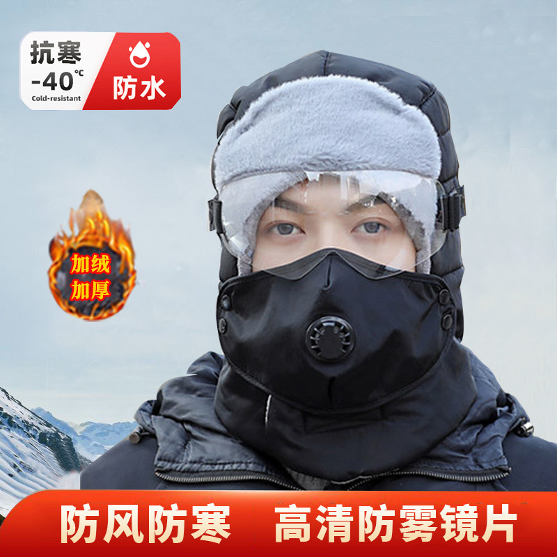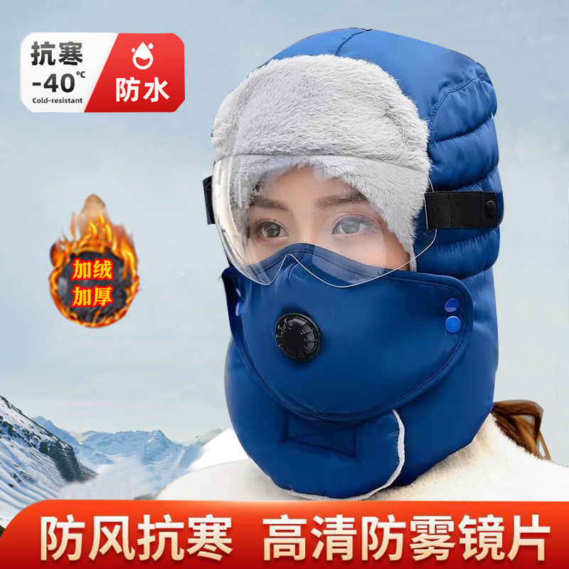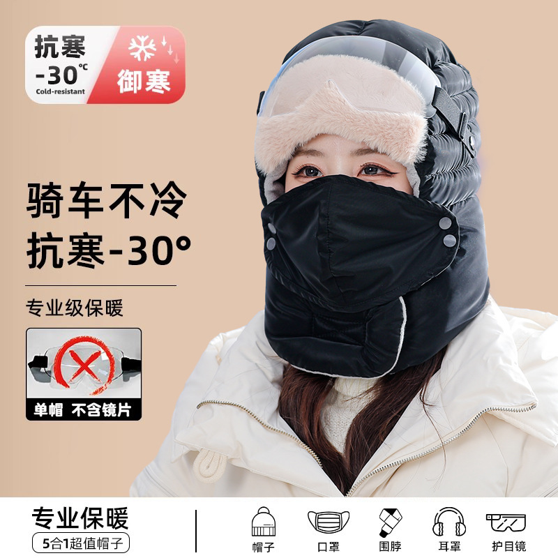 겨울 승마 전기 자동차 방풍 및 방한 레이 펑 모자 남성과 여성의 두꺼운 따뜻한 귀 및 눈 보호 오토바이 승마 모자