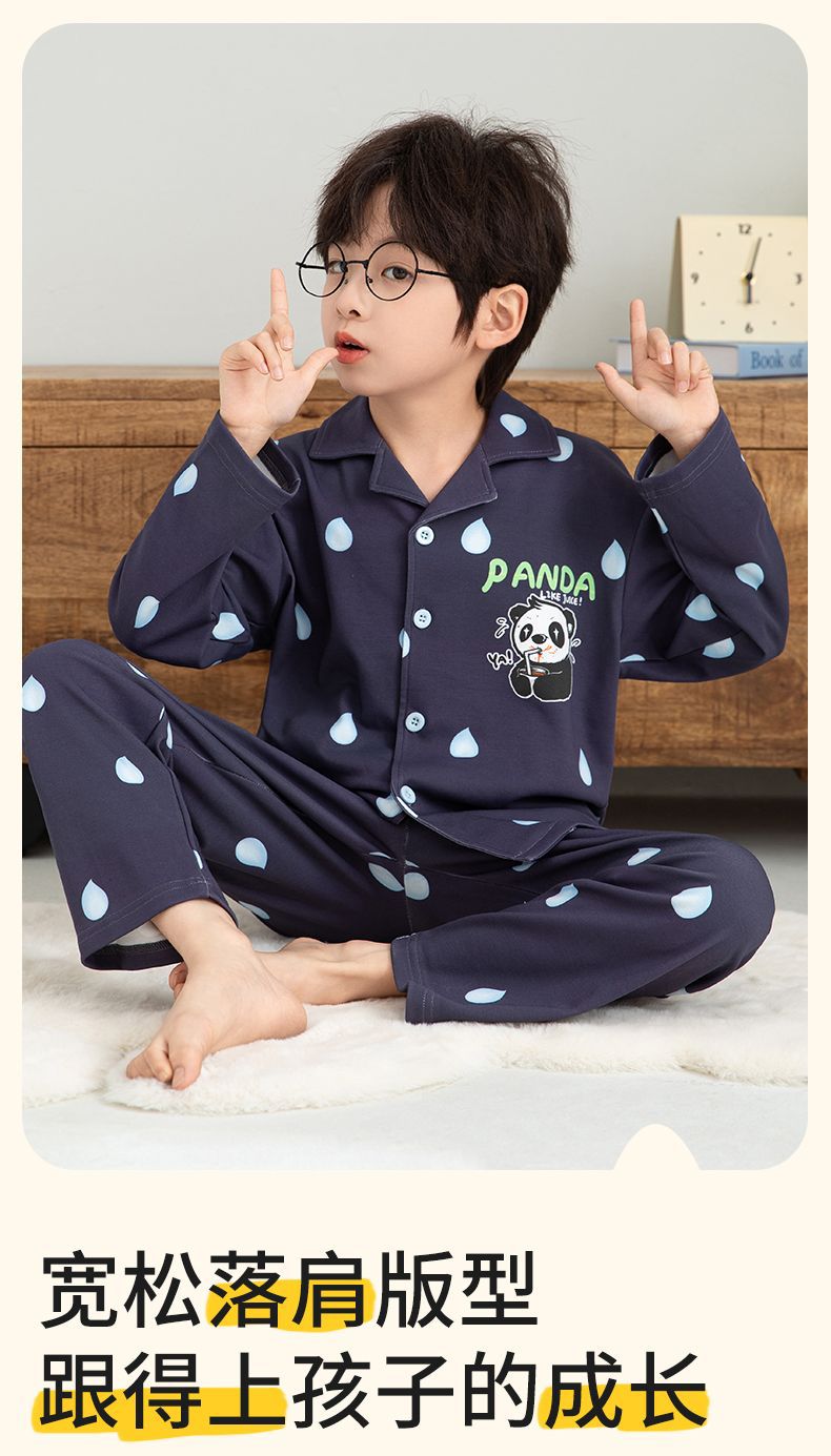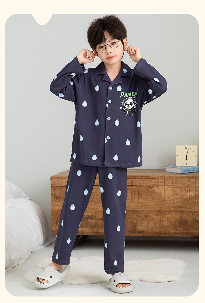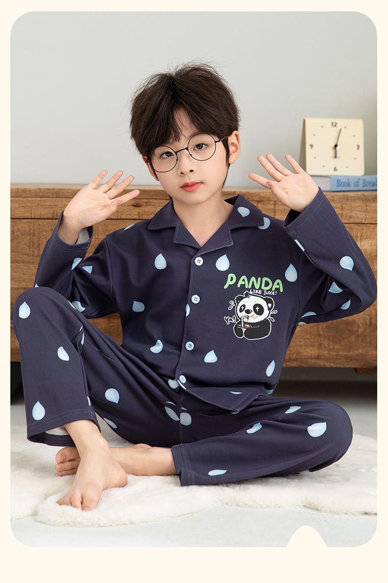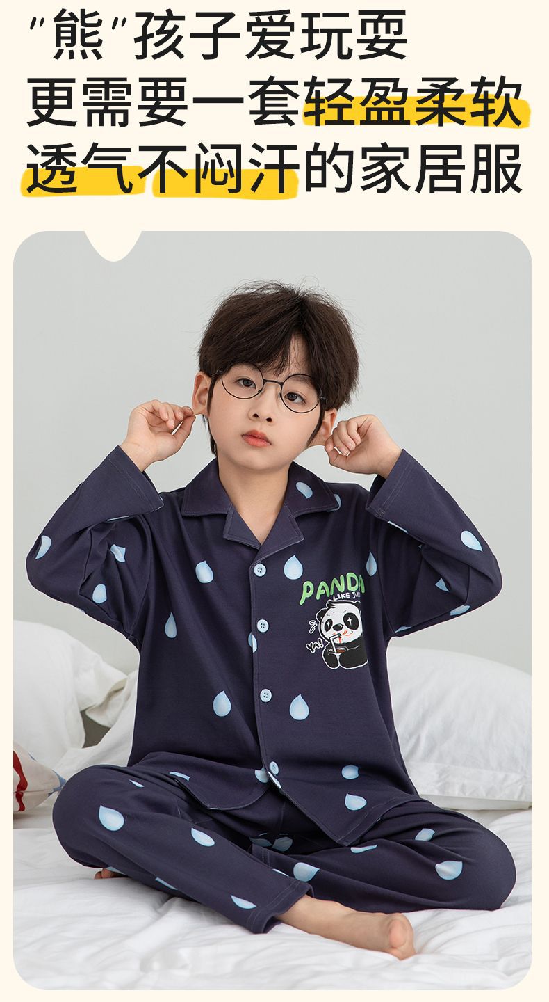 어린이 잠옷 2025 봄 가을 순면 만화 긴팔 소년 청소년 남아용 카라 홈웨어 세트스토어 가기