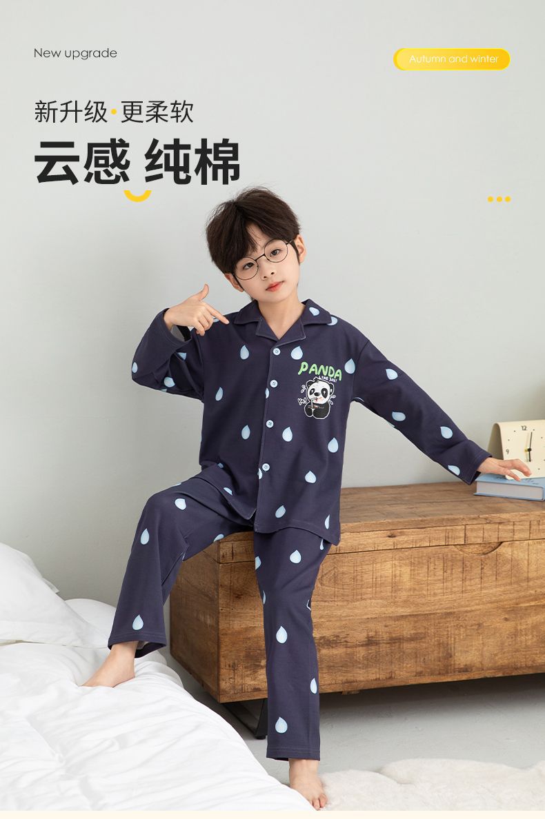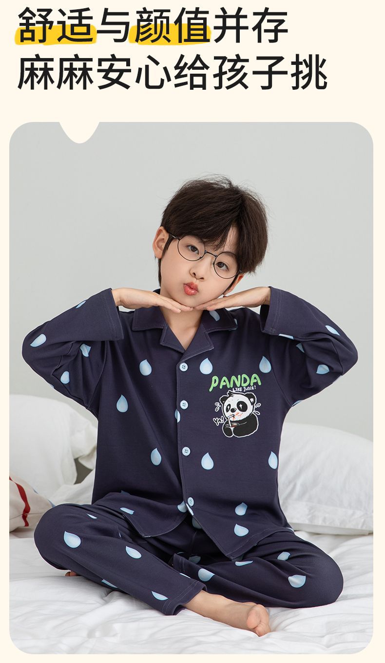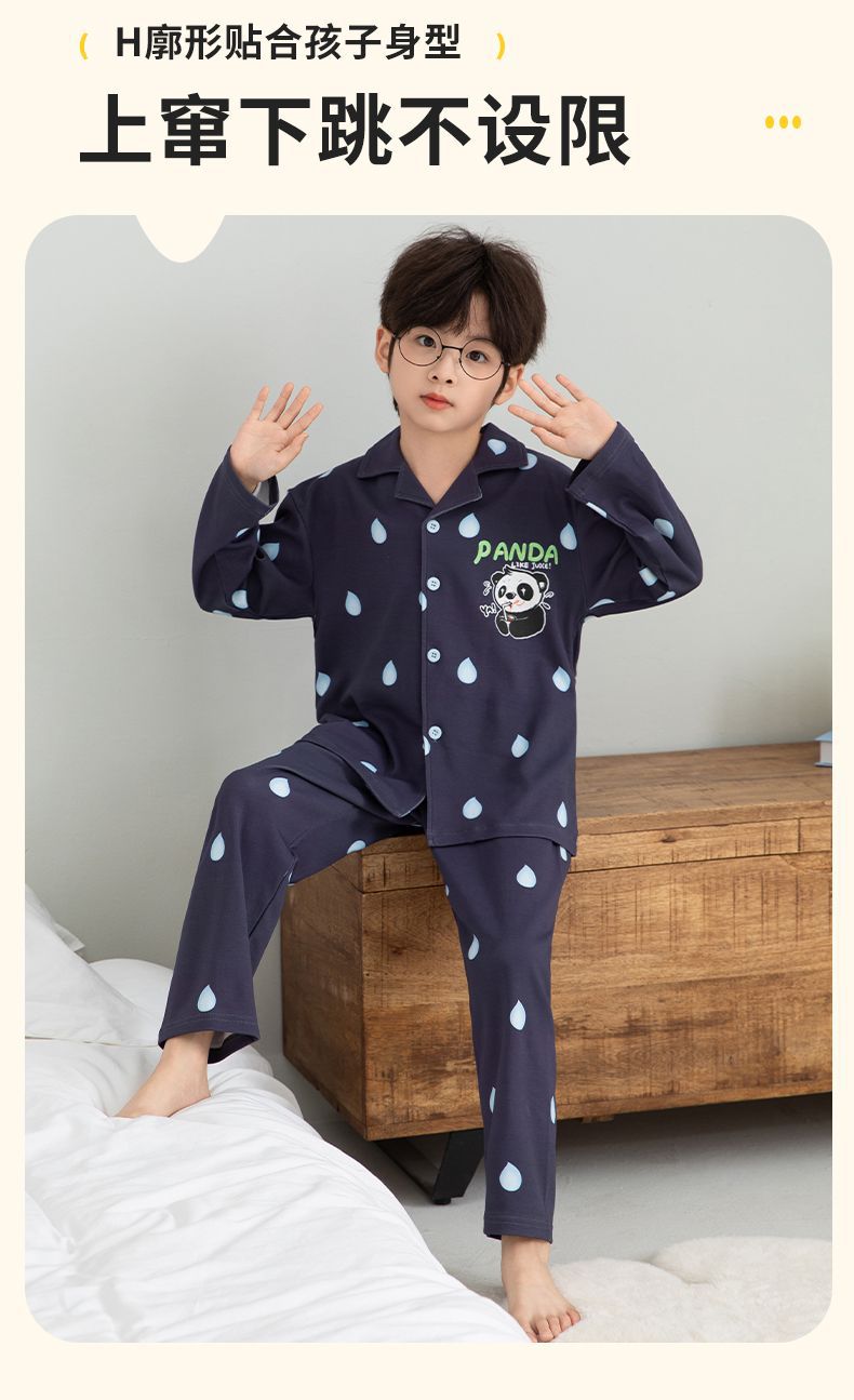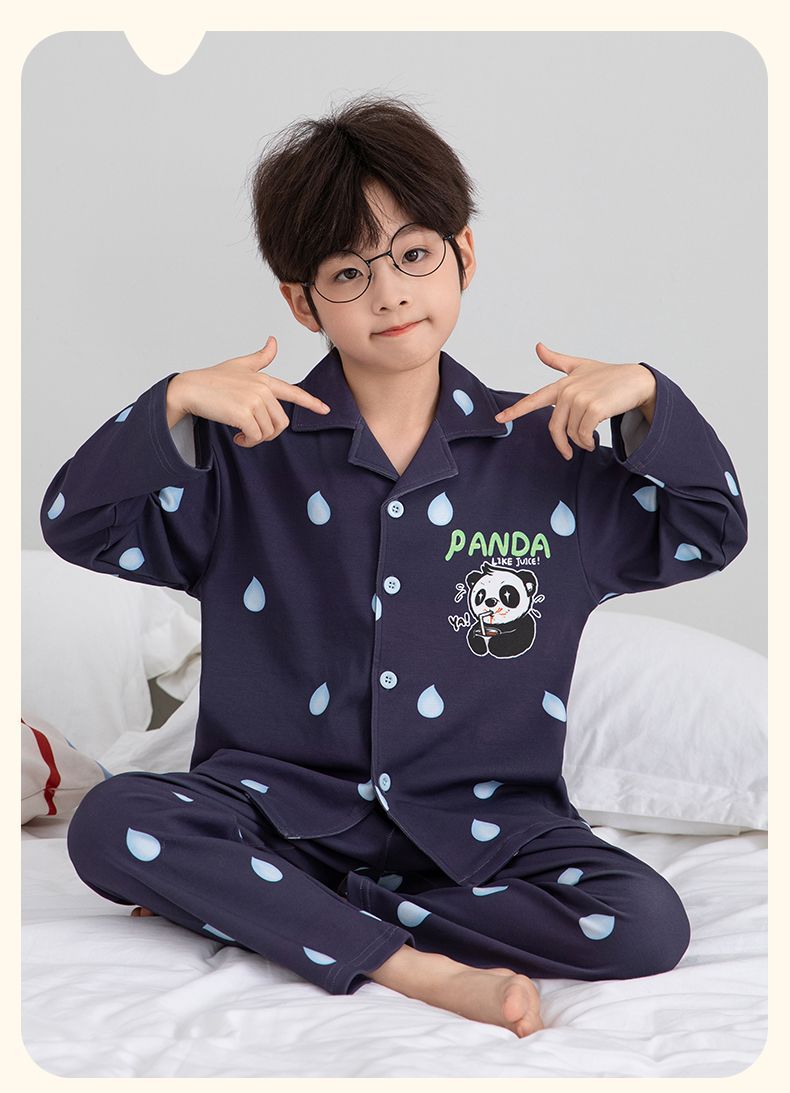 어린이 잠옷 2025 봄 가을 순면 만화 긴팔 소년 청소년 남아용 카라 홈웨어 세트스토어 가기