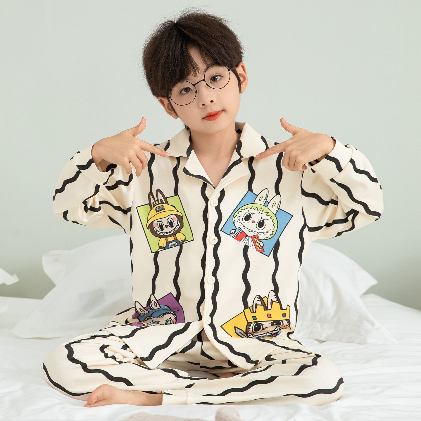 어린이 잠옷 2025 봄 가을 순면 만화 긴팔 소년 청소년 남아용 카라 홈웨어 세트