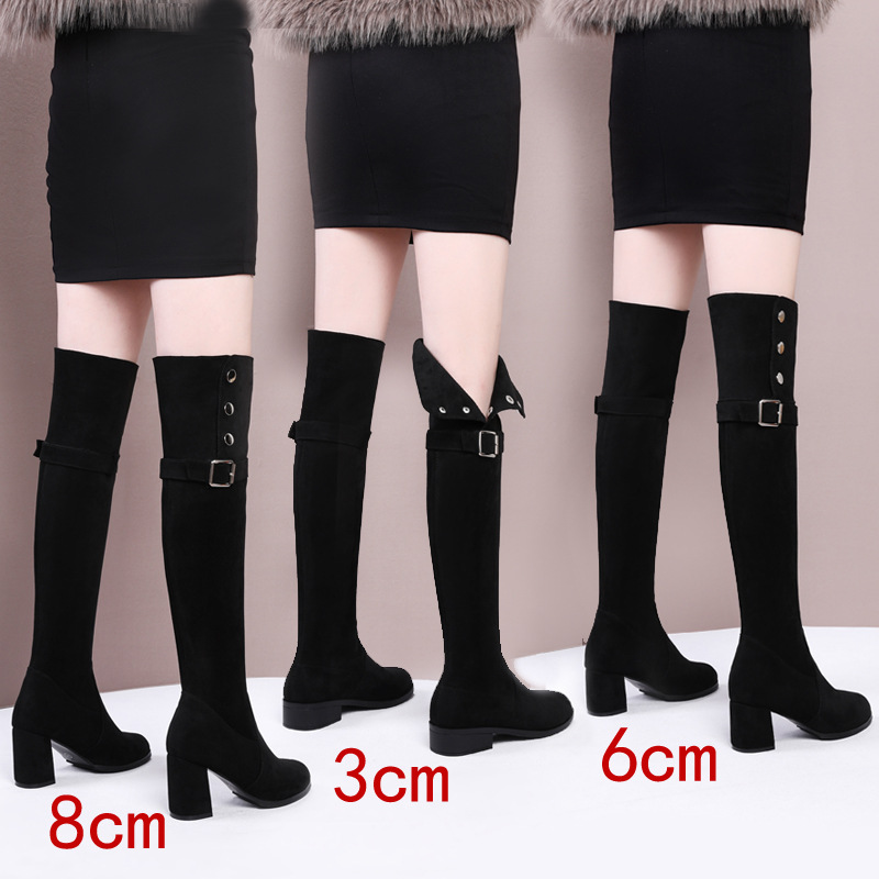 2024 가을과 겨울 새로운 스몰 사이즈 내부 높이 무릎 높은 부츠 여성 기사 부츠 두꺼운 바닥 기모 부츠 가을과 겨울스토어 가기