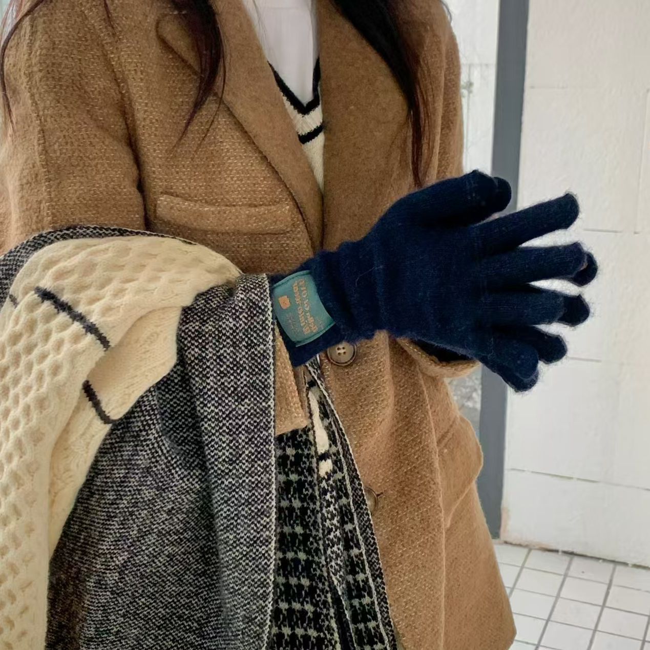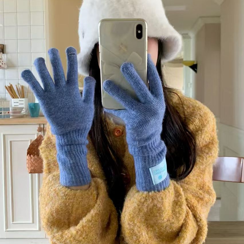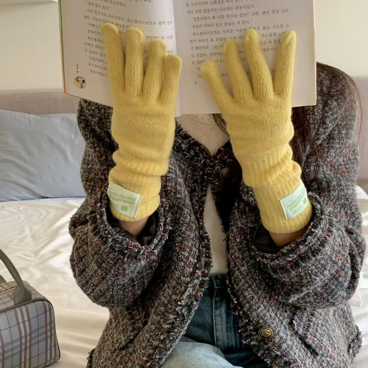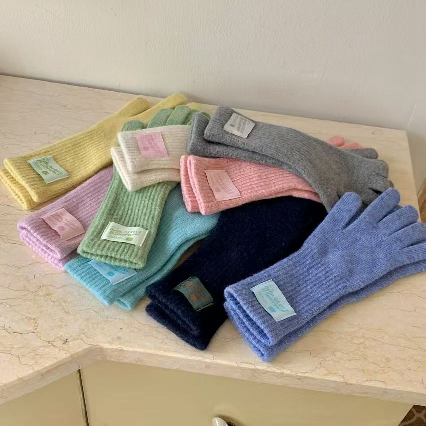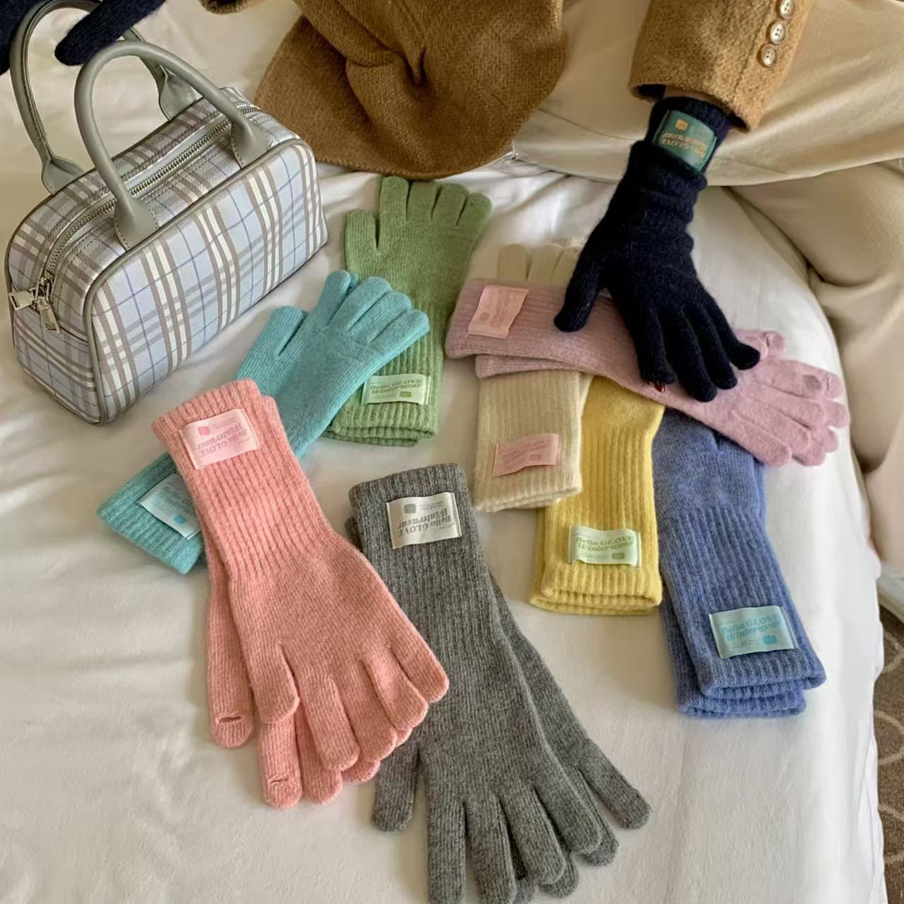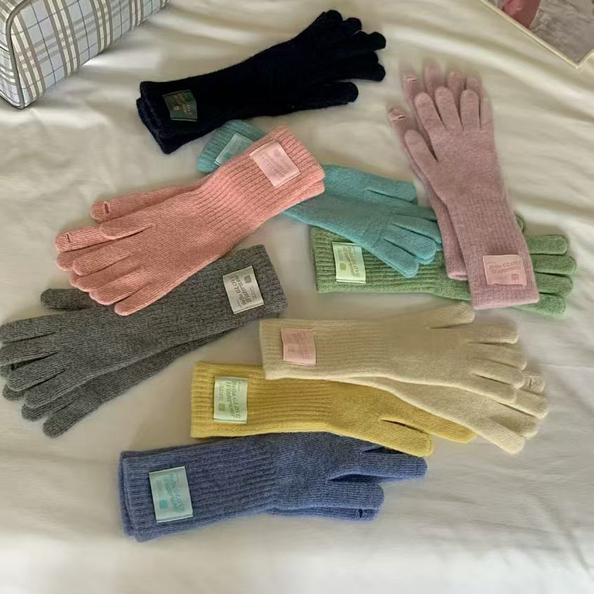 2024 가을과 겨울 새로운 귀여운 울 니트 한국 라벨링 겨울 장갑 손가락 노출 터치 스크린 휴대 전화