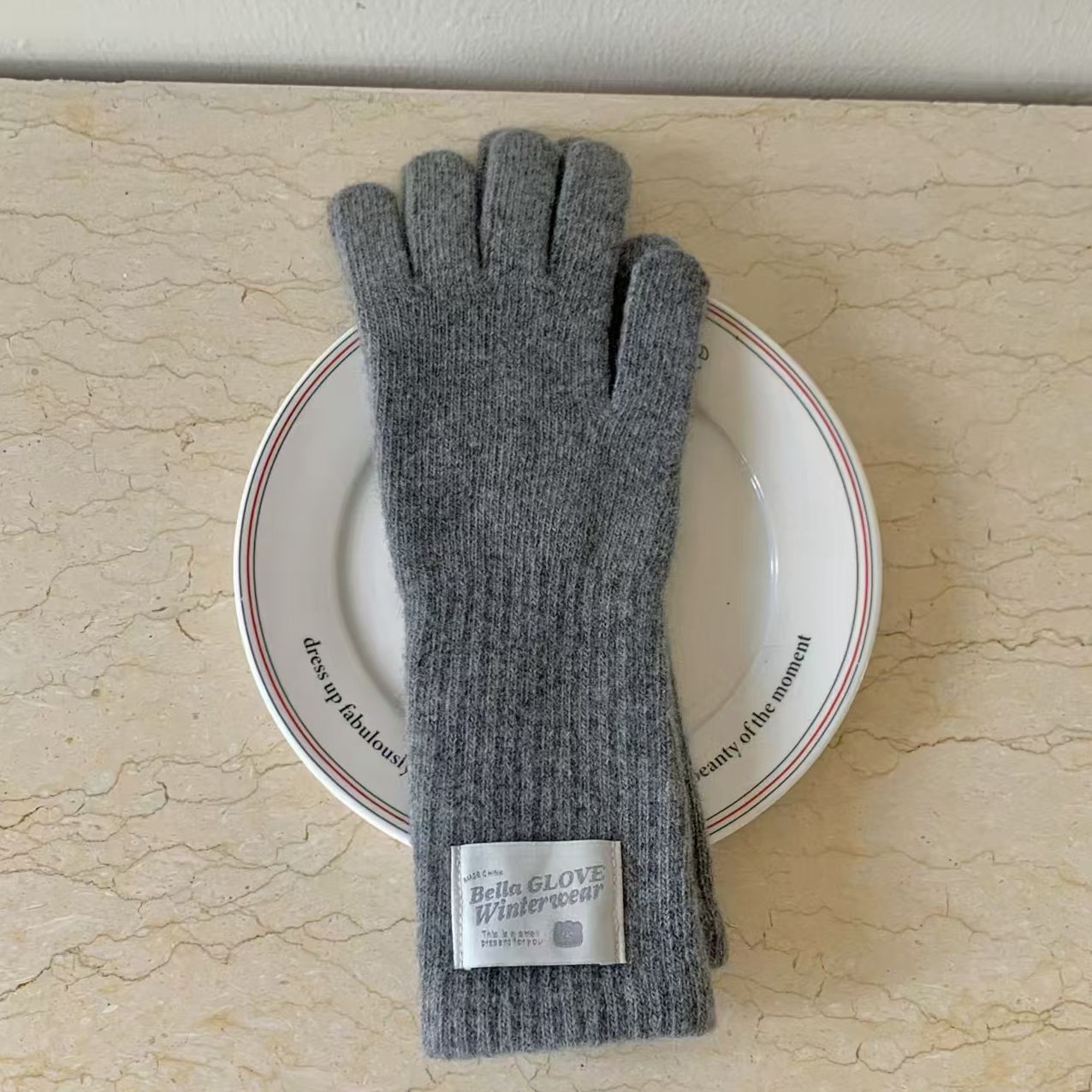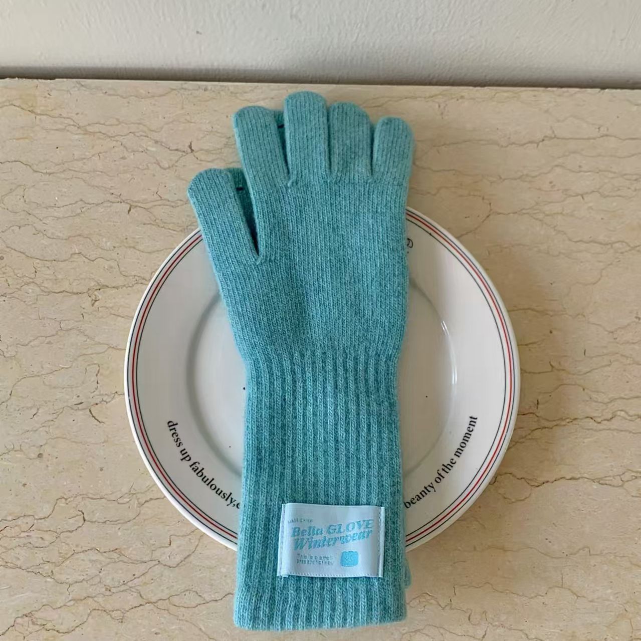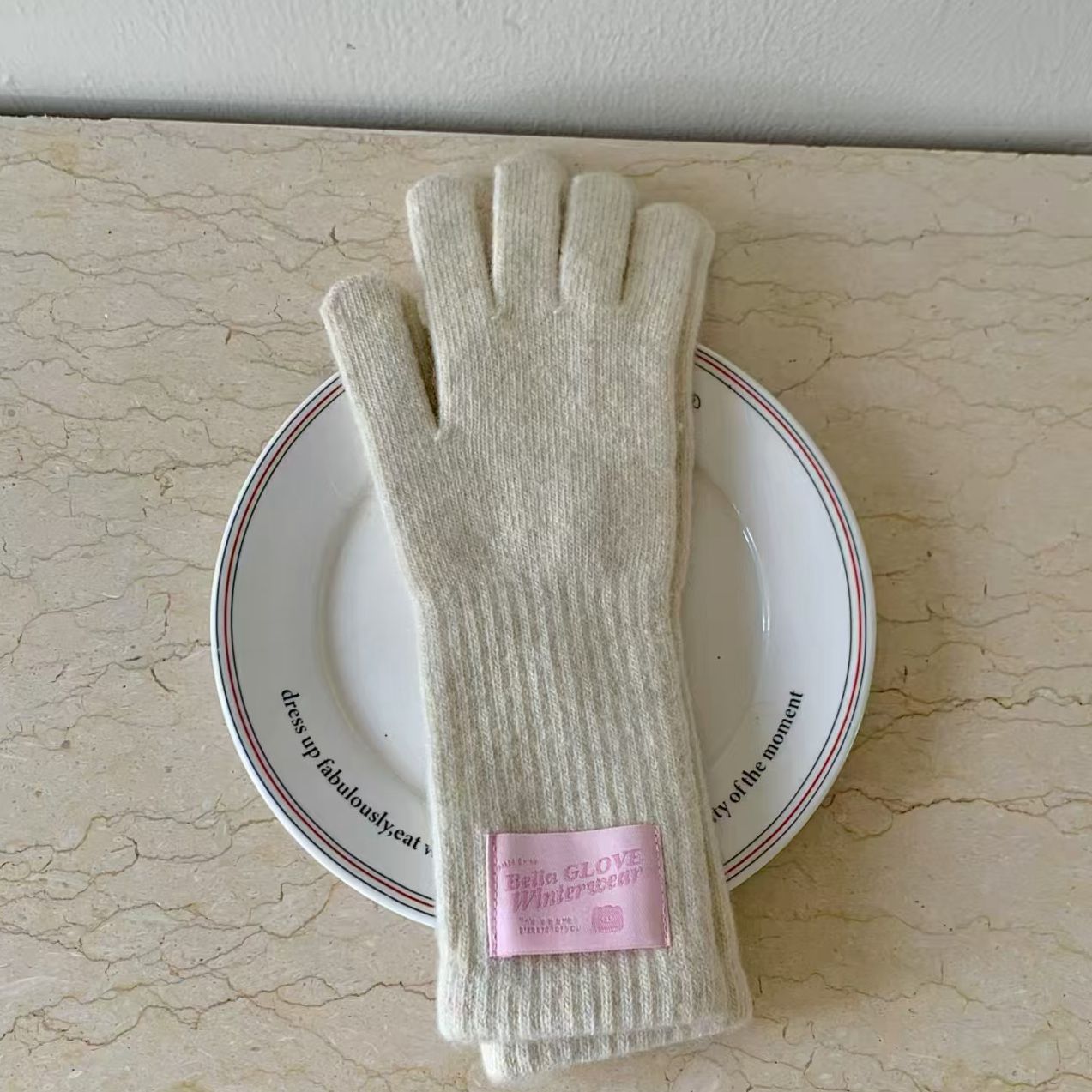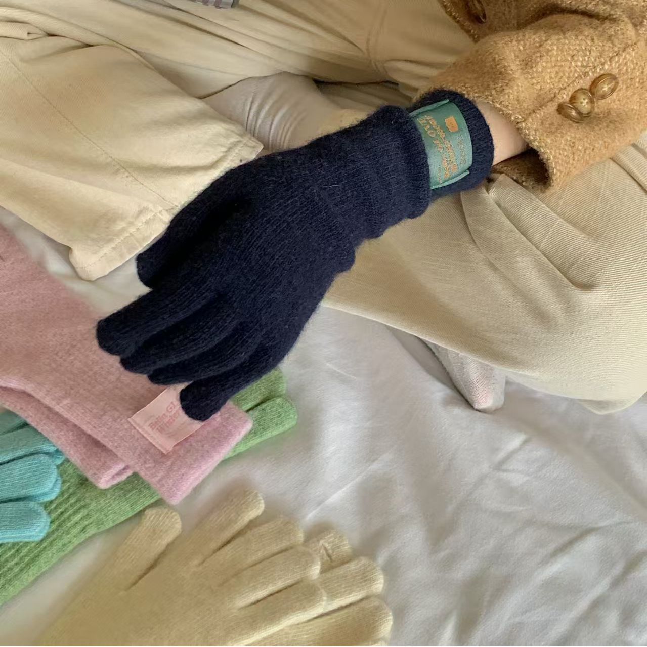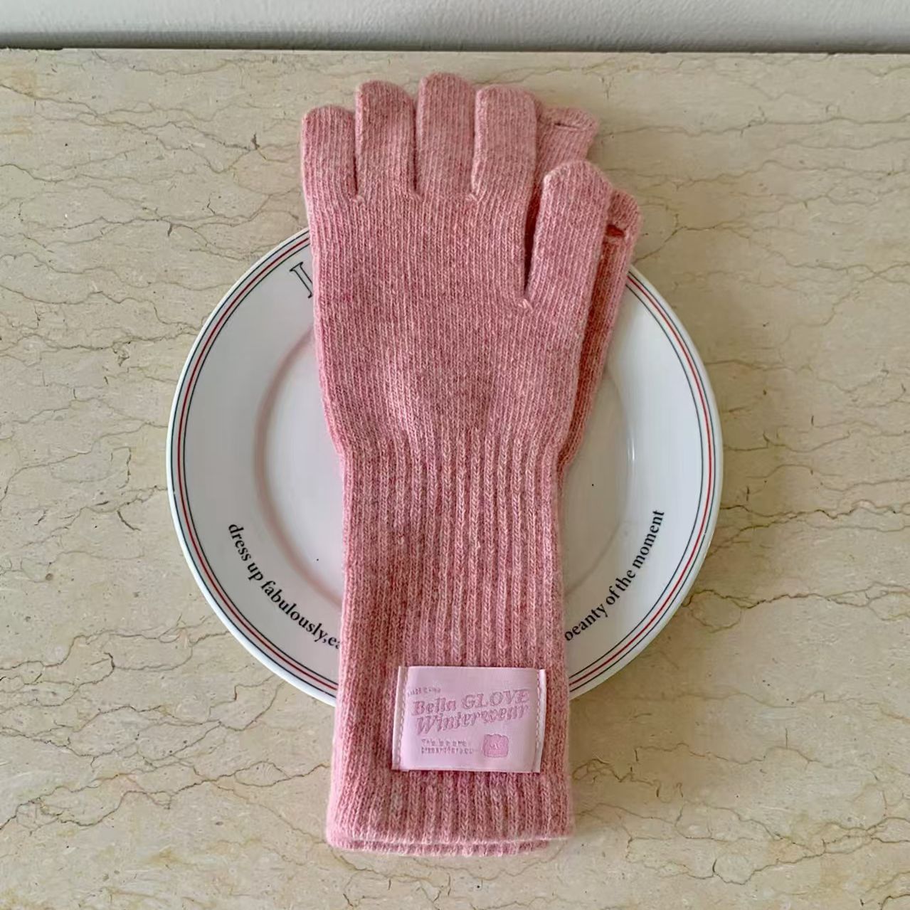 2024 가을과 겨울 새로운 귀여운 울 니트 한국 라벨링 겨울 장갑 손가락 노출 터치 스크린 휴대 전화