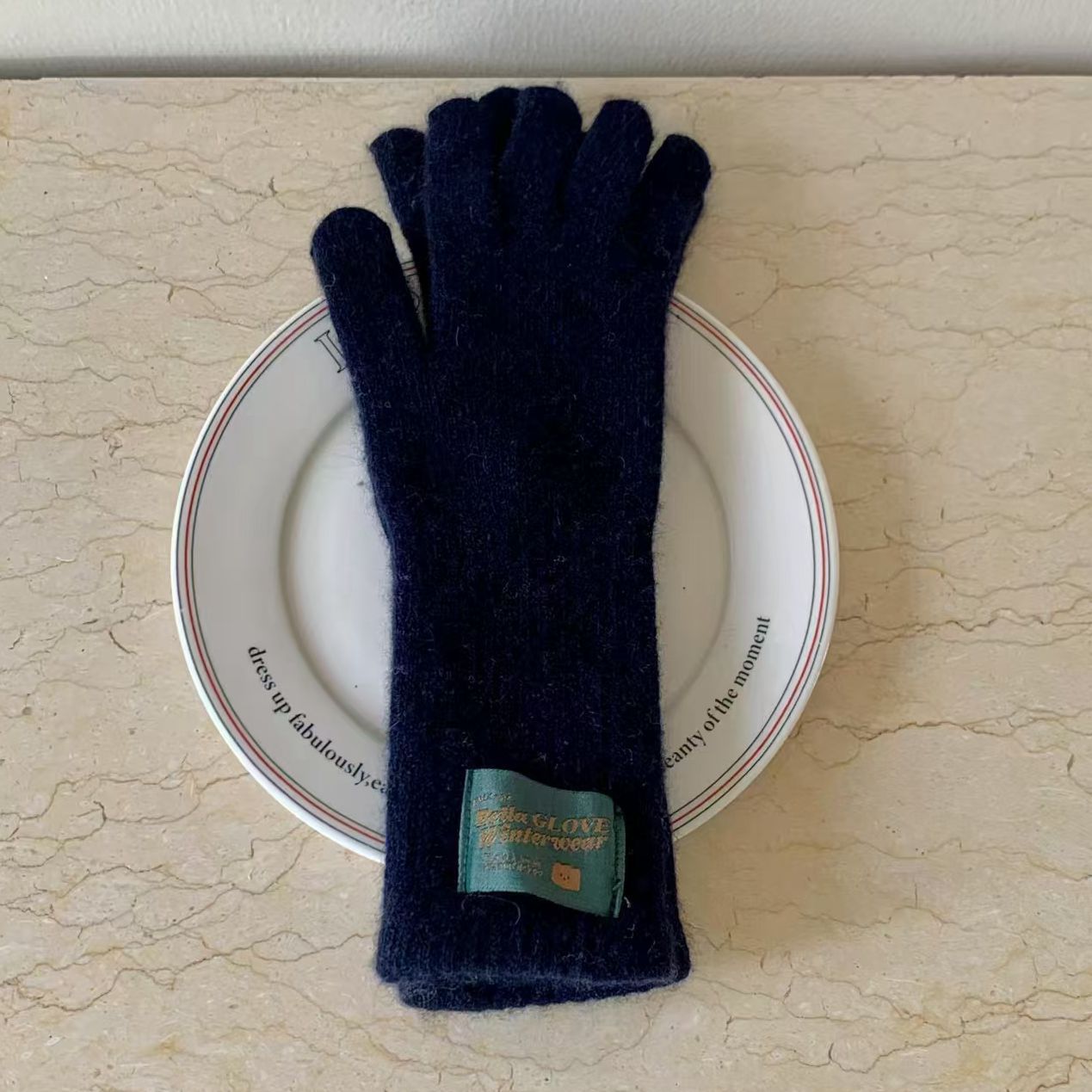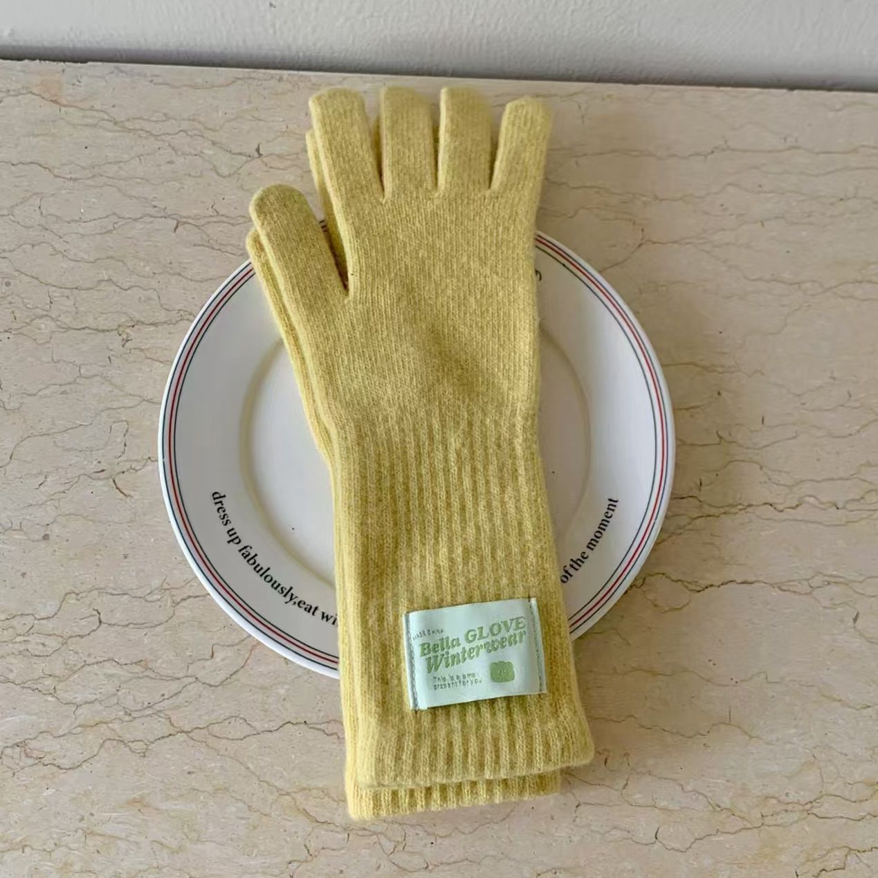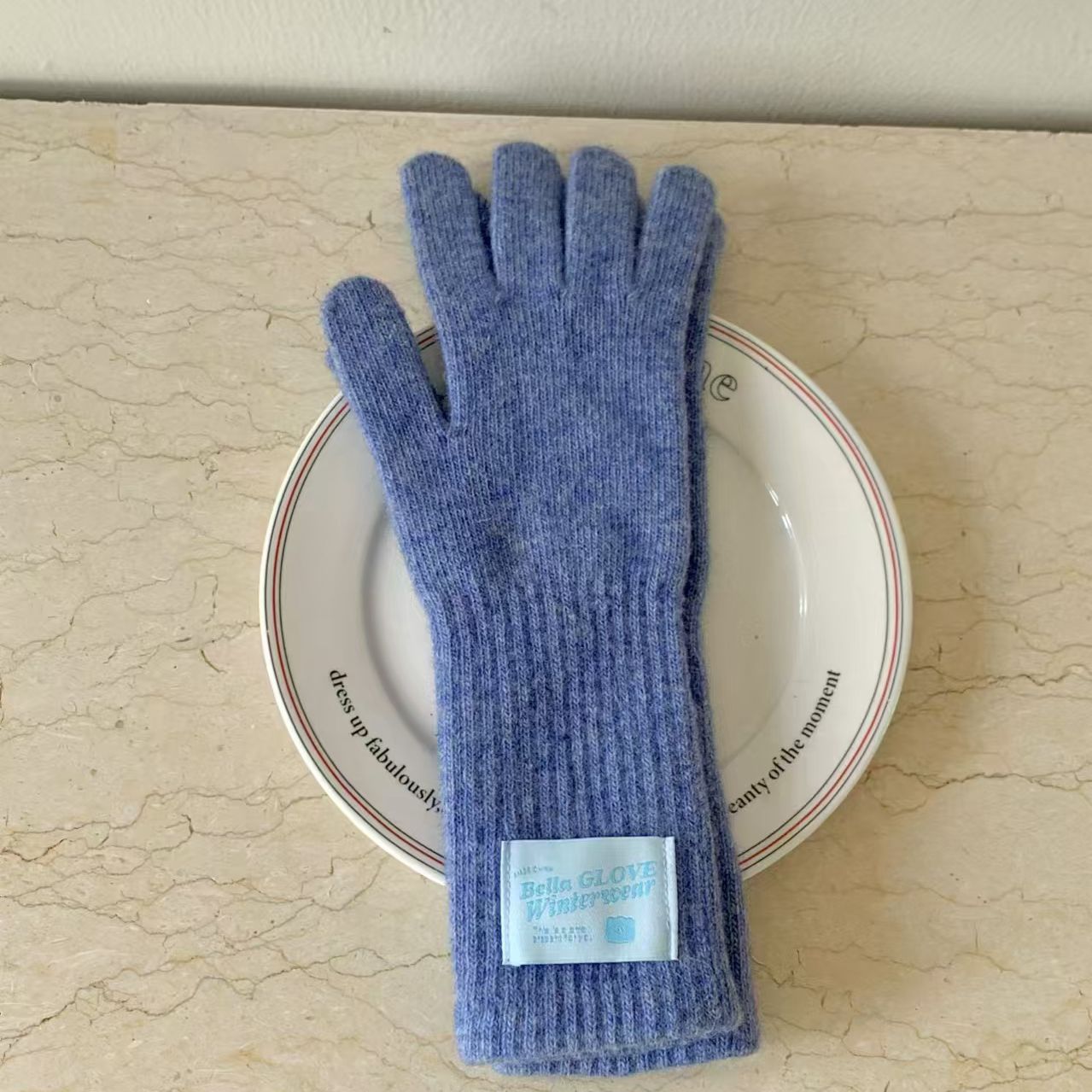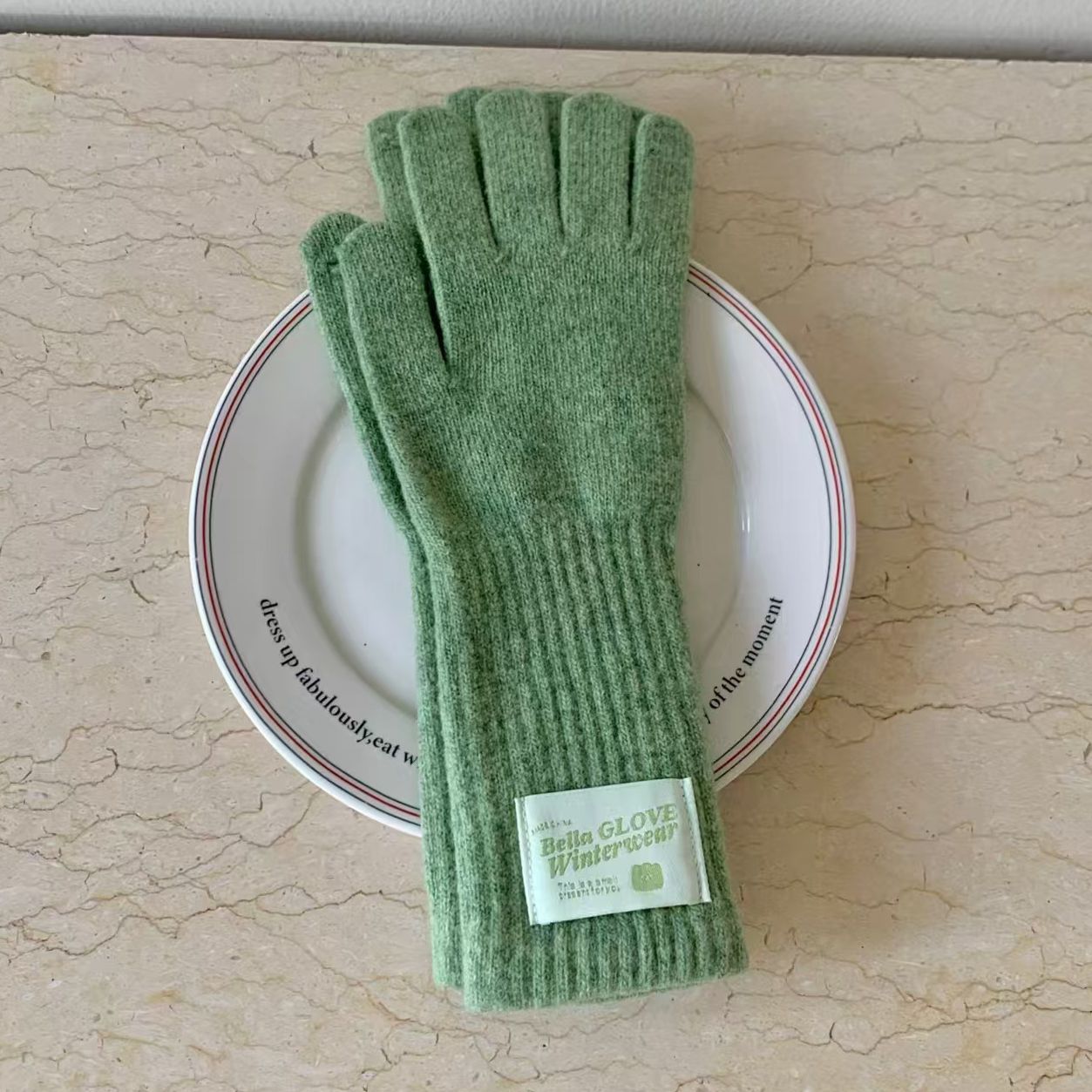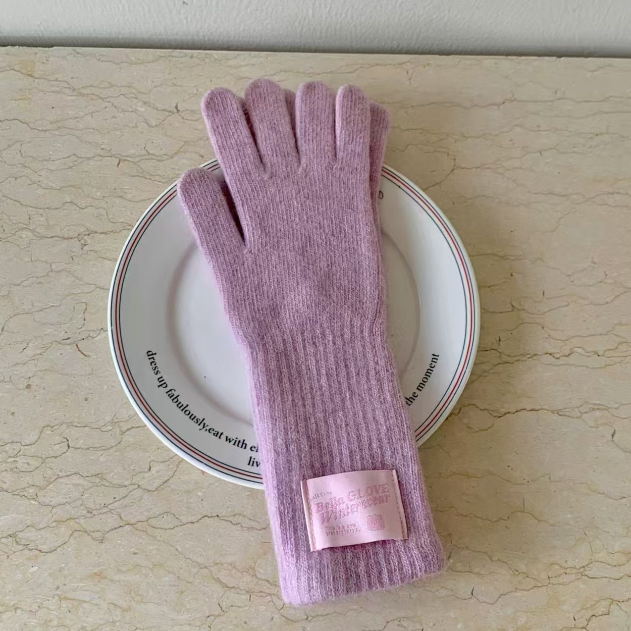 2024 가을과 겨울 새로운 귀여운 울 니트 한국 라벨링 겨울 장갑 손가락 노출 터치 스크린 휴대 전화