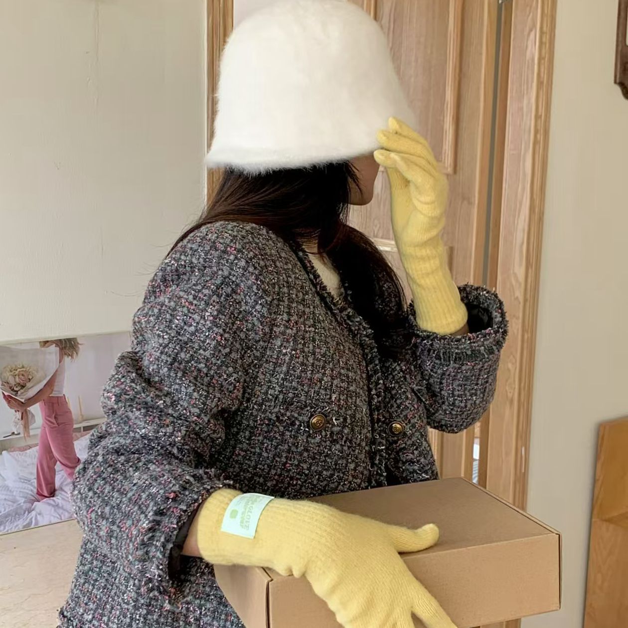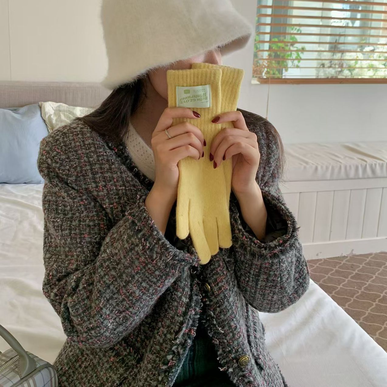 2024 가을과 겨울 새로운 귀여운 울 니트 한국 라벨링 겨울 장갑 손가락 노출 터치 스크린 휴대 전화스토어 가기