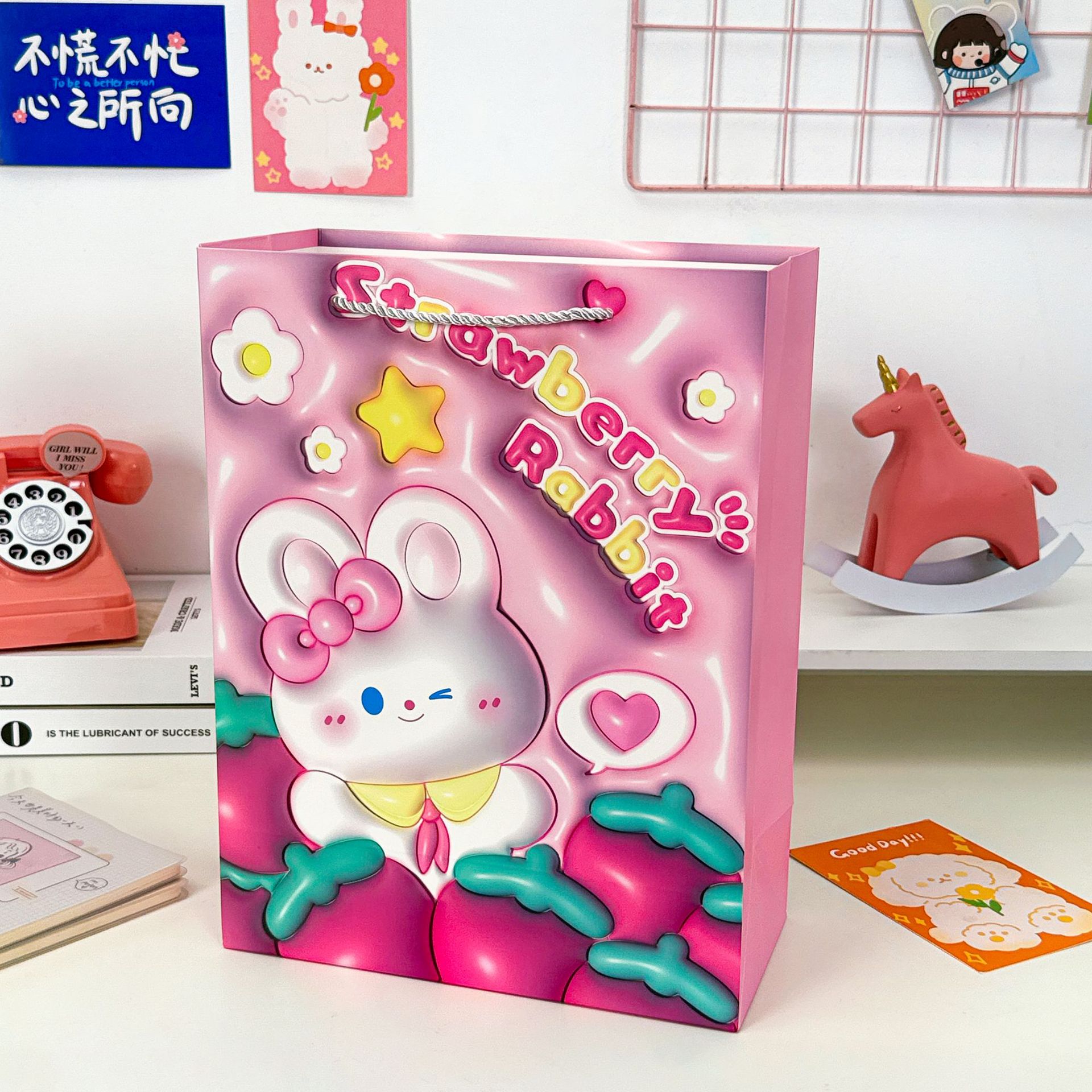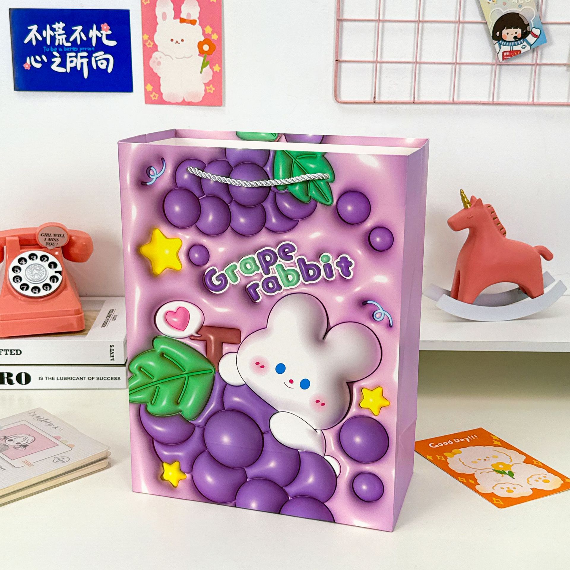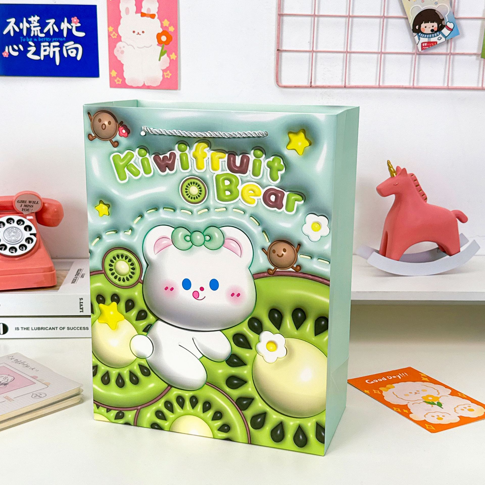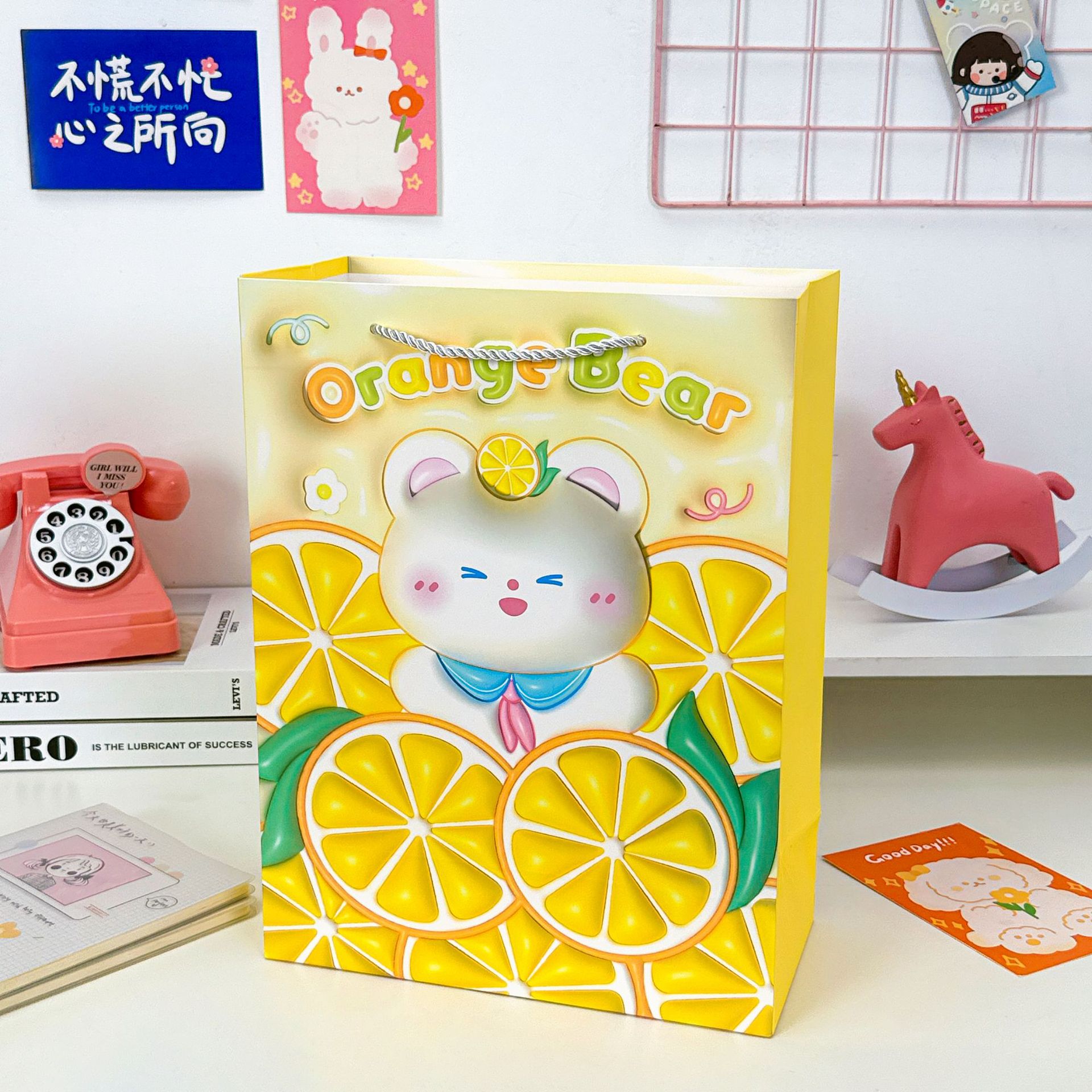 만화 과일 동물 선물 가방 높은 아름다움 가치 생일 선물 포장 스낵 보관 핸드백 두꺼운 종이 가방스토어 가기