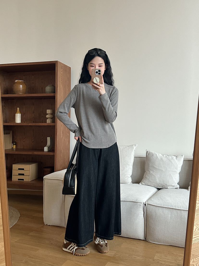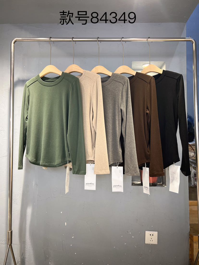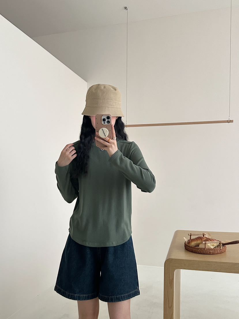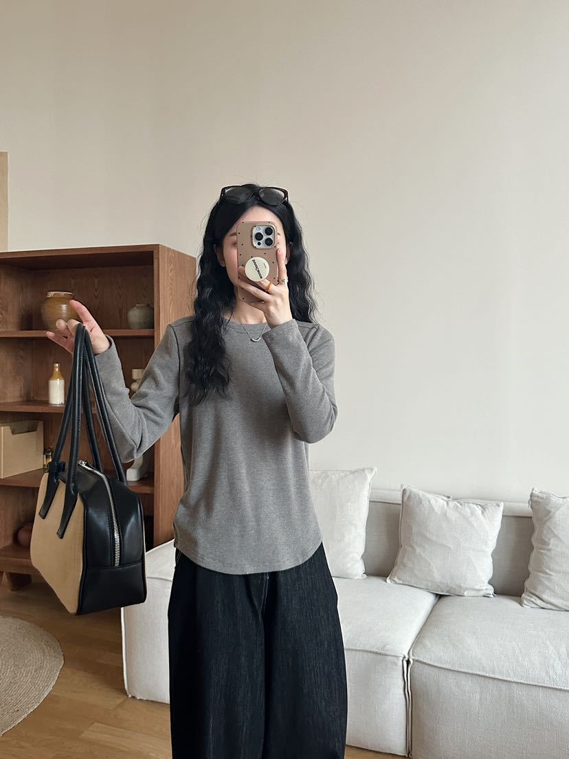가을 2024 새로운 솔리드 컬러 편안한 그물 에디션 캐주얼 크루 넥 긴팔 티셔츠 여성용 내베이스 셔츠스토어 가기