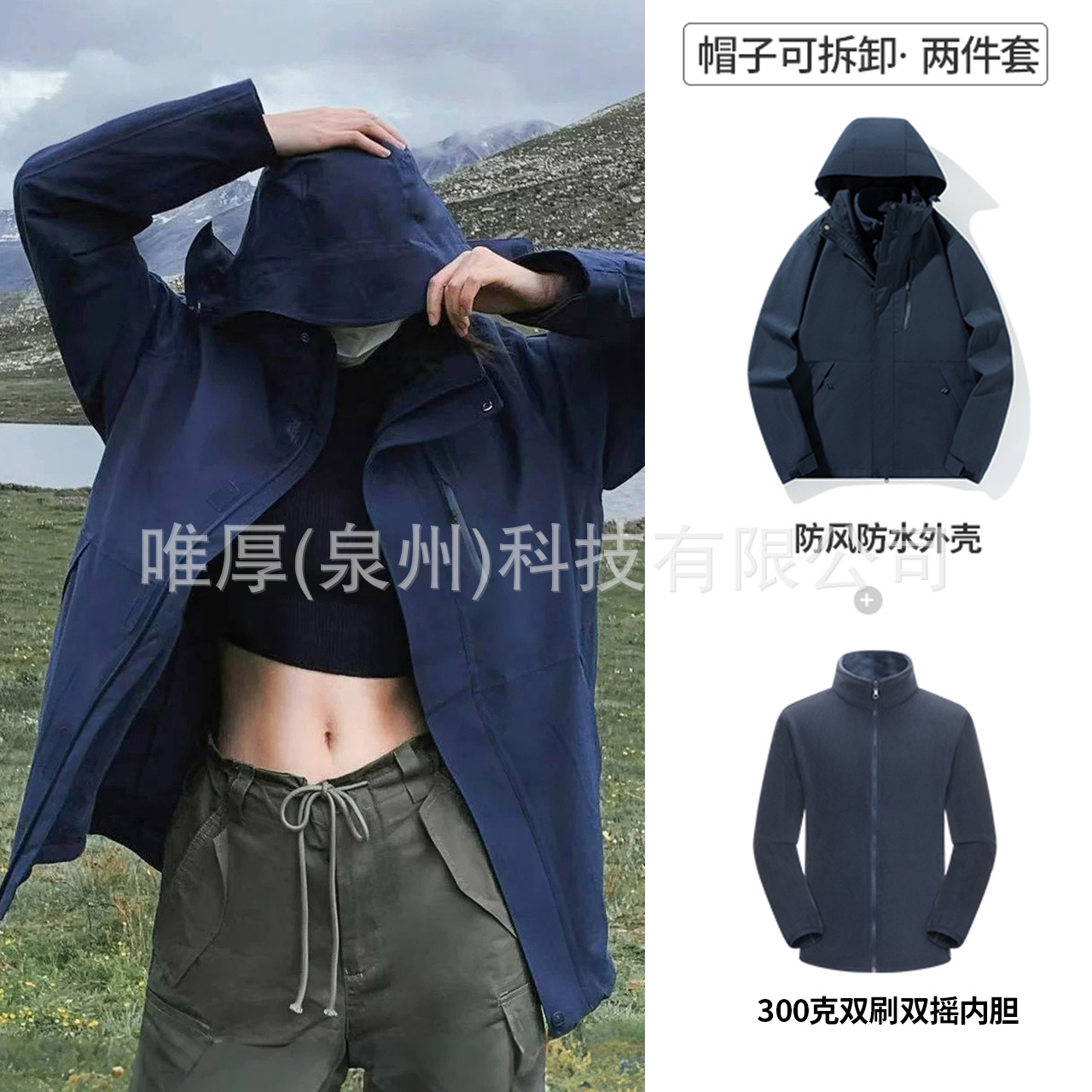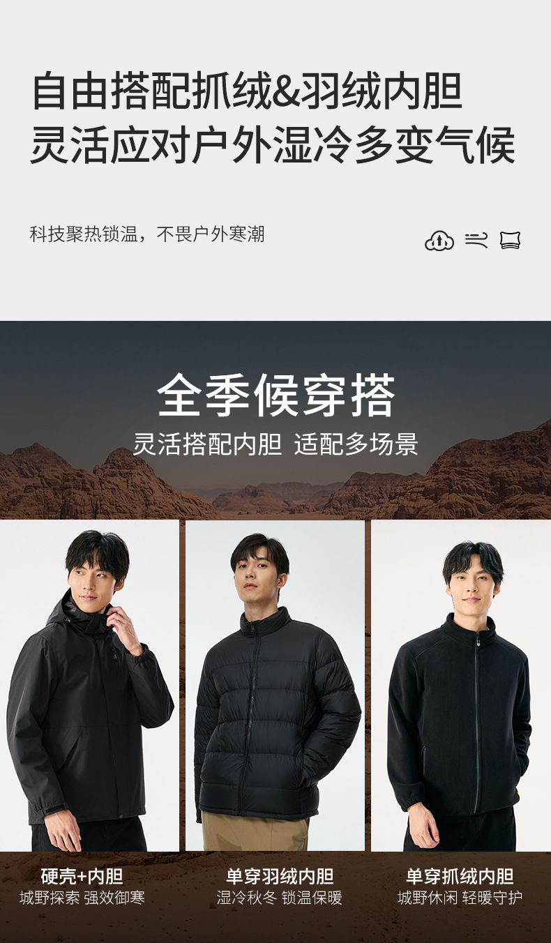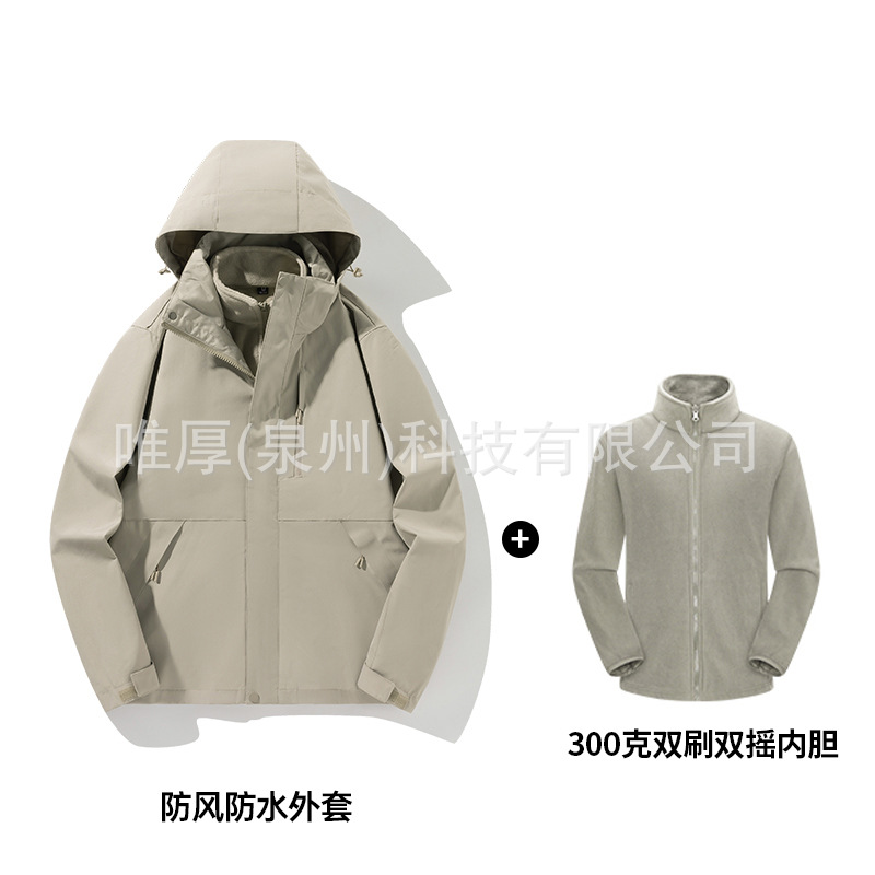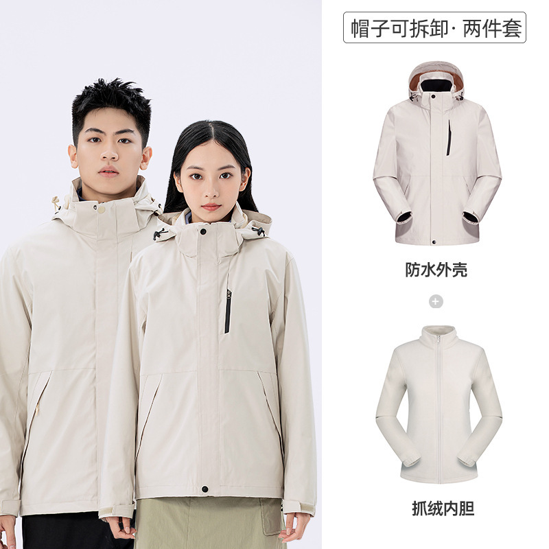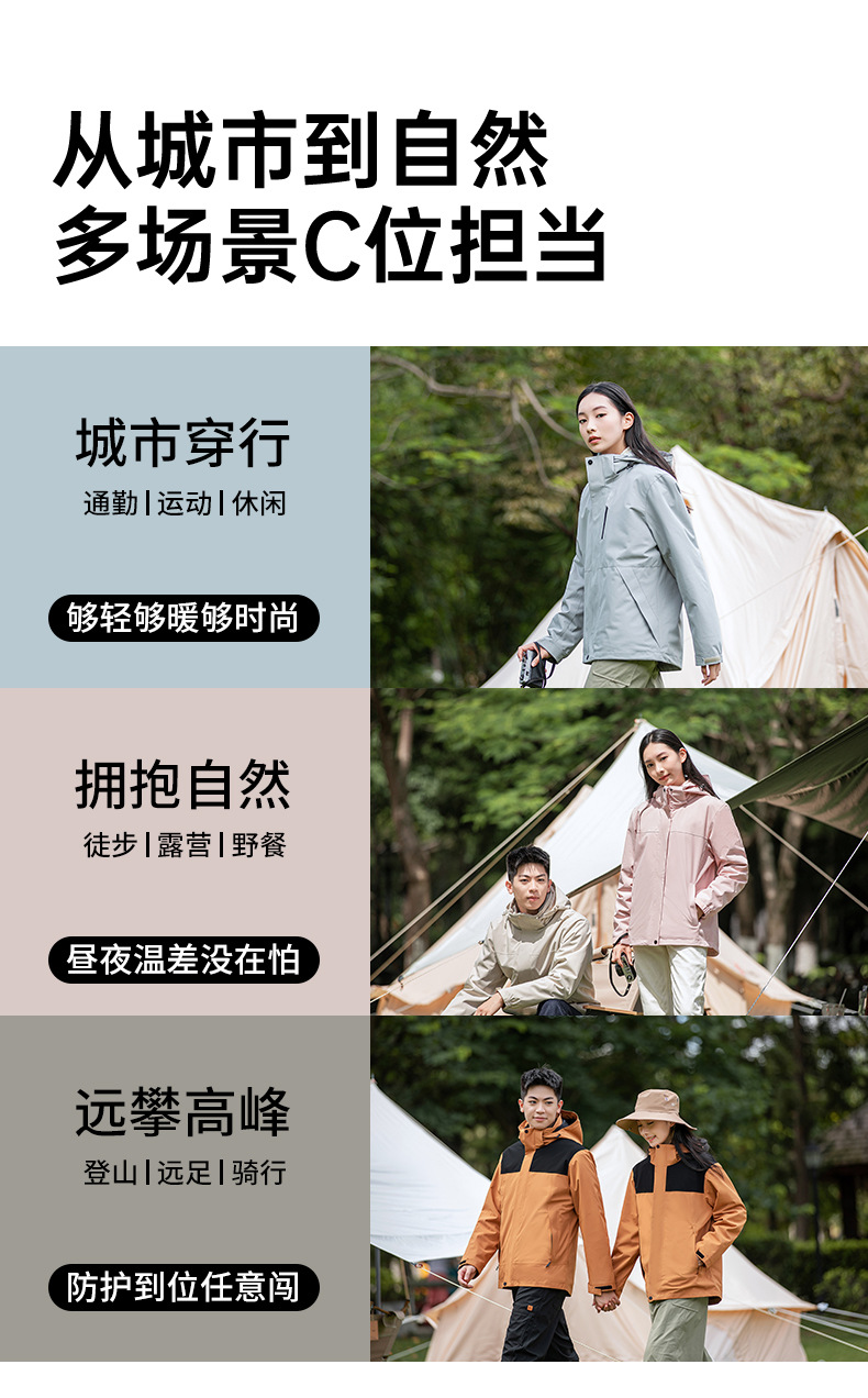 라오토 동일 스타일 여성용 3-in-1 방수 투피스 남성용 아웃도어 방풍 보온 등산복 겨울용스토어 가기