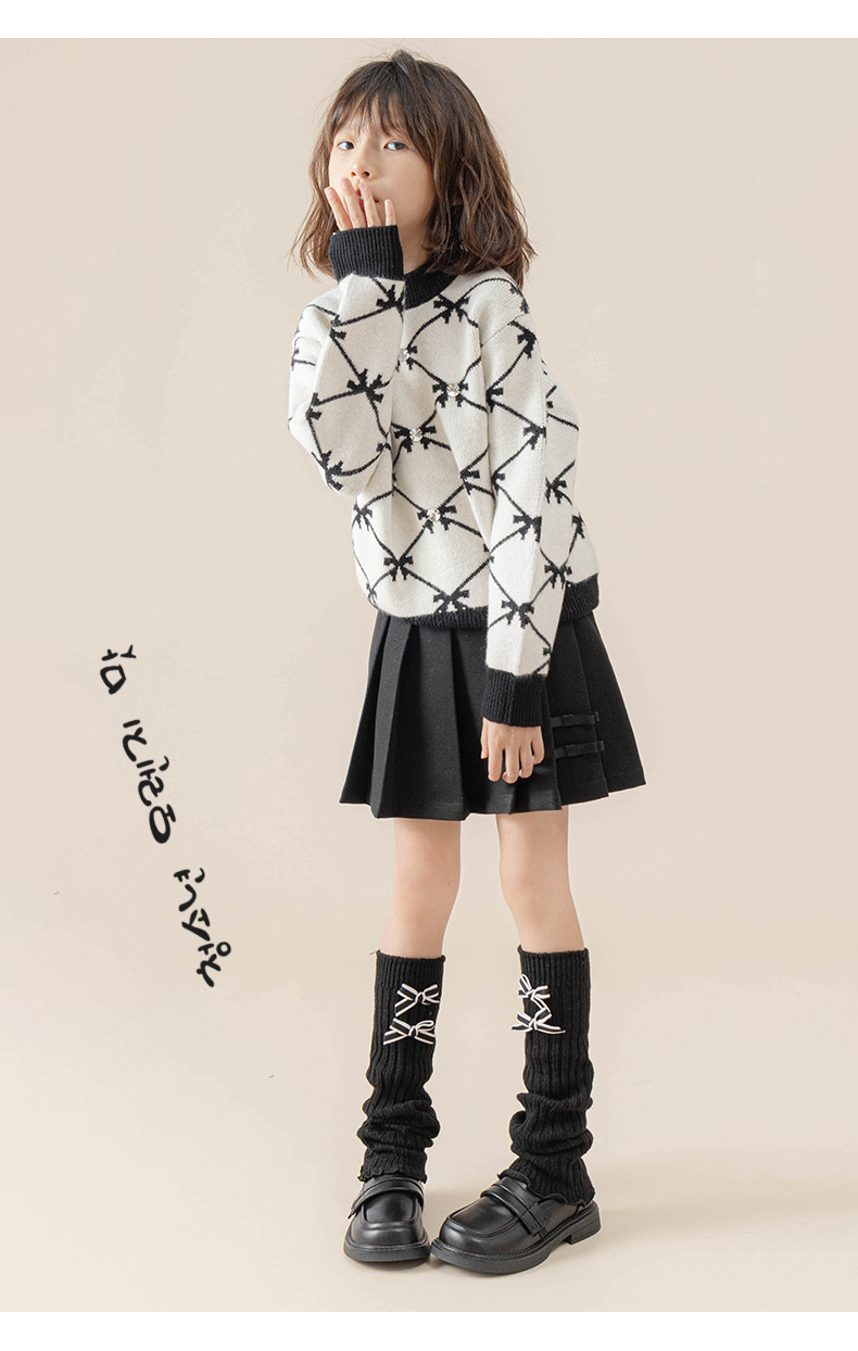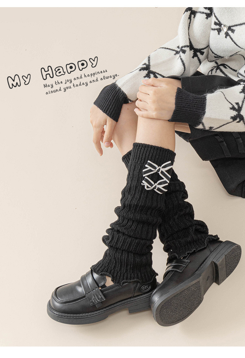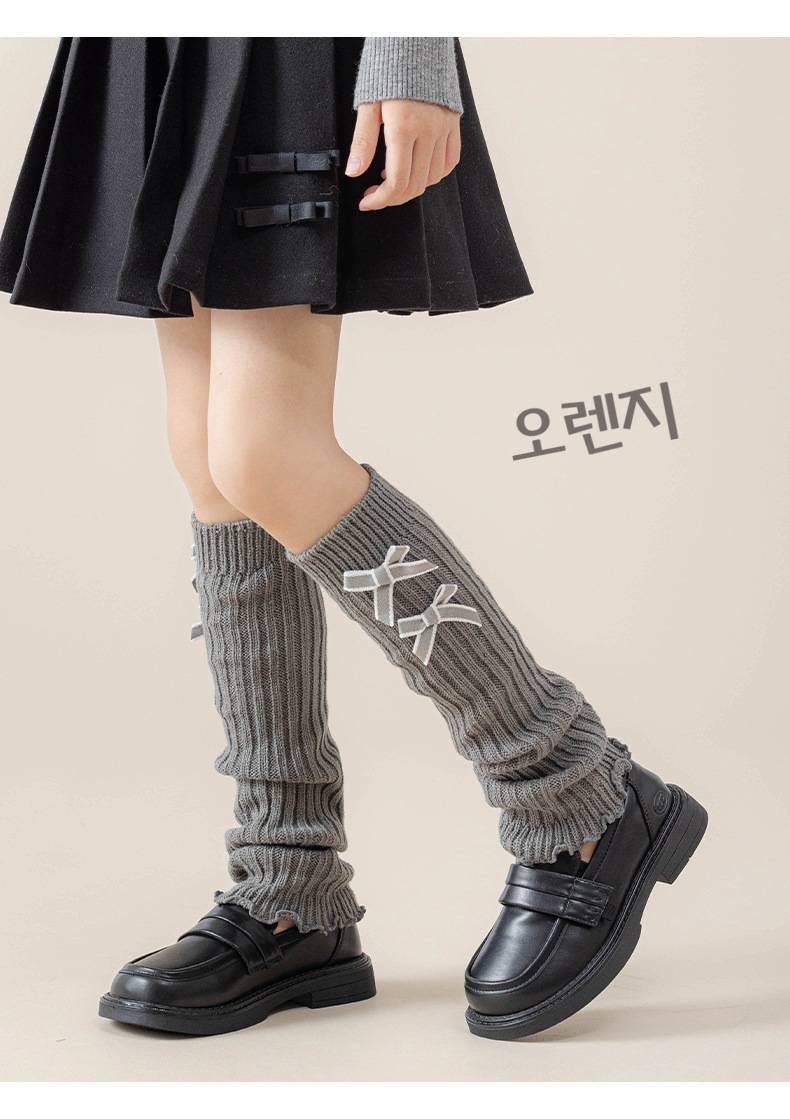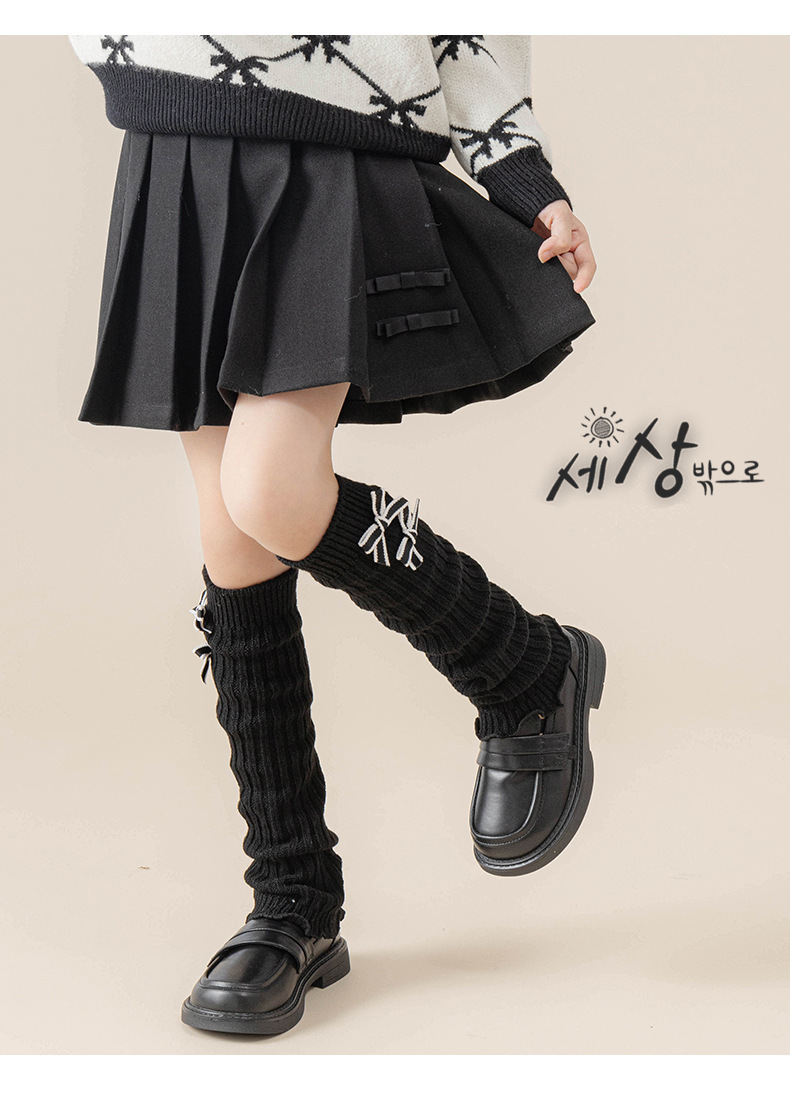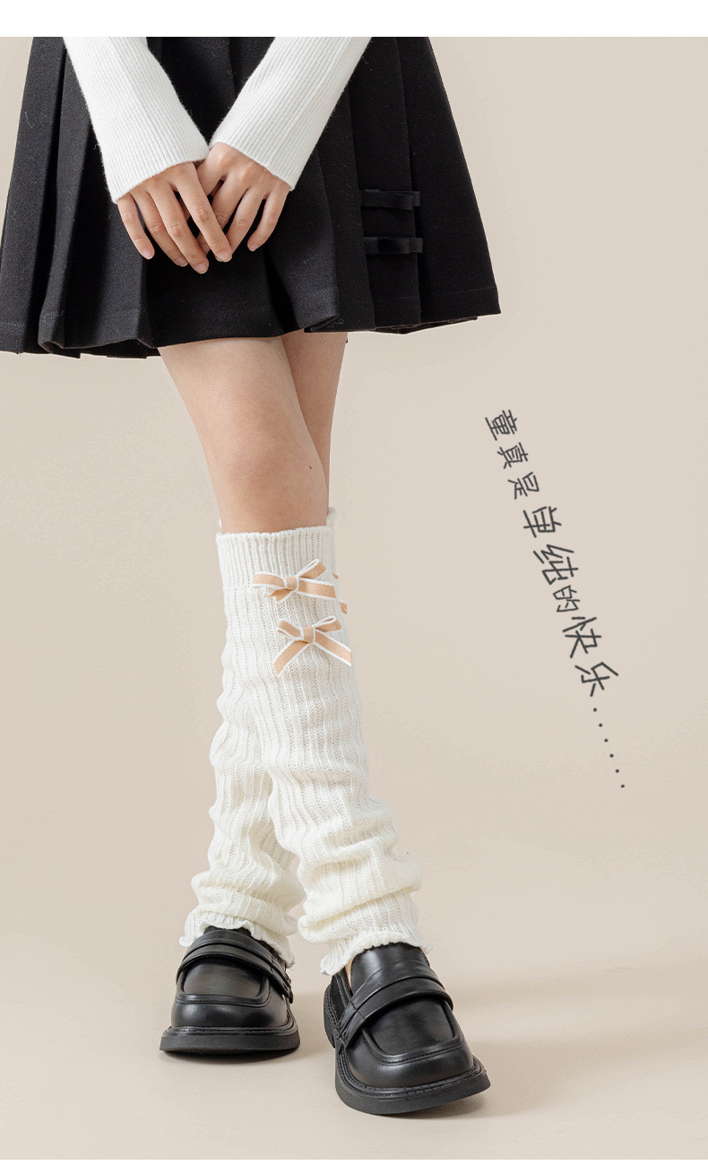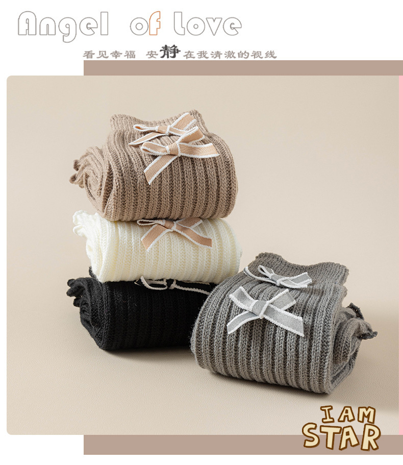 儿童双蝴蝶结女孩袜套洋气针织洛丽塔腿套纯色宝宝堆堆袜厂家
