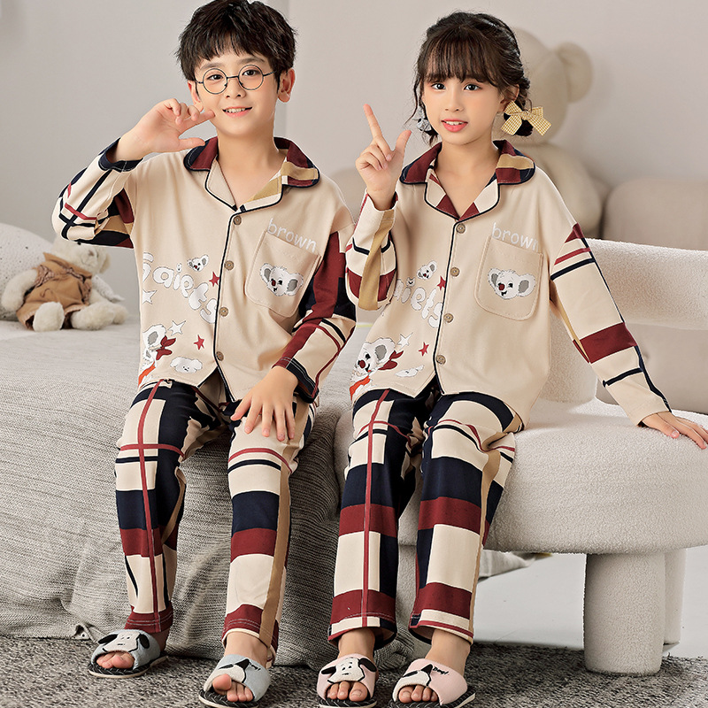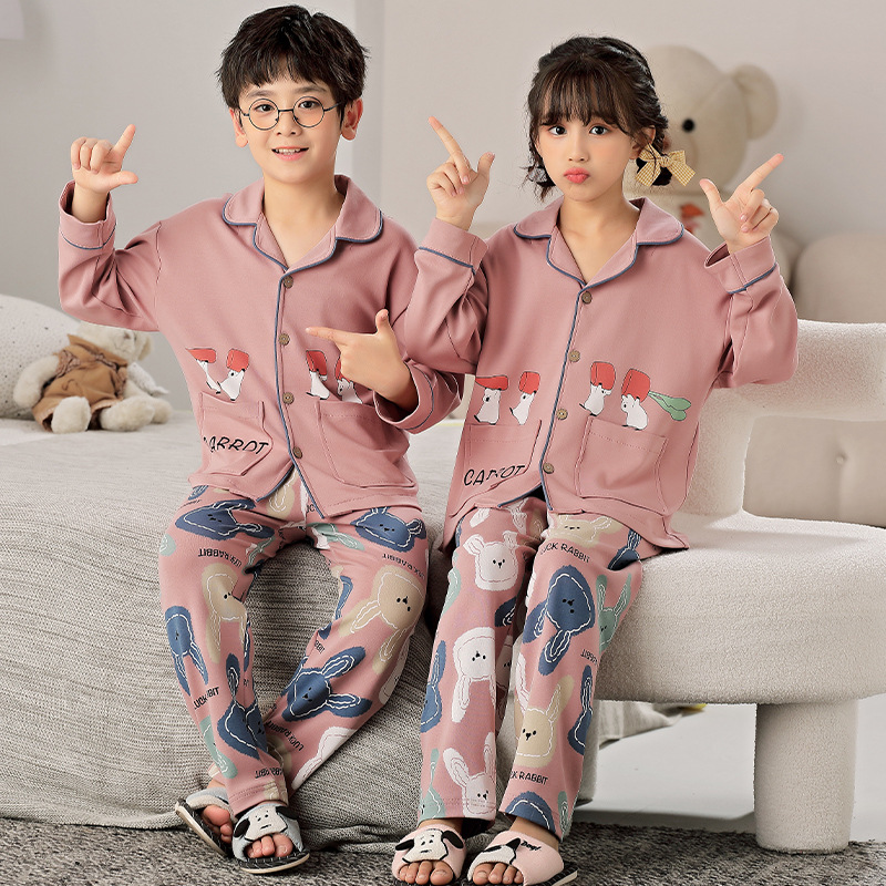 어린이 잠옷 소녀 봄과 가을면 긴팔 공주 만화 생활의 해 레드 남성 중 큰 어린이 가정 옷 세트스토어 가기