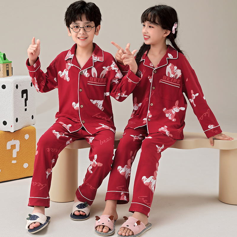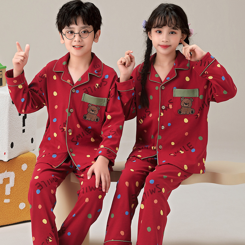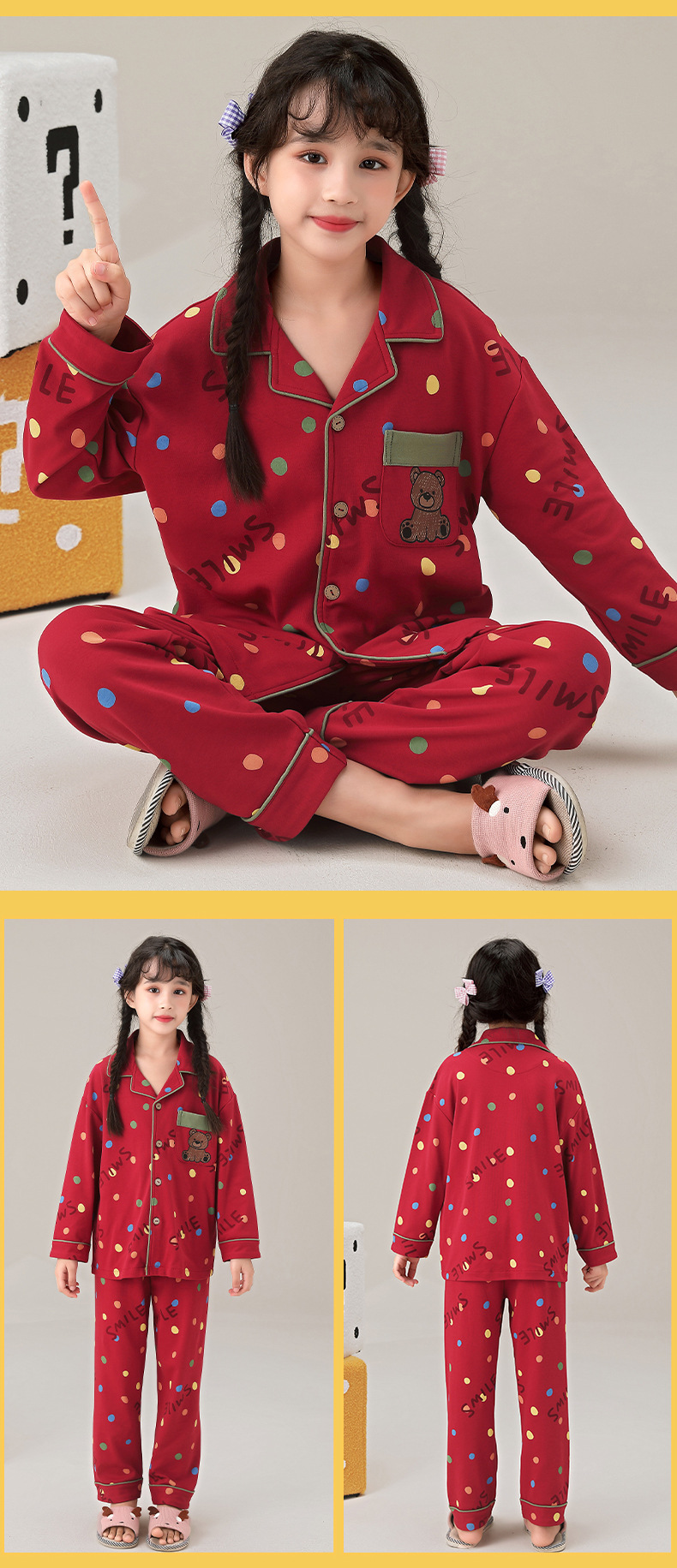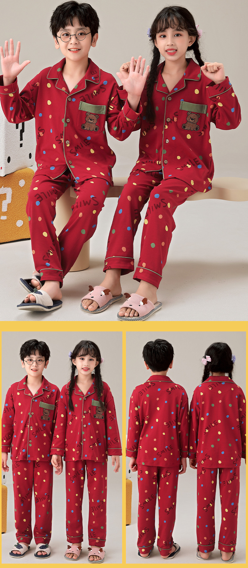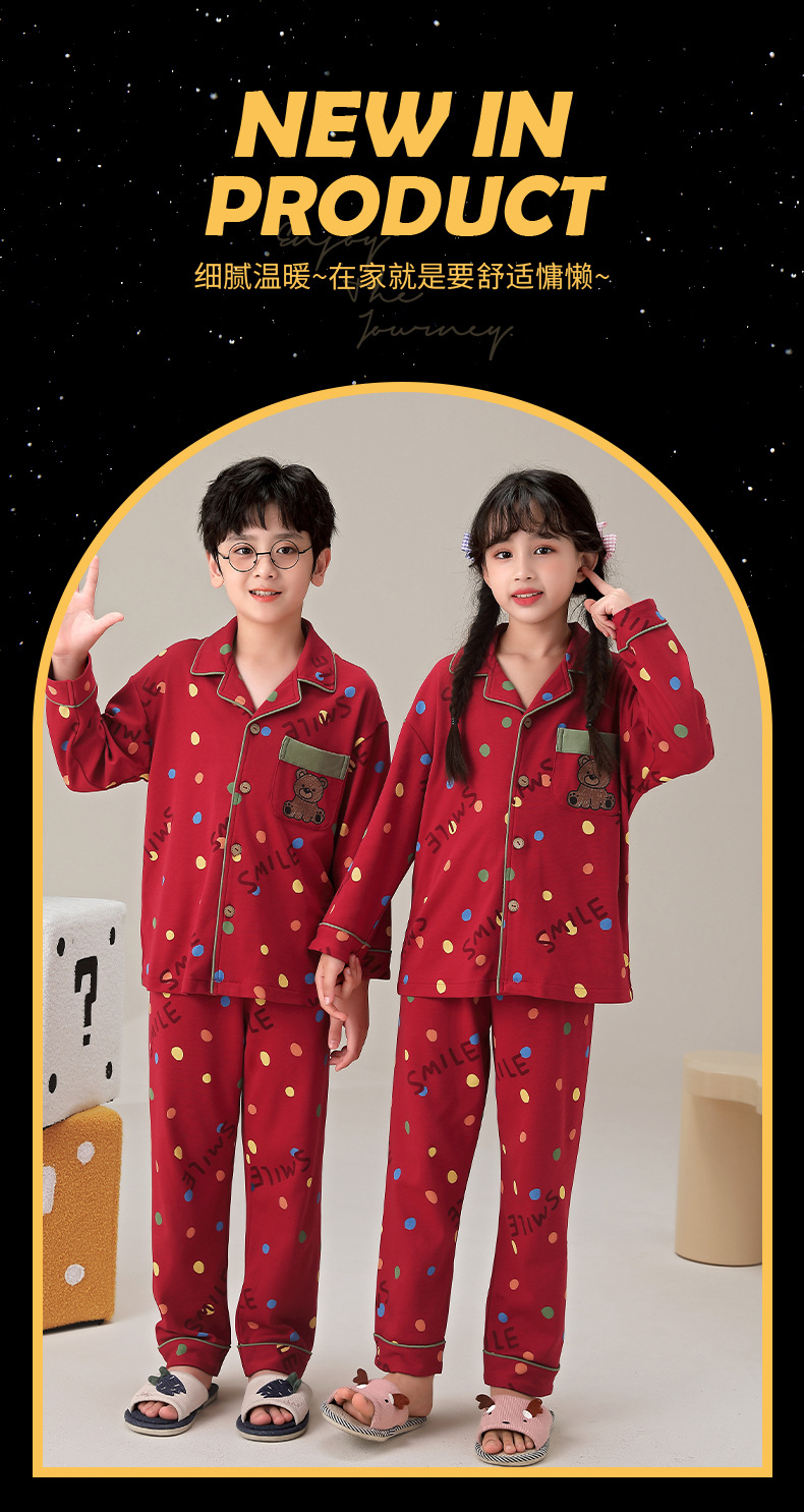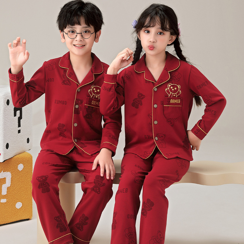 어린이 잠옷 소녀 봄과 가을면 긴팔 공주 만화 생활의 해 레드 남성 중 큰 어린이 가정 옷 세트