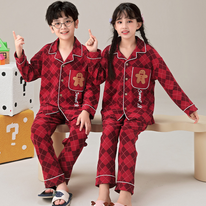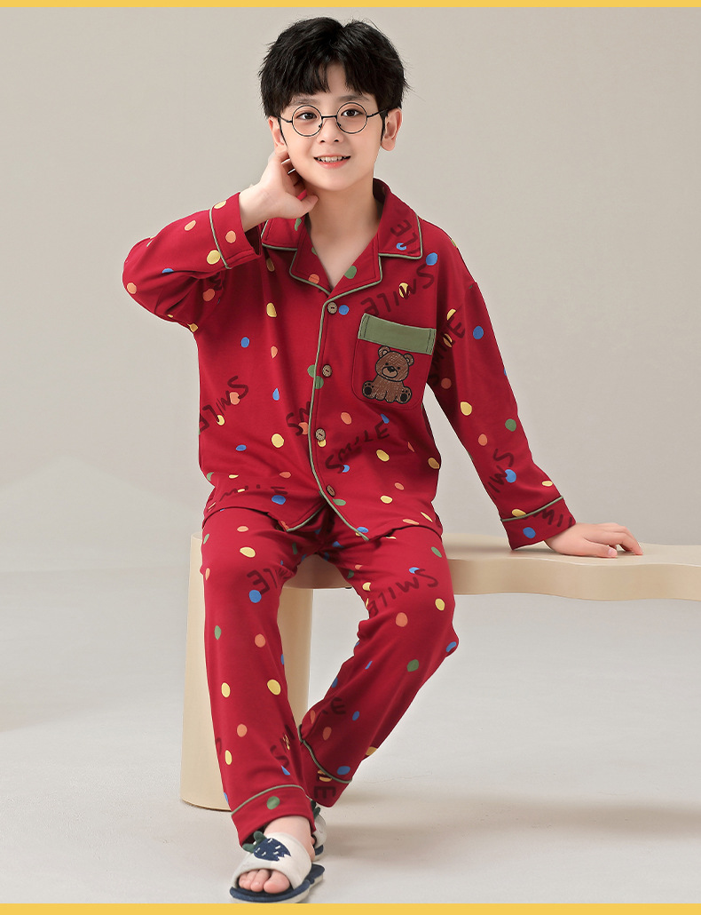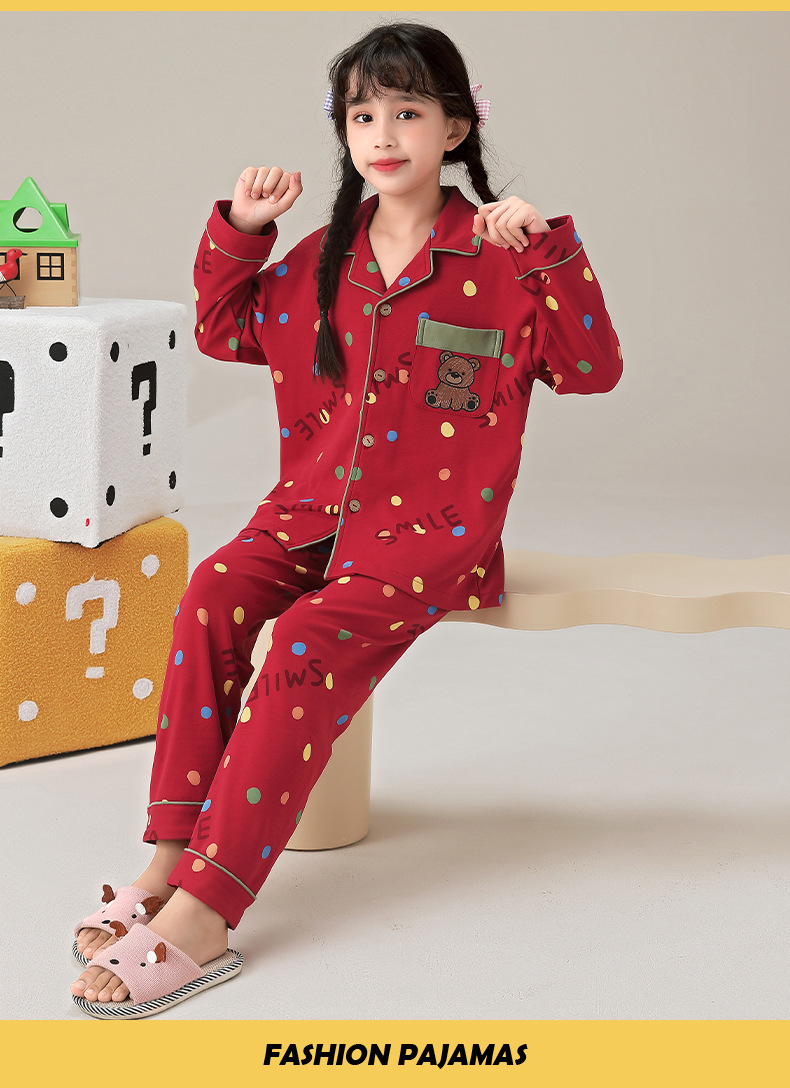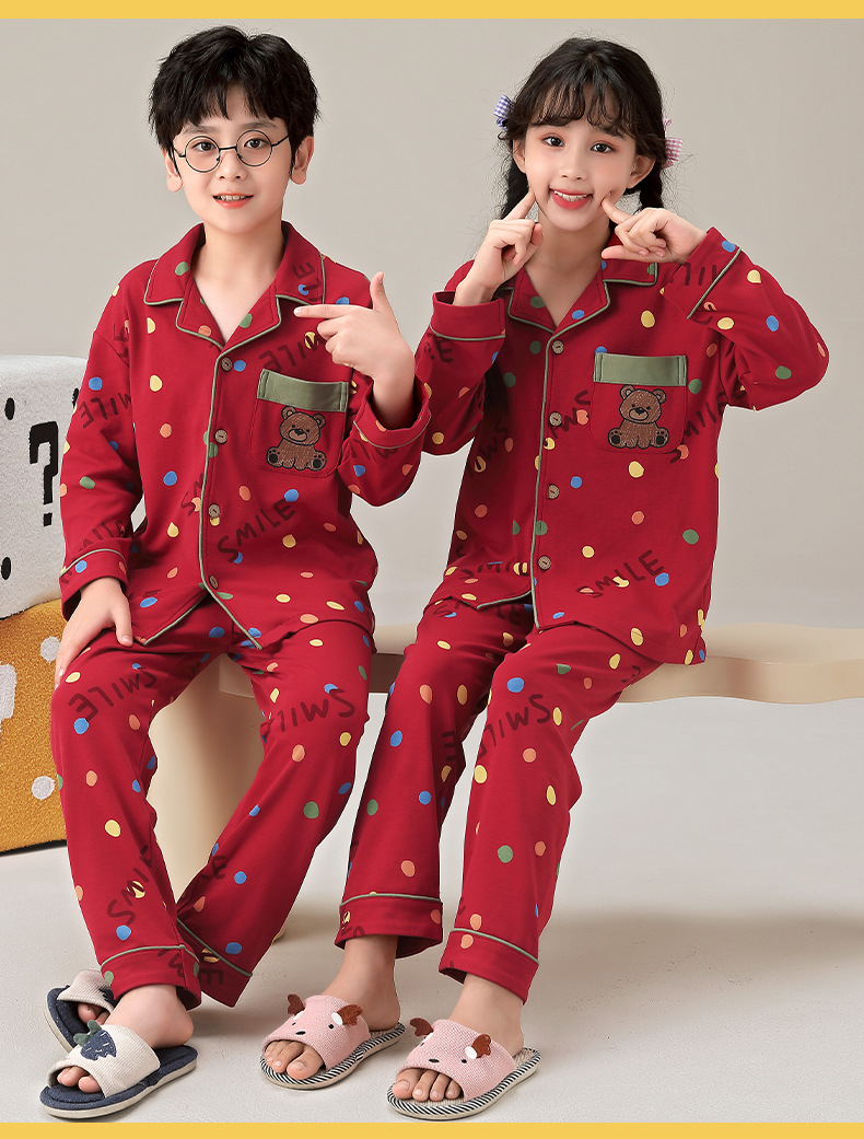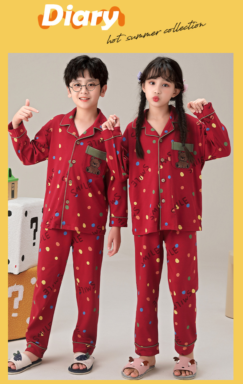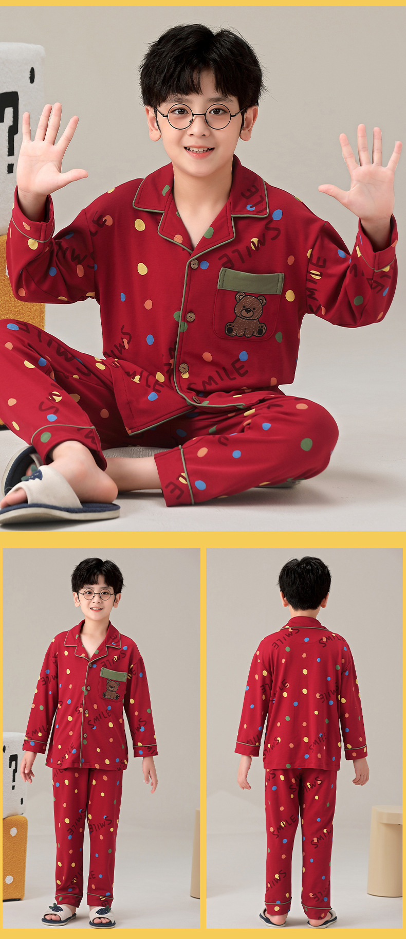 어린이 잠옷 소녀 봄과 가을면 긴팔 공주 만화 생활의 해 레드 남성 중 큰 어린이 가정 옷 세트