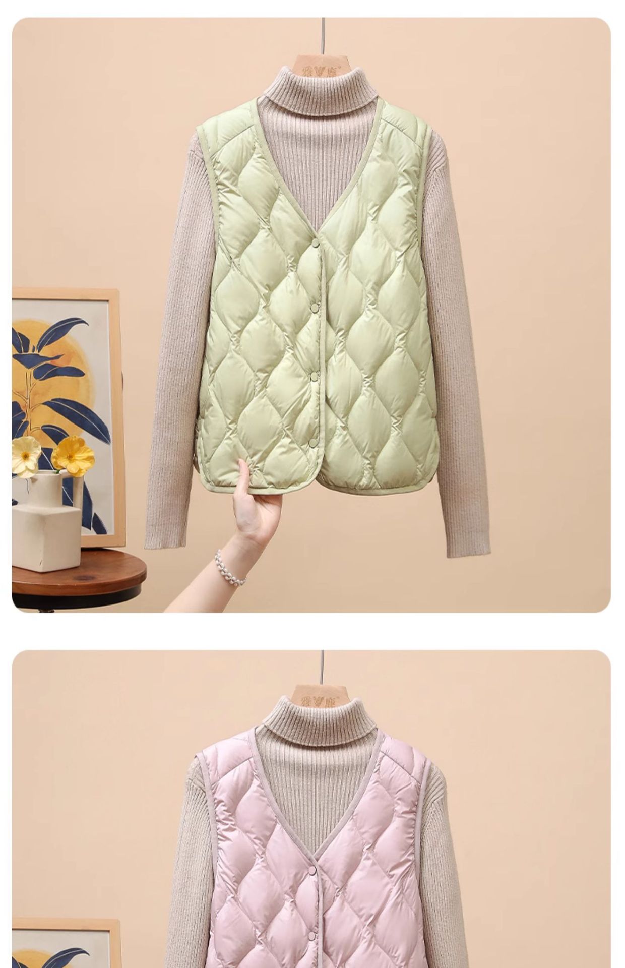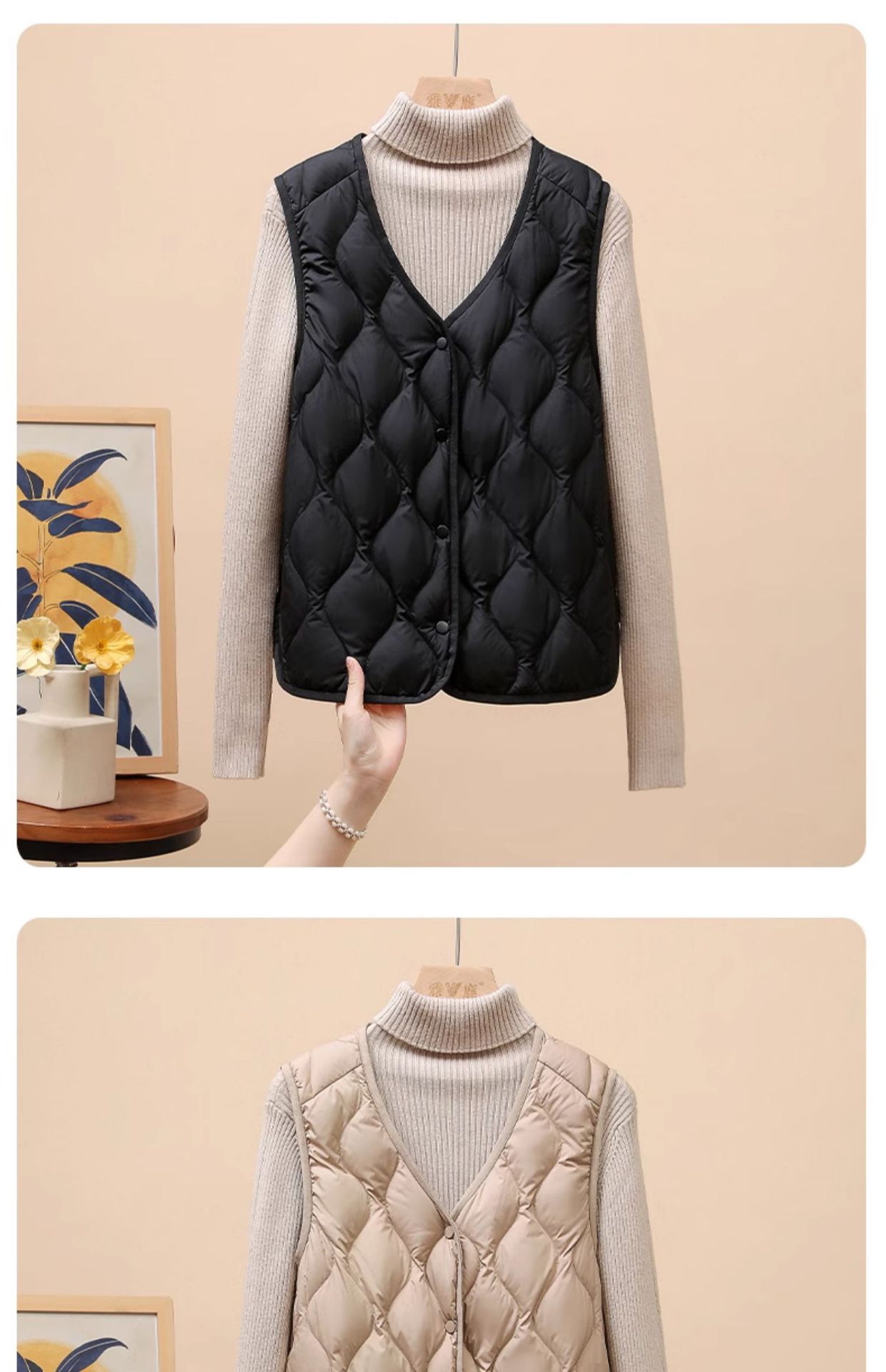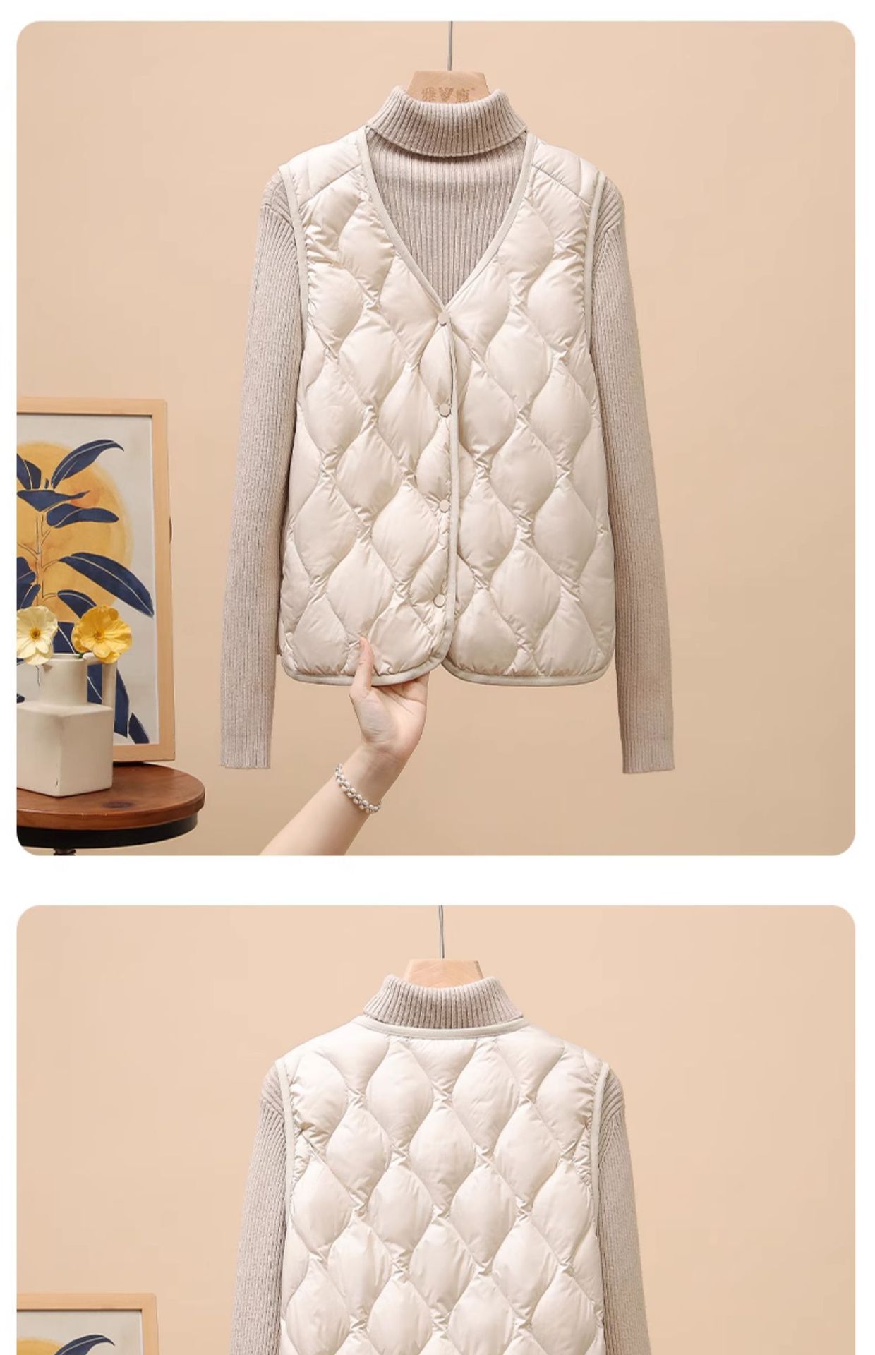 다운 조끼 여성용 경량 짧은 겨울 V 넥 긴팔 조끼 90 화이트 덕 다운 라이너 웨이스트 코트 유행스토어 가기
