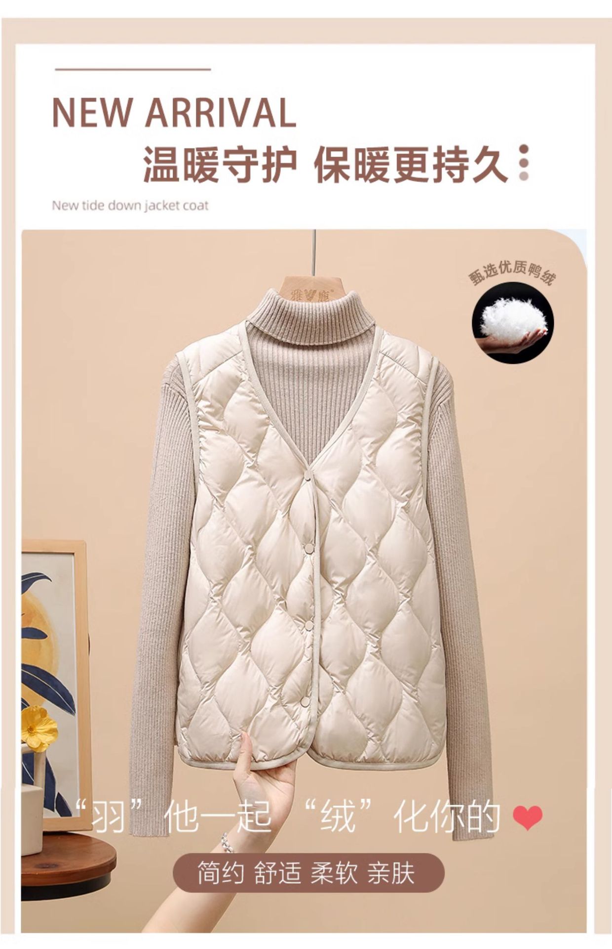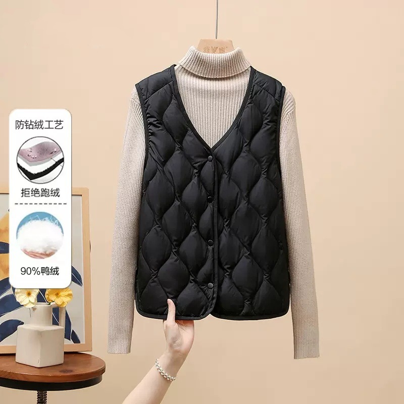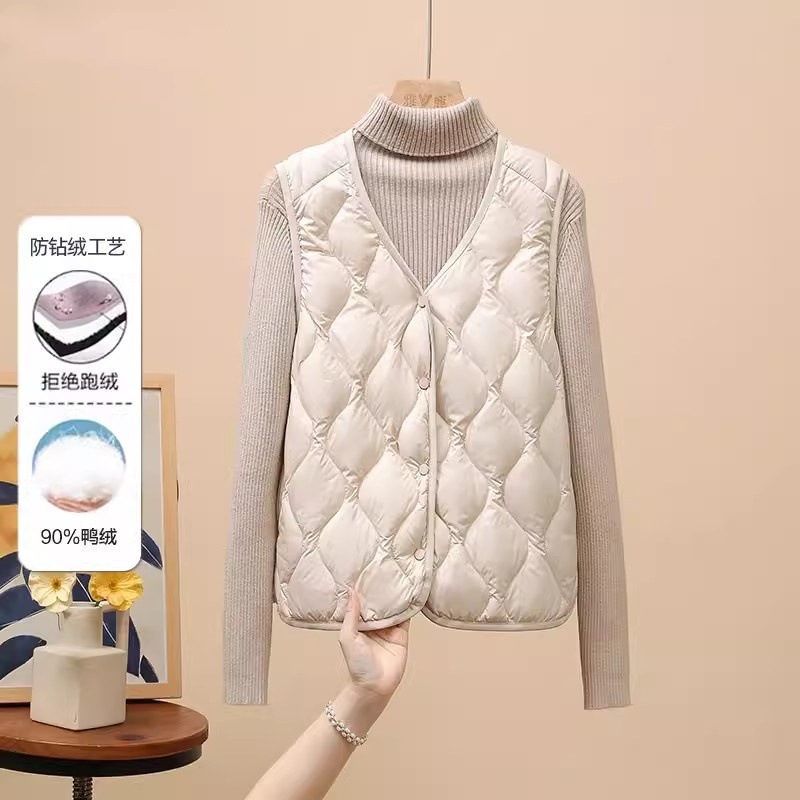 다운 조끼 여성용 경량 짧은 겨울 V 넥 긴팔 조끼 90 화이트 덕 다운 라이너 웨이스트 코트 유행
