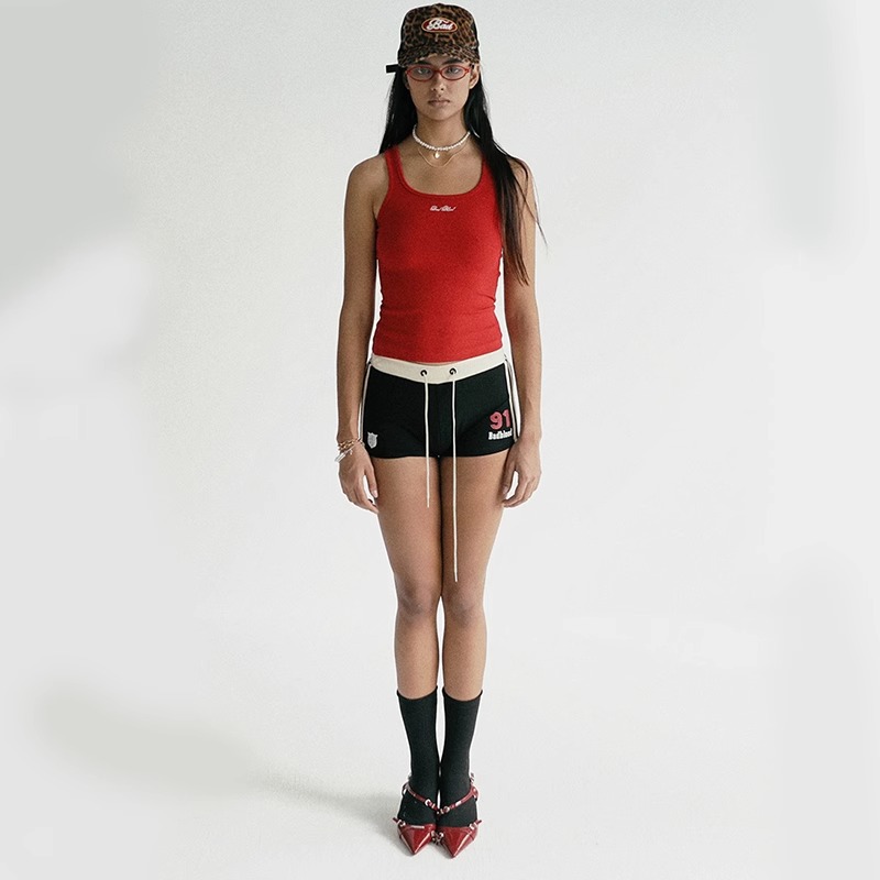 Badblood American Retro 스포츠 반바지 여성 핫 바지 섹시 로우 허리 캐주얼 요가 피트니스 3 점 바지