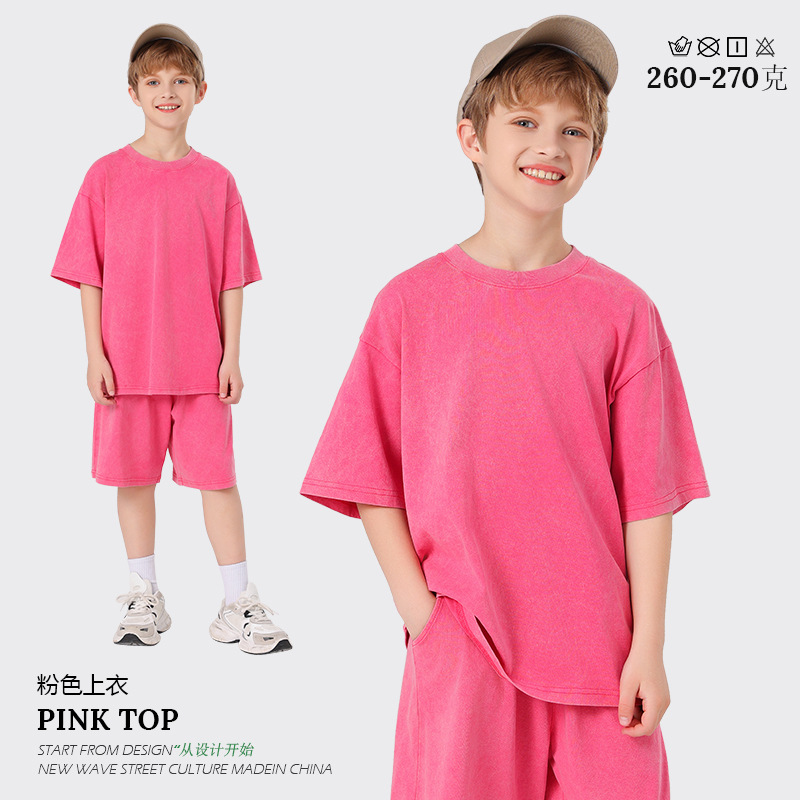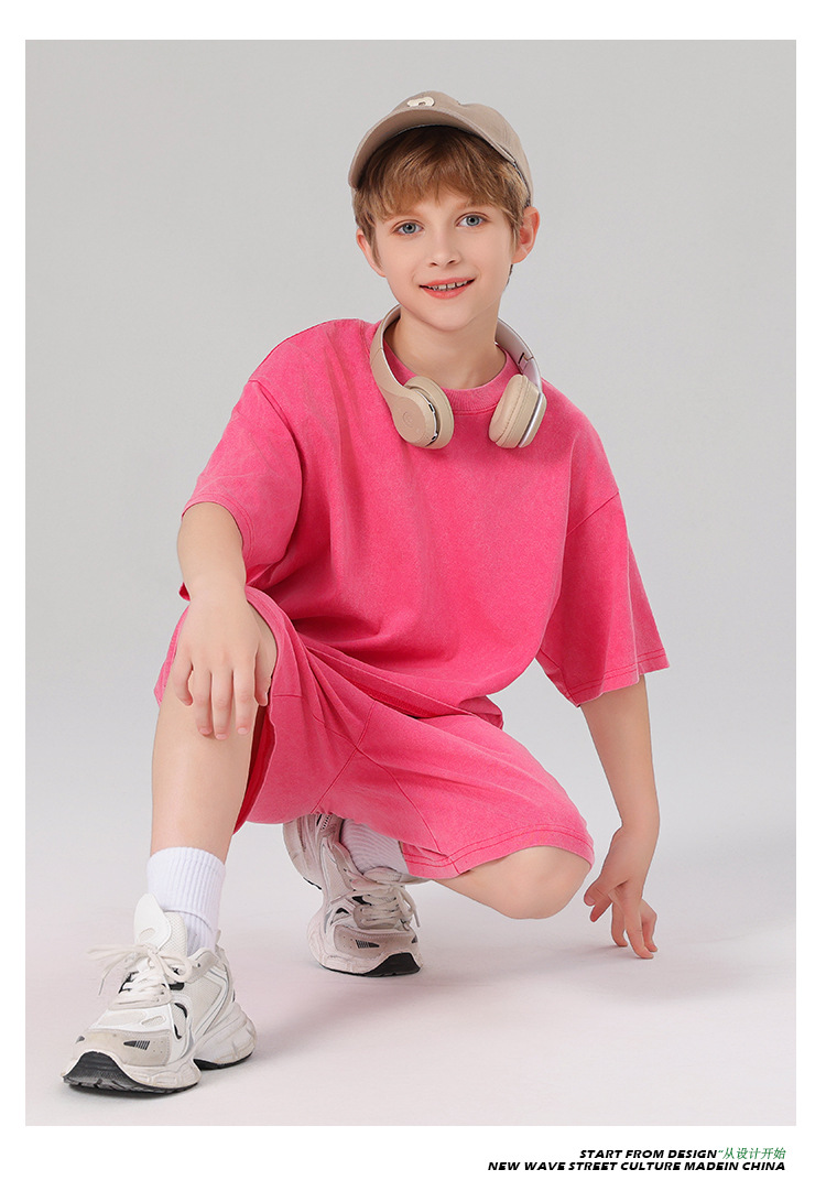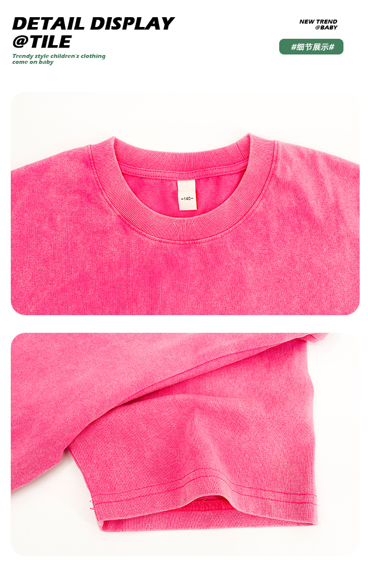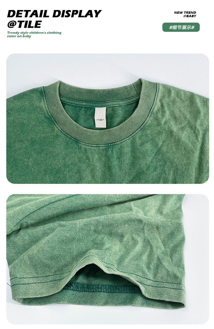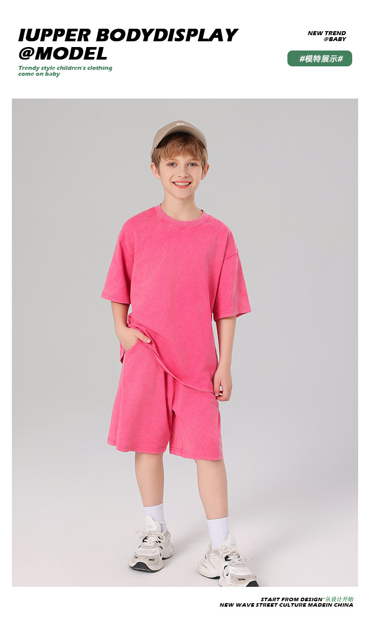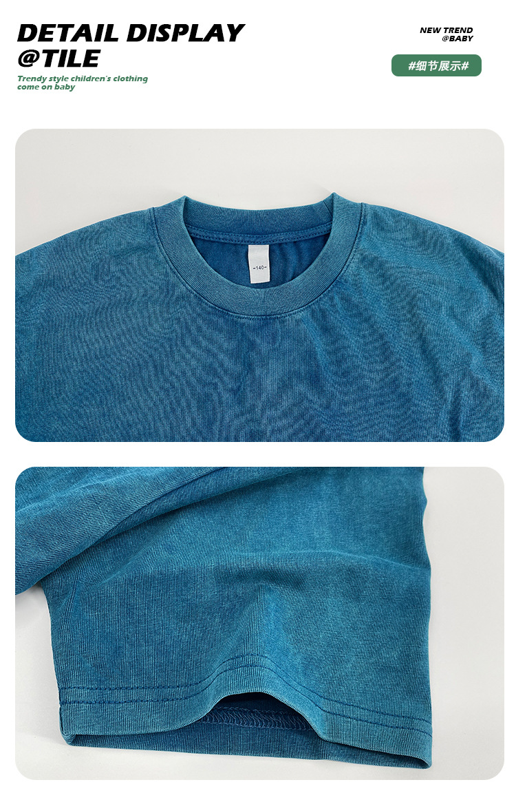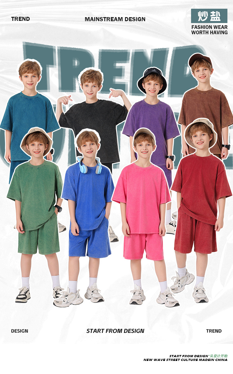아동복 2025 봄 여름 단색 티셔츠 소매 반바지 유럽과 미국의 루즈한 아동용 솔티드 코튼 티셔츠 아동복스토어 가기