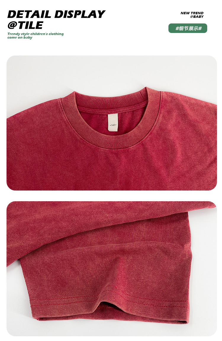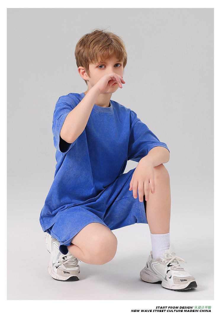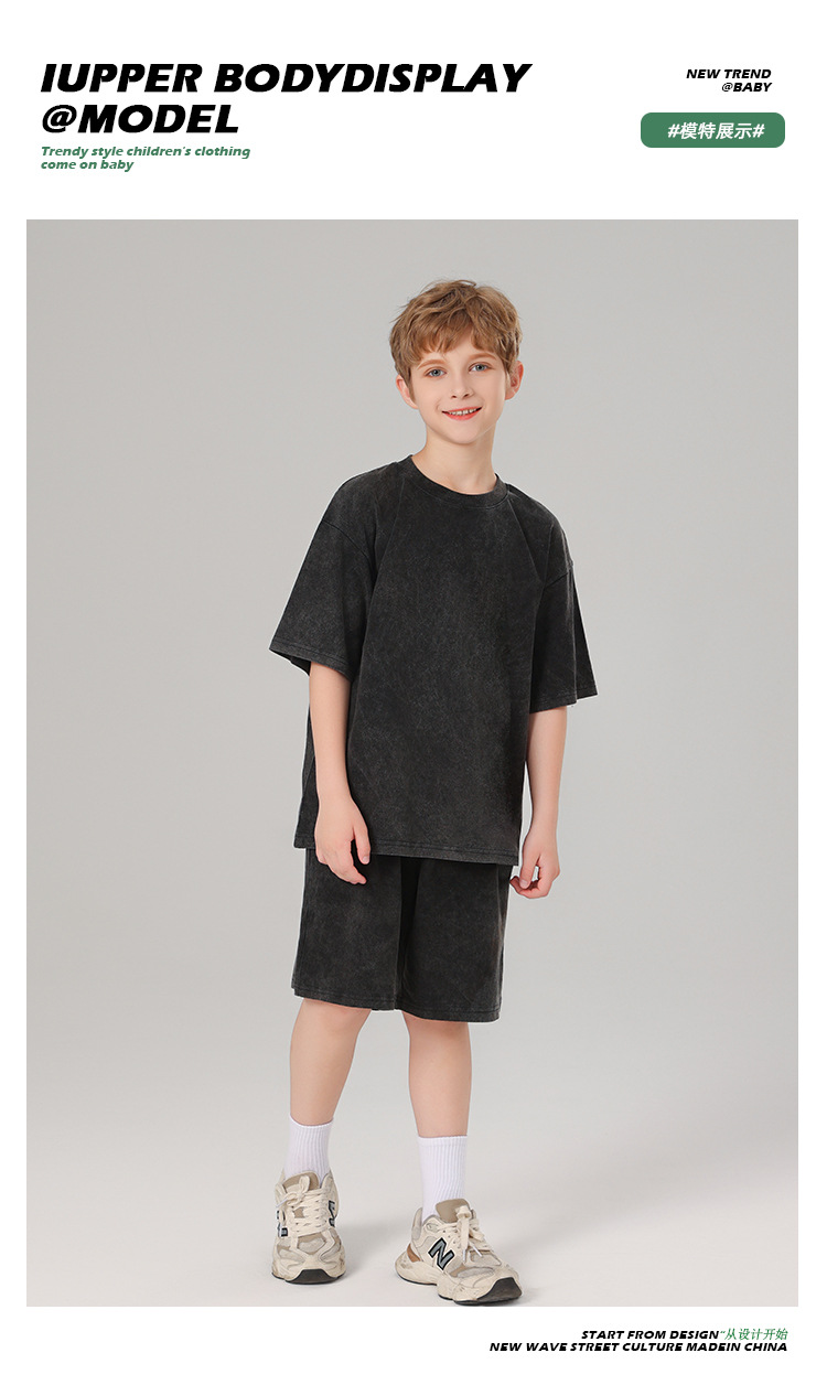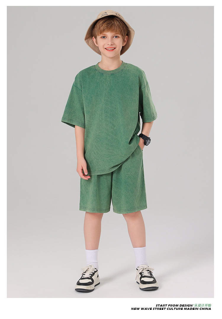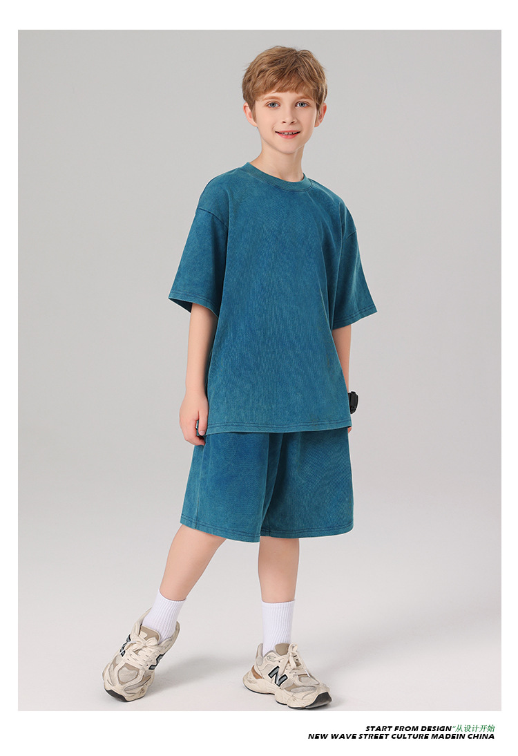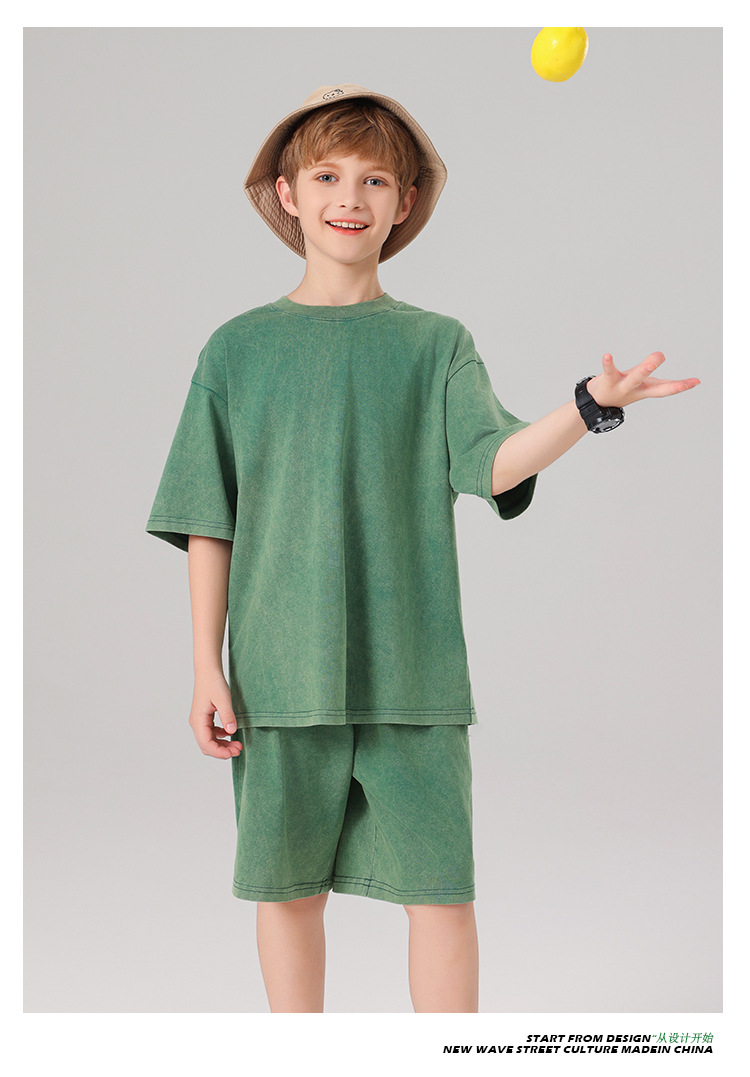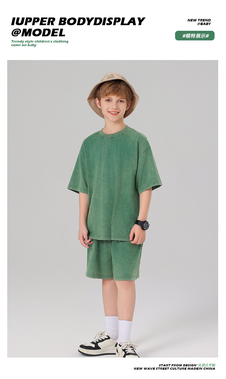 아동복 2025 봄 여름 단색 티셔츠 소매 반바지 유럽과 미국의 루즈한 아동용 솔티드 코튼 티셔츠 아동복스토어 가기