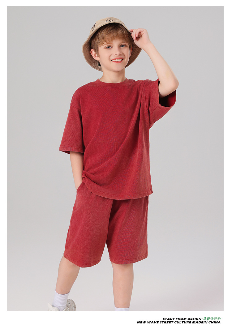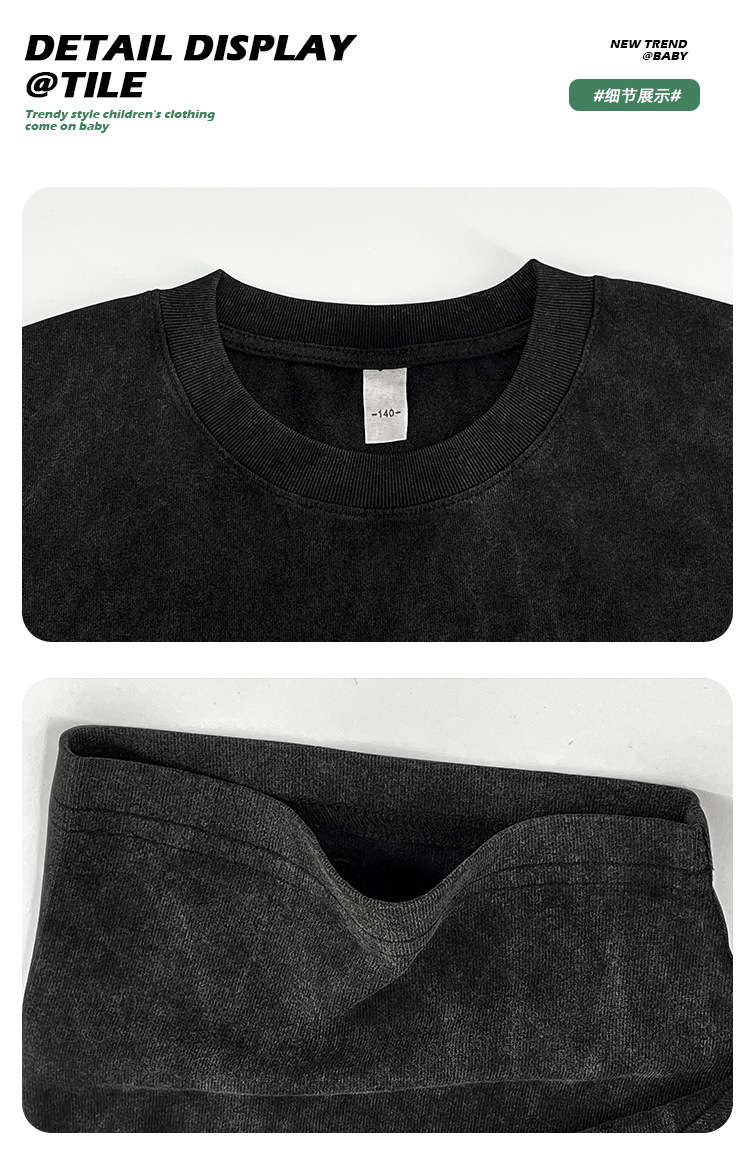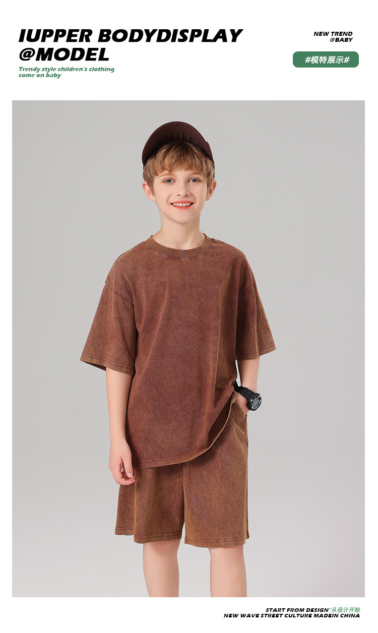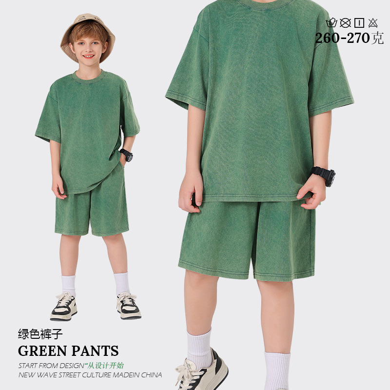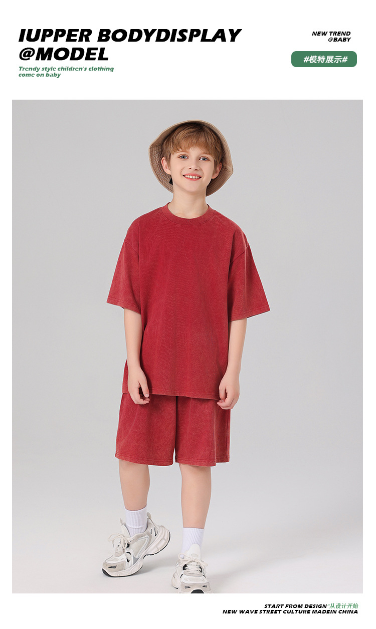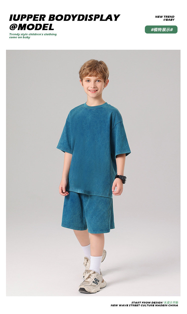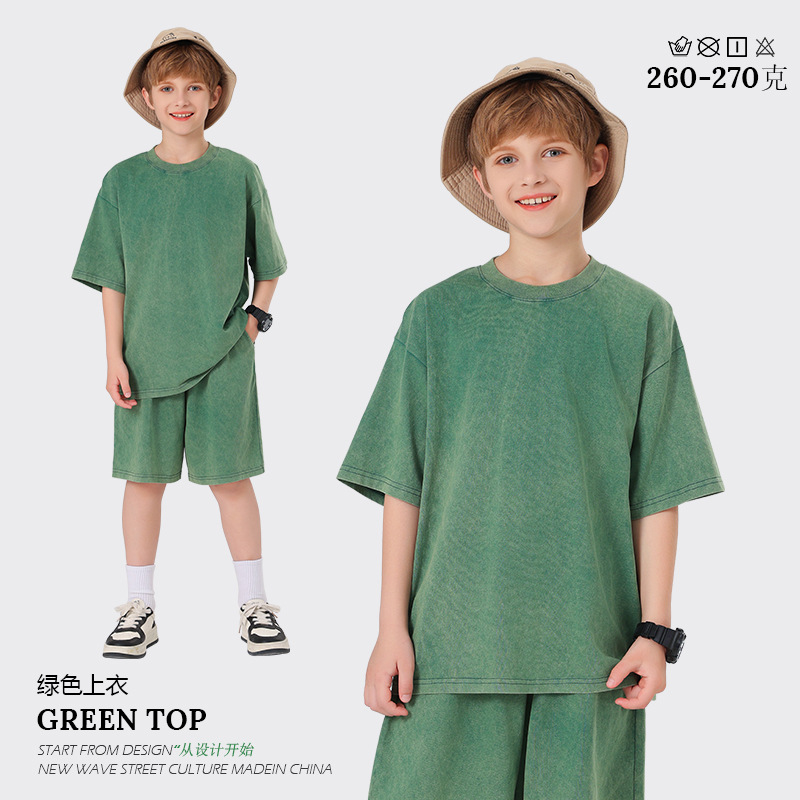 아동복 2025 봄 여름 단색 티셔츠 소매 반바지 유럽과 미국의 루즈한 아동용 솔티드 코튼 티셔츠 아동복스토어 가기