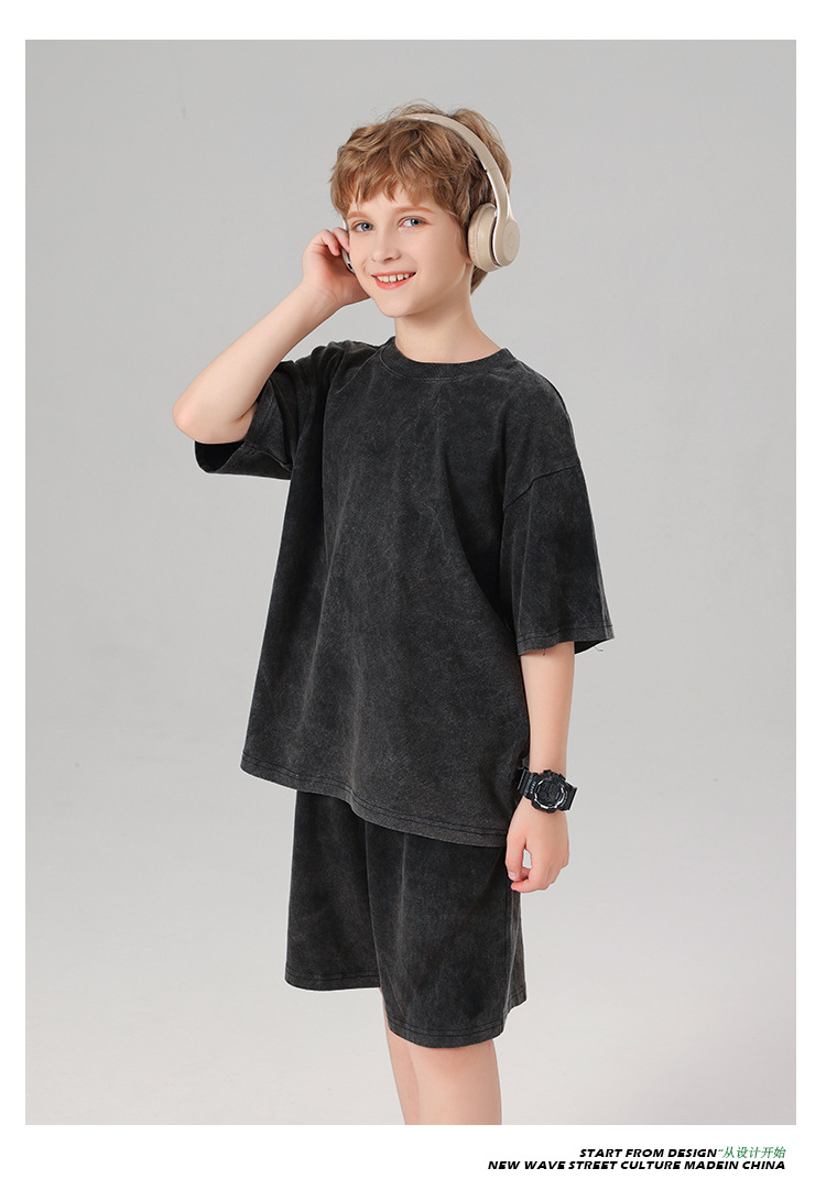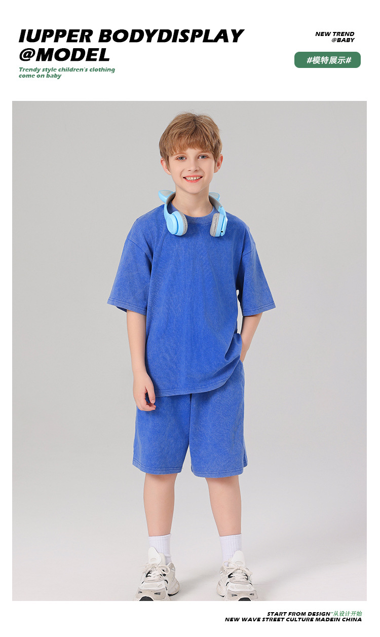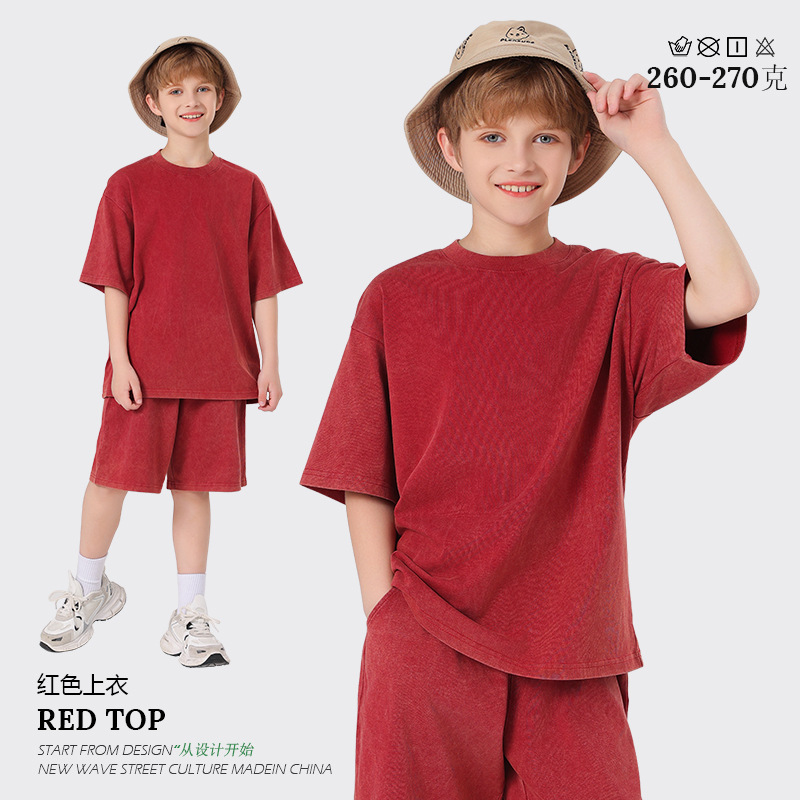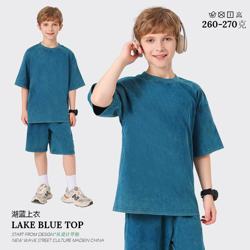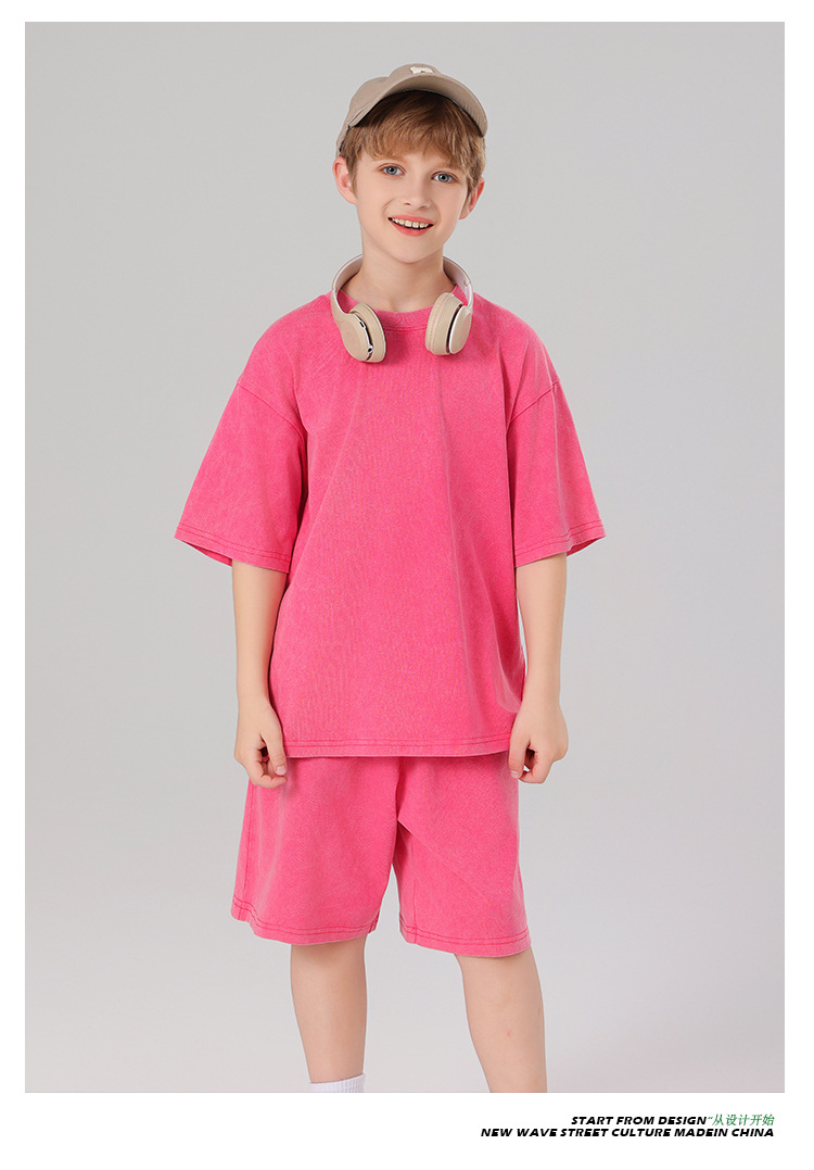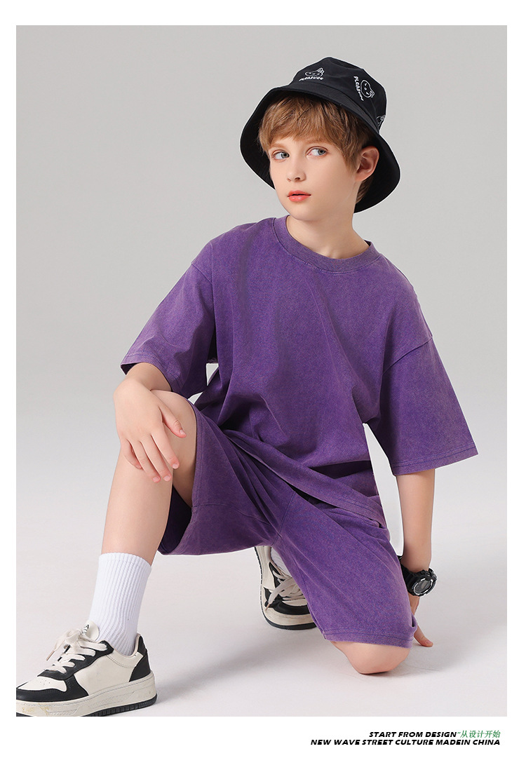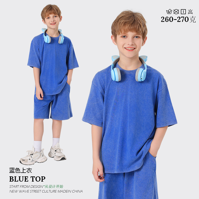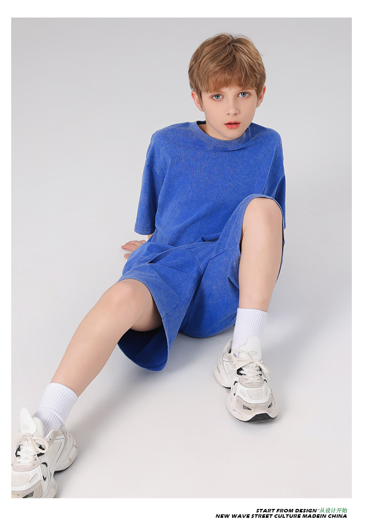 아동복 2025 봄 여름 단색 티셔츠 소매 반바지 유럽과 미국의 루즈한 아동용 솔티드 코튼 티셔츠 아동복스토어 가기
