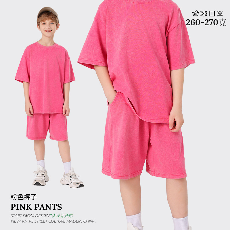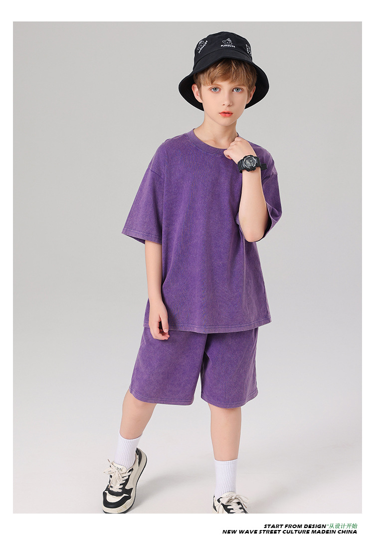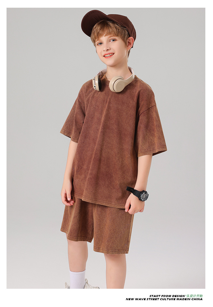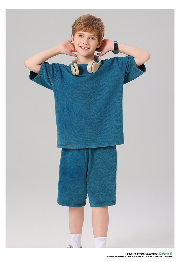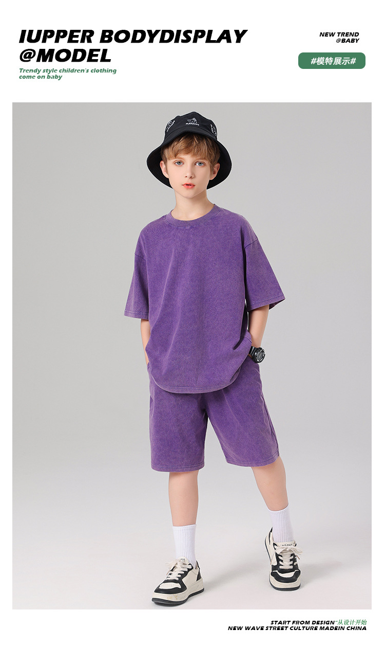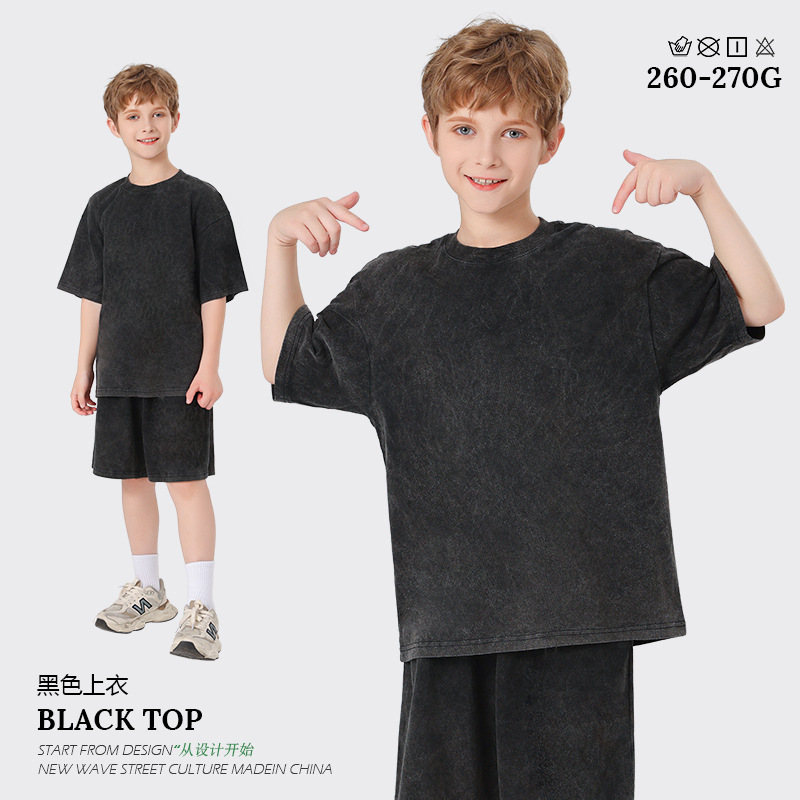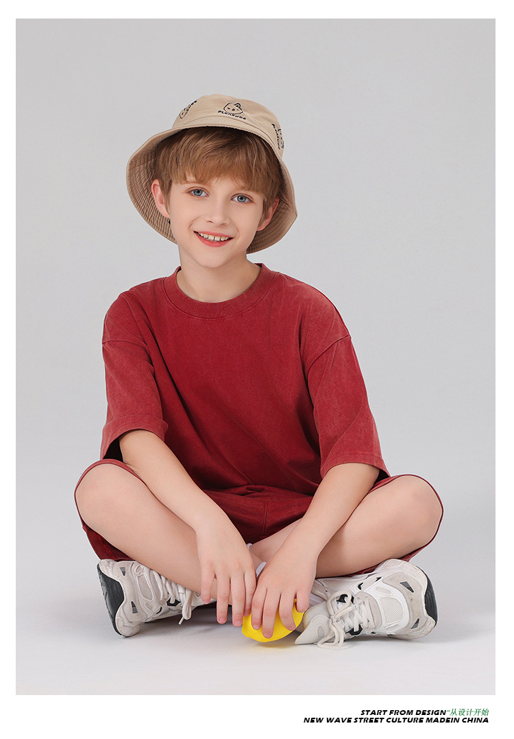 아동복 2025 봄 여름 단색 티셔츠 소매 반바지 유럽과 미국의 루즈한 아동용 솔티드 코튼 티셔츠 아동복스토어 가기