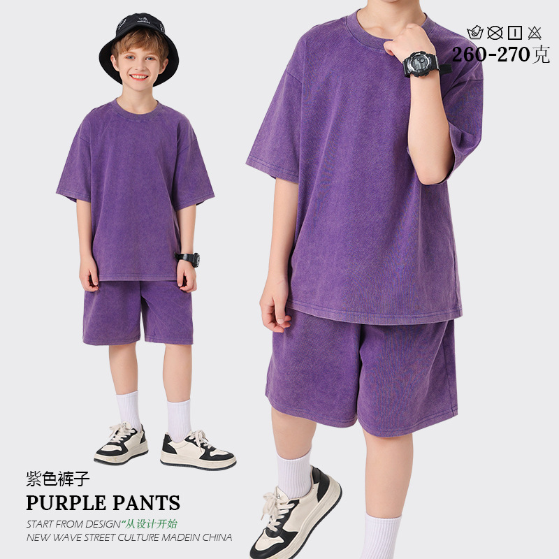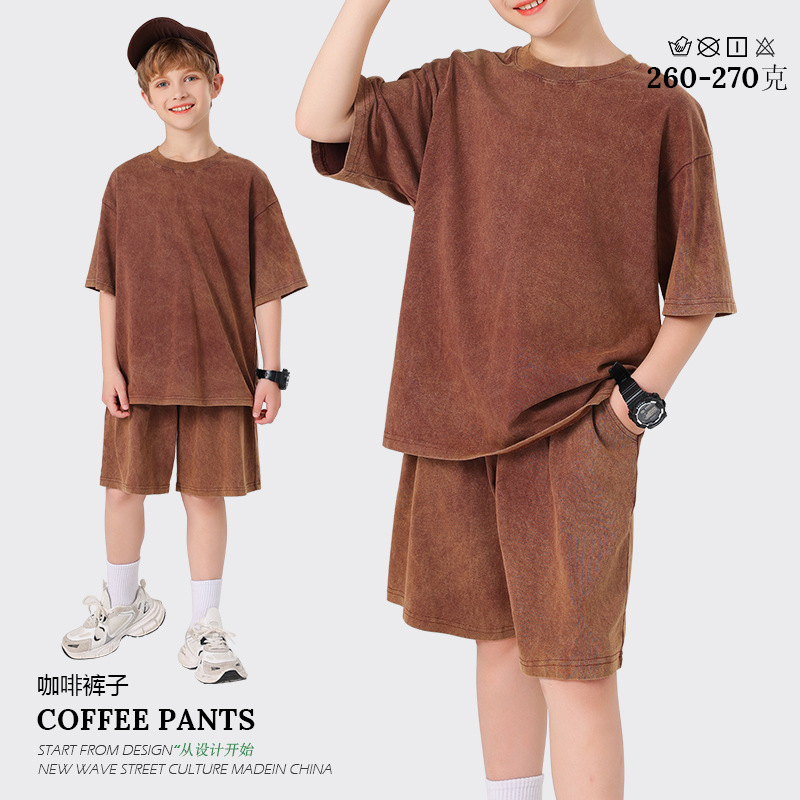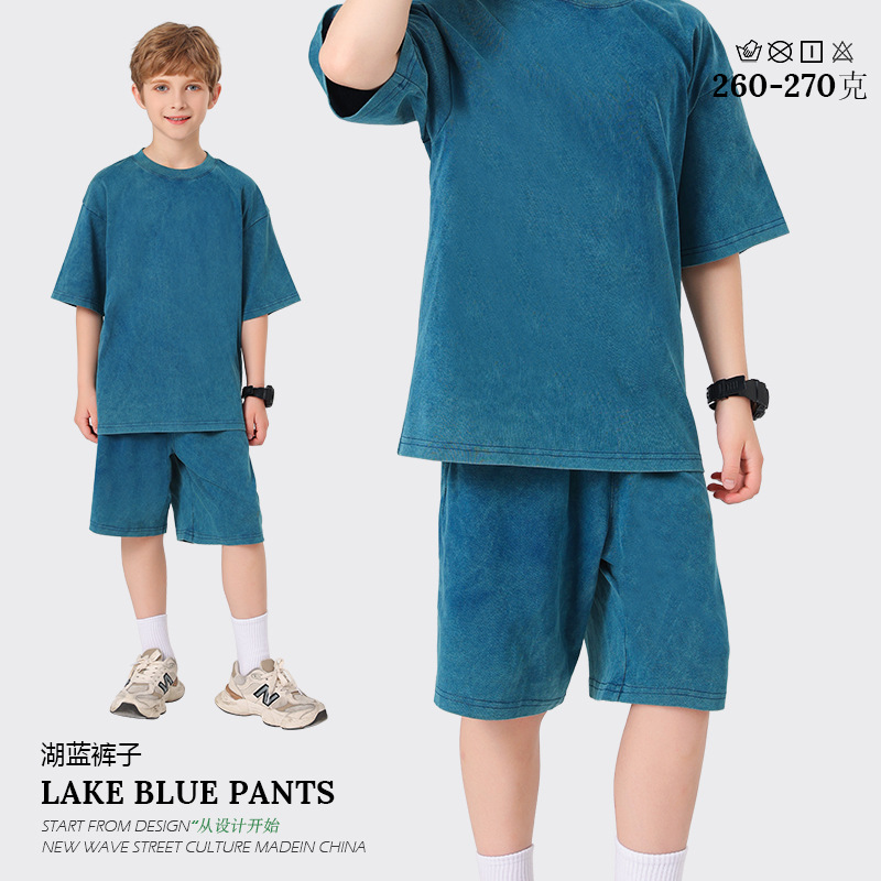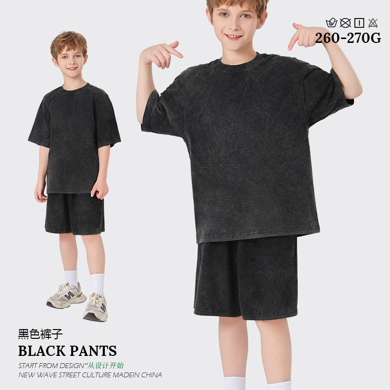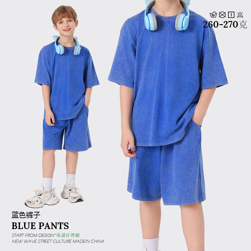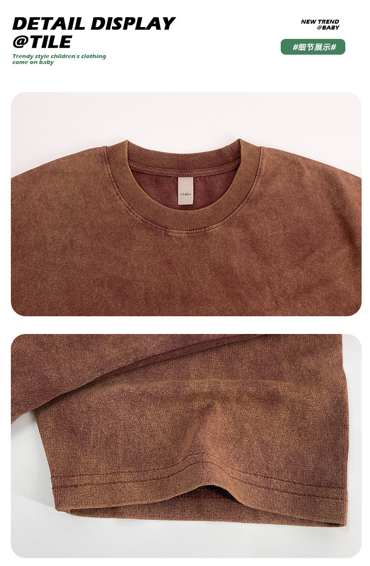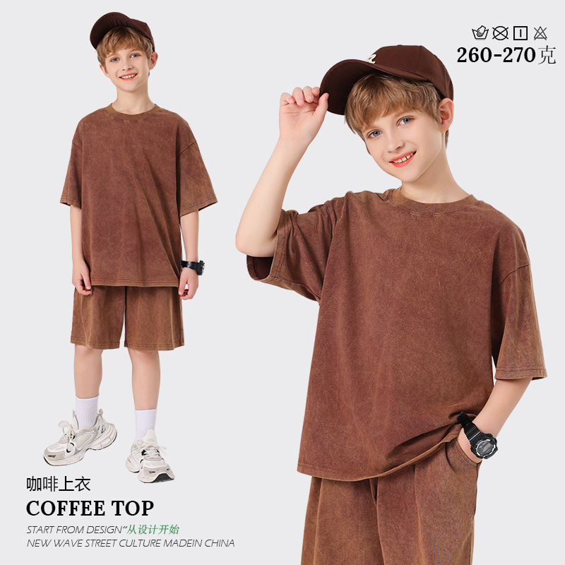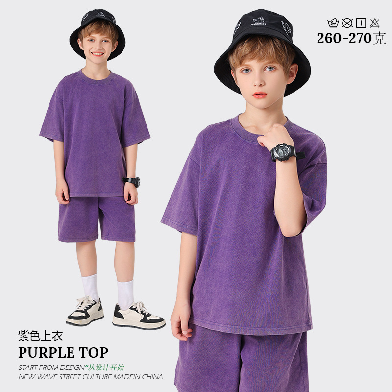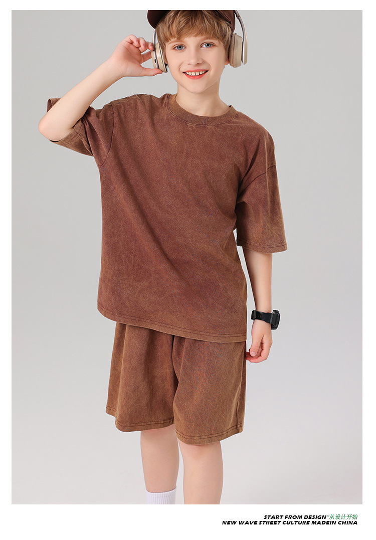 아동복 2025 봄 여름 단색 티셔츠 소매 반바지 유럽과 미국의 루즈한 아동용 솔티드 코튼 티셔츠 아동복스토어 가기