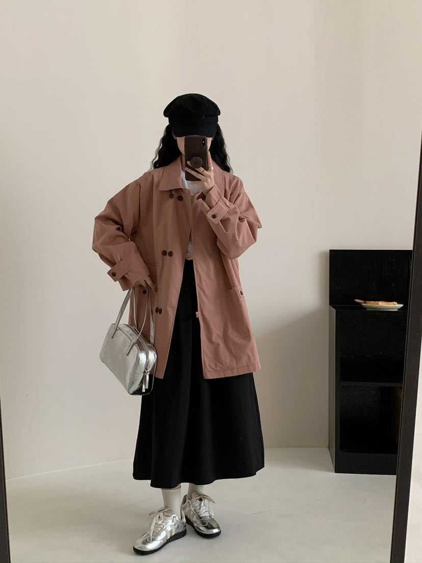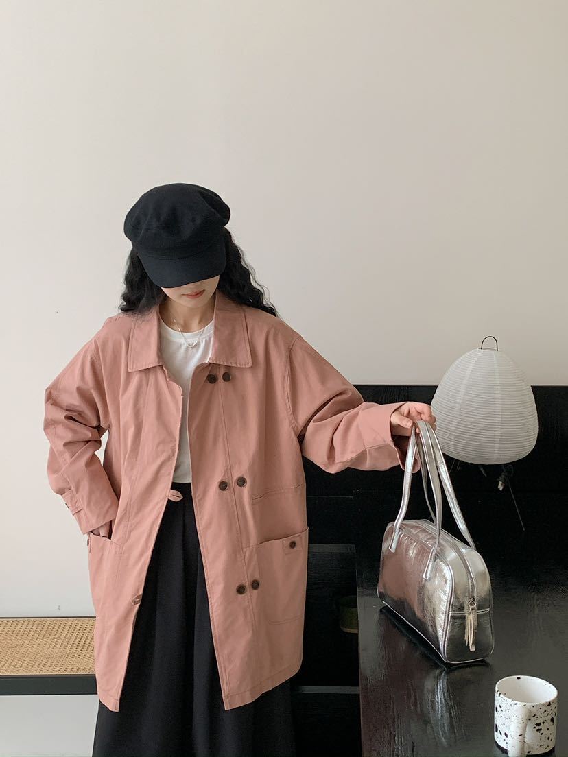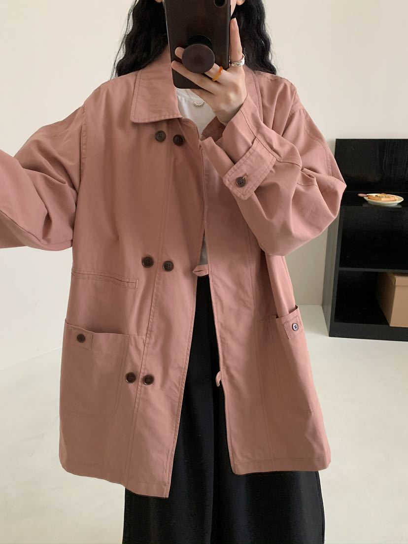 가을 2024 년 새 한국 캐주얼 옷깃 카디건 재킷 솔리드 컬러 올 매치 더블 브레스트 윈드브레이커