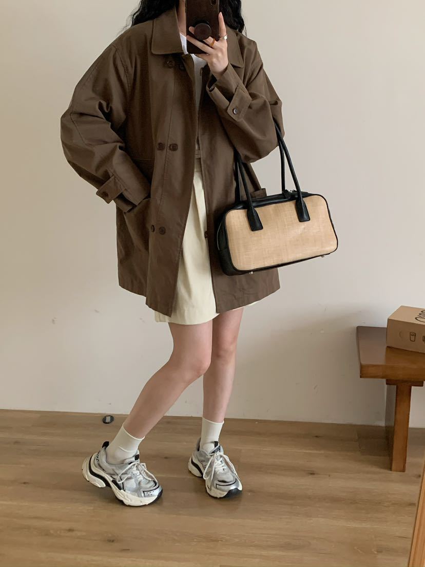가을 2024 년 새 한국 캐주얼 옷깃 카디건 재킷 솔리드 컬러 올 매치 더블 브레스트 윈드브레이커스토어 가기