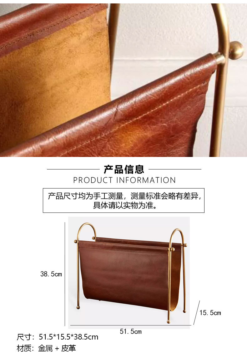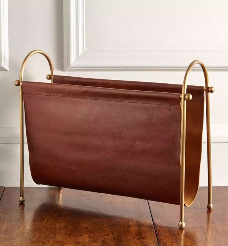 레트로 향수 빛 럭셔리 가죽 금속 잡지 랙 호텔 홈 거실 입구 보관 장식품 소프트 장식스토어 가기