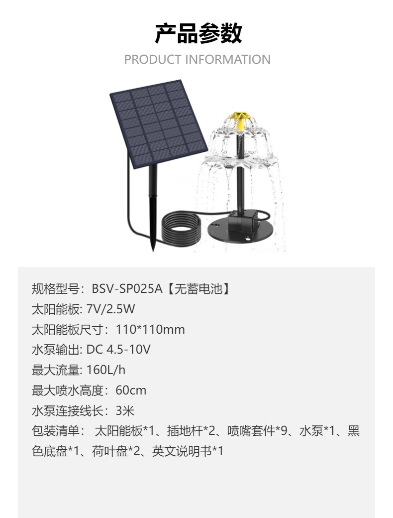• 태양광 직접 구동 분수 [SP025A(배터리 제외 2.5W)]