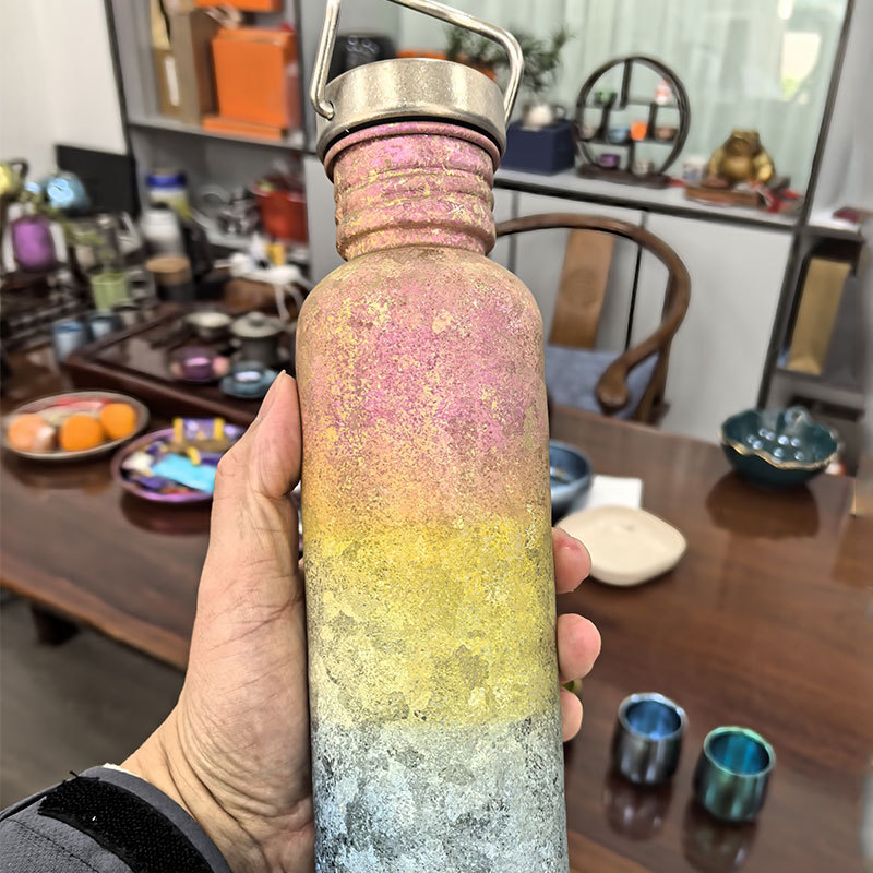 순수한 티타늄 스포츠 주전자 야외 사이클링 여행 휴대용 캠핑 물병 경량 야외 캠핑 워터 컵 불타는 블루스토어 가기