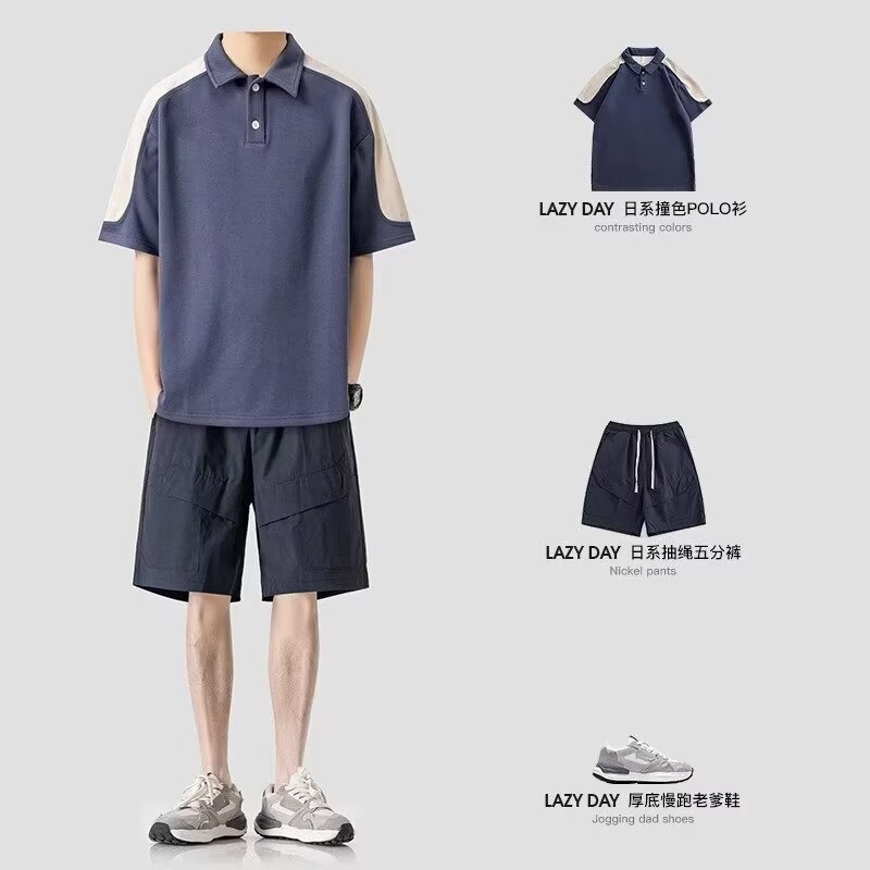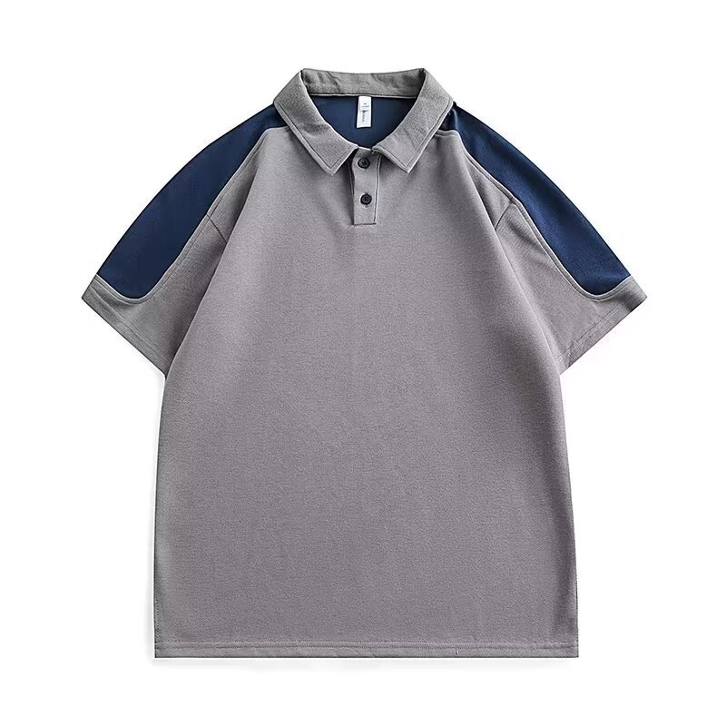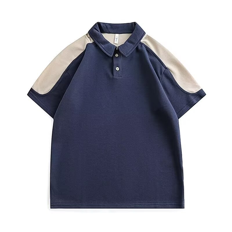 같은 스타일의 말차 이야기 복고풍 대학 시리즈 미국 컬러 매칭 스탠드 칼라 짧은 소매 남성과 여성 디자인 티셔츠 하프 슬리브 POL스토어 가기