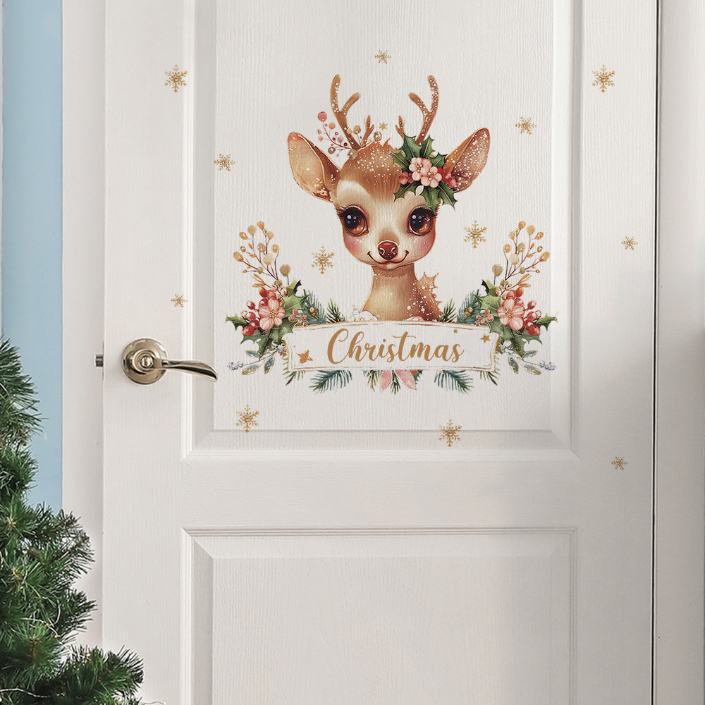 Fun-f225 크리스마스 새끼 사슴 영어 슬로건 녹색 식물 침실 거실 연구 배경 미화 벽 스티커 도매