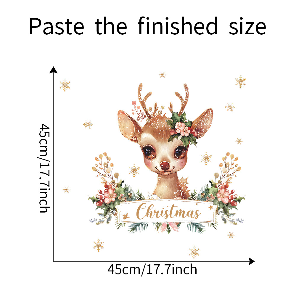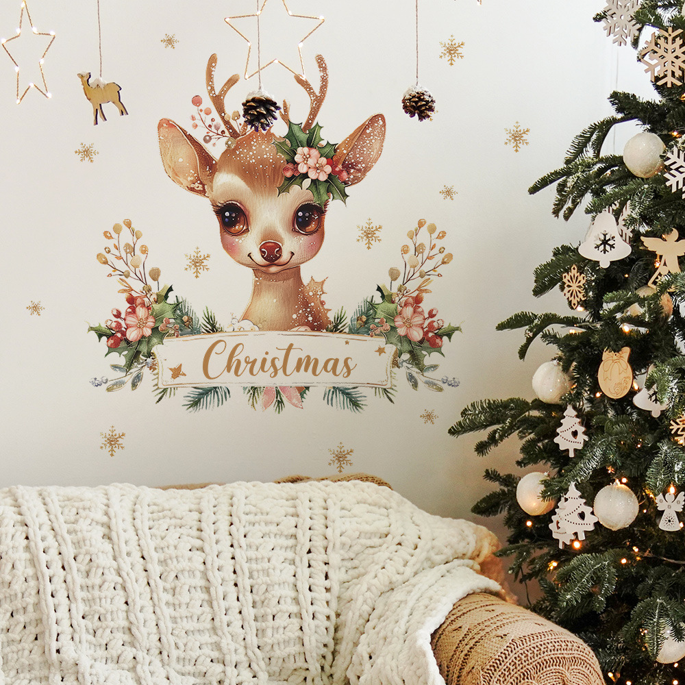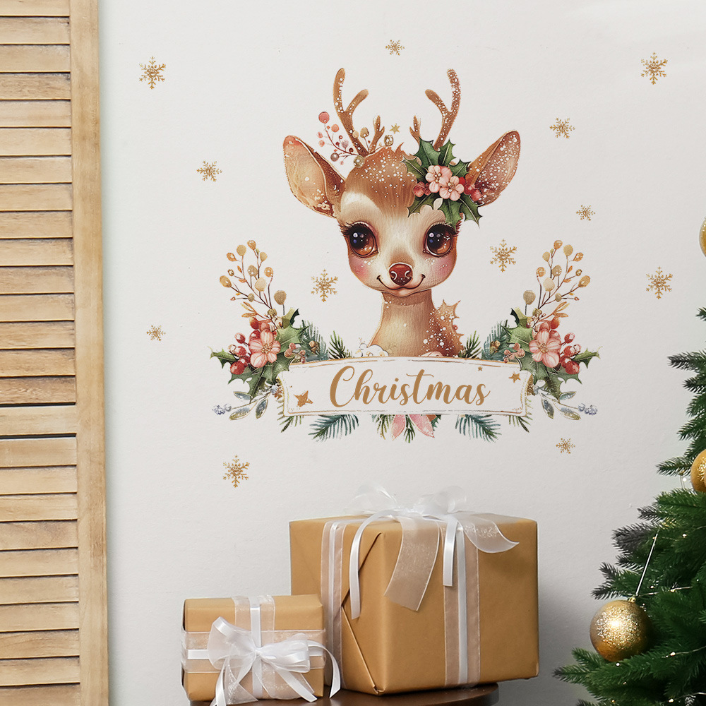 Fun-f225 크리스마스 새끼 사슴 영어 슬로건 녹색 식물 침실 거실 연구 배경 미화 벽 스티커 도매스토어 가기