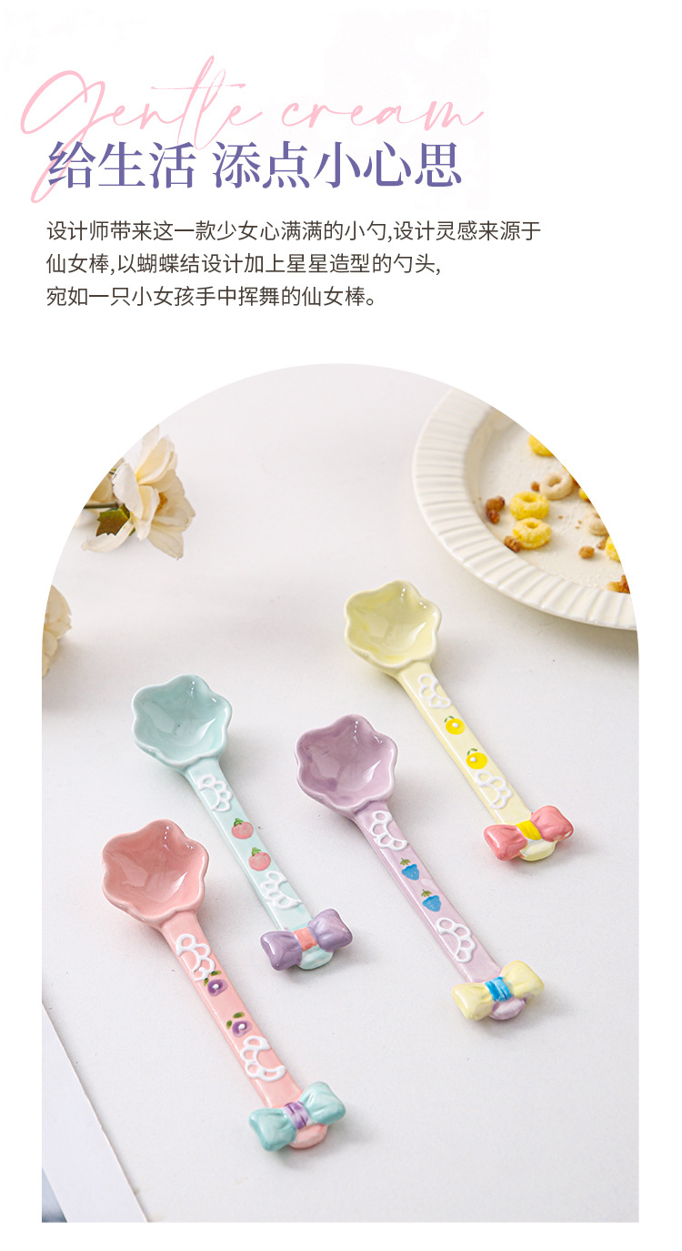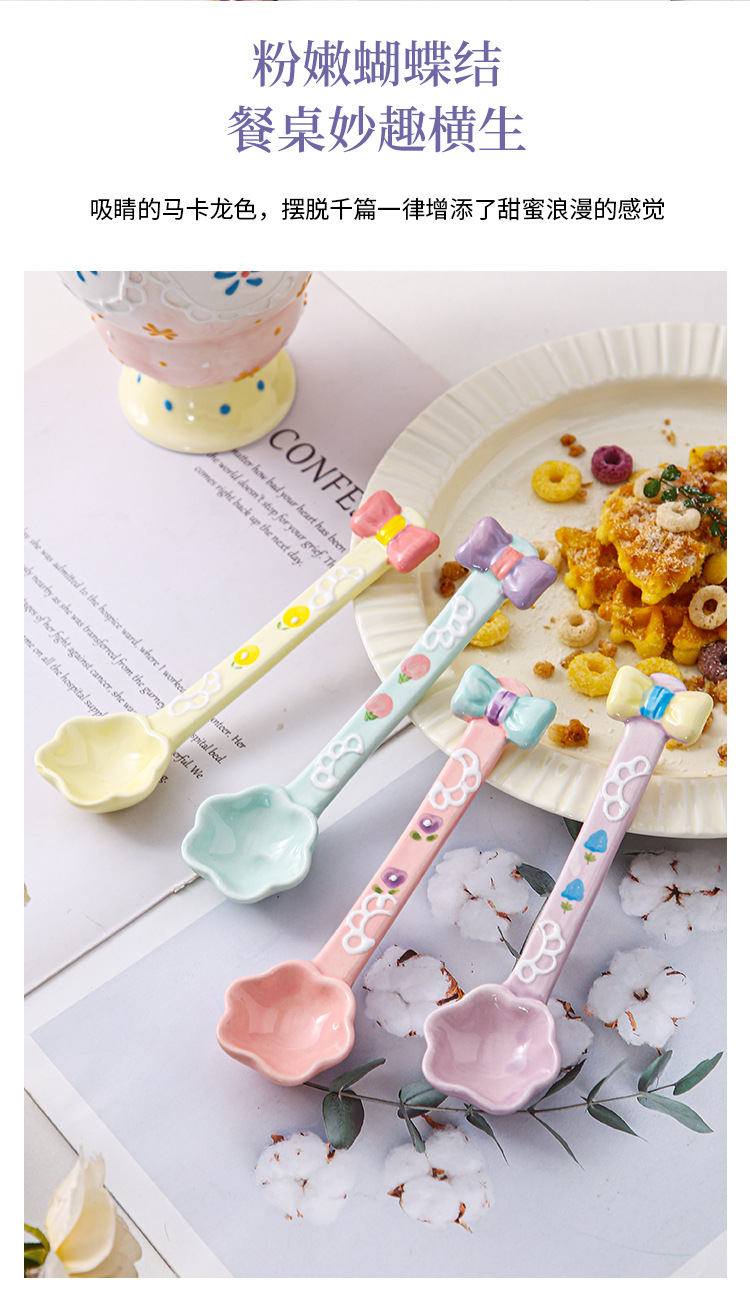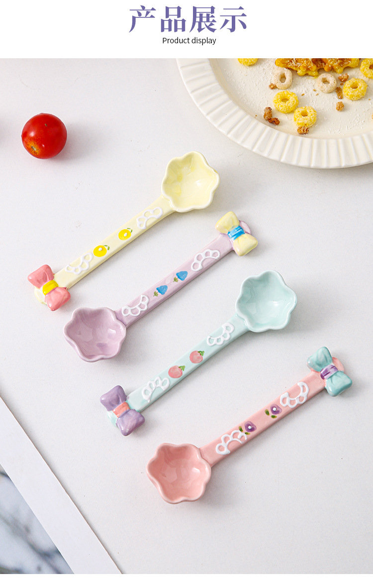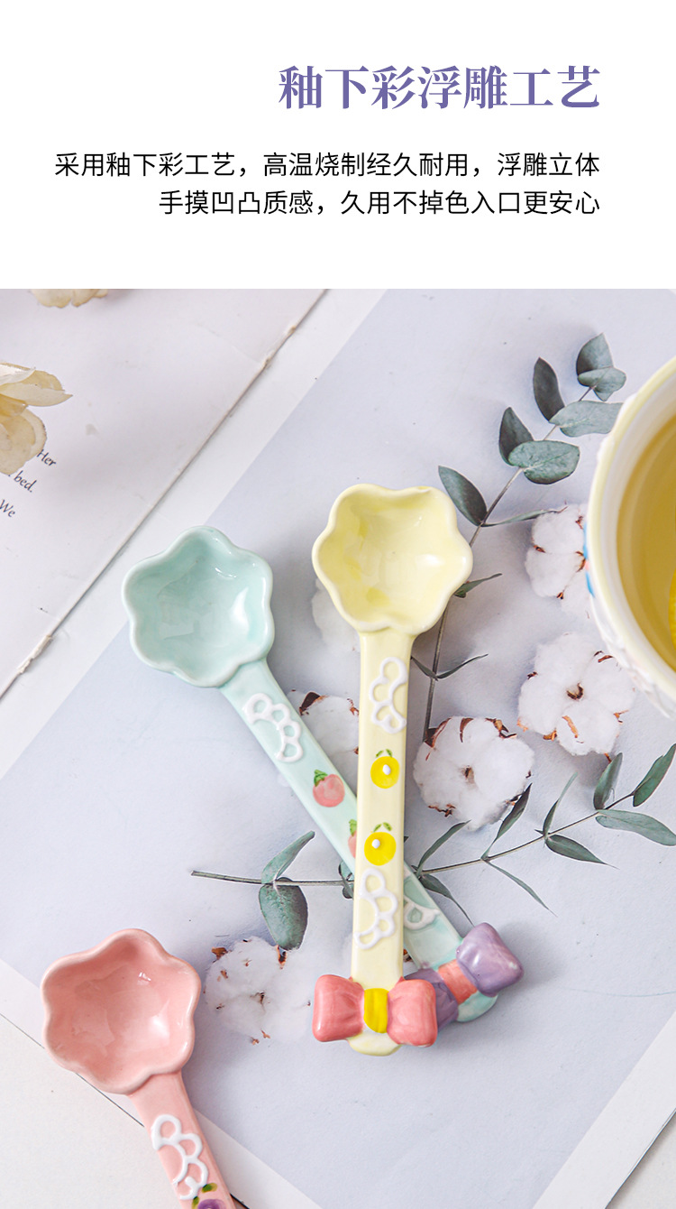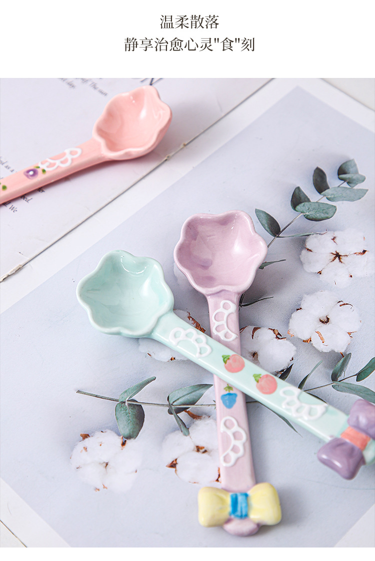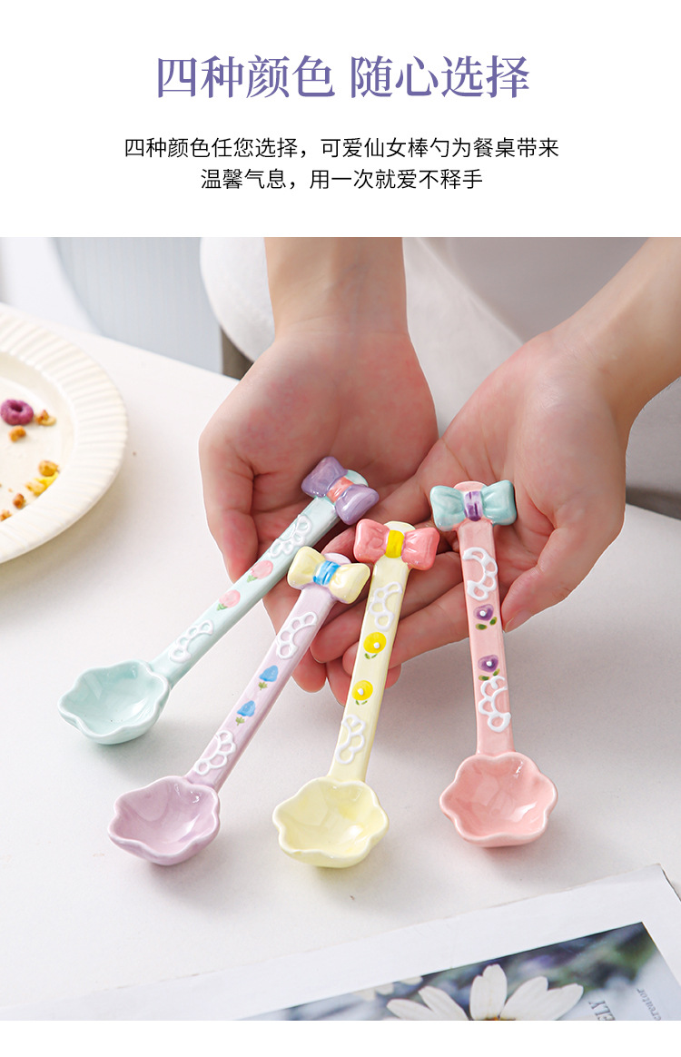 세라믹 긴 손잡이 숟가락 귀여운 디저트 스푼 소녀의 심장 쌀 심장 혼합 숟가락 가정용 숟가락 커피 숟가락 아이스크림 숟가락