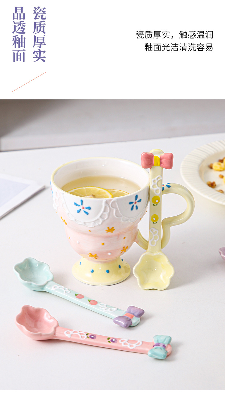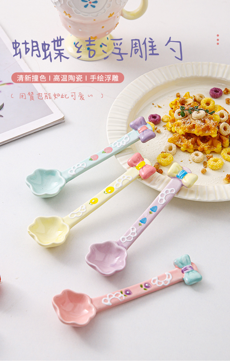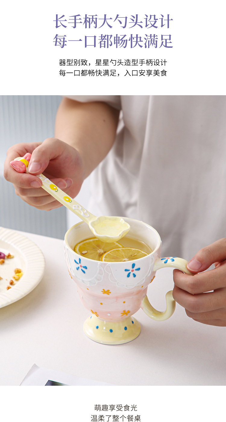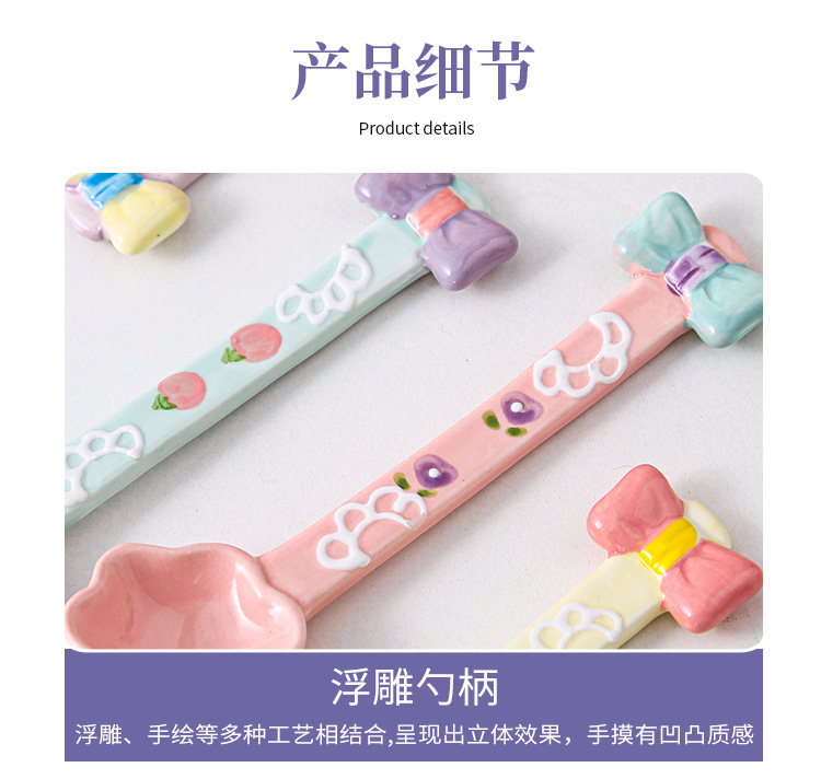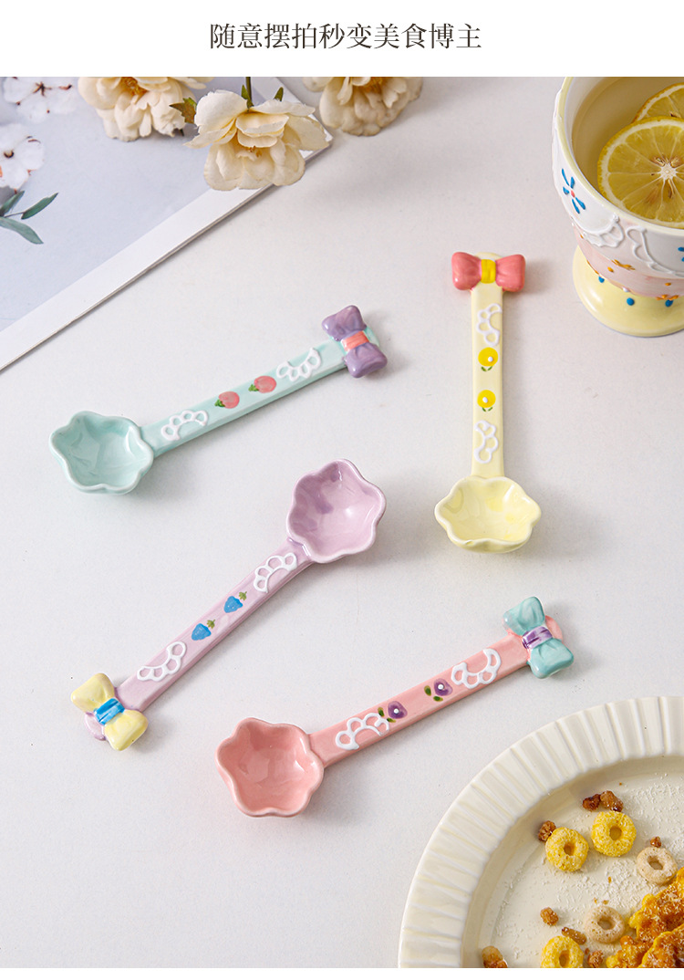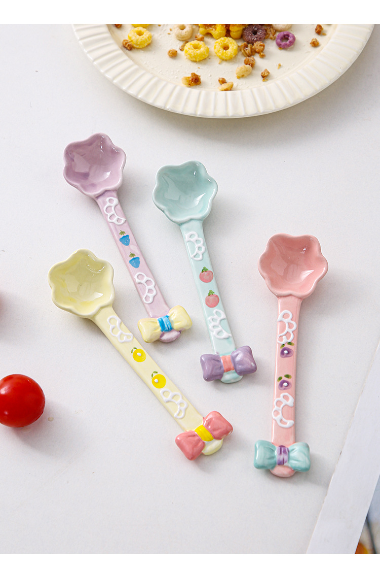 세라믹 긴 손잡이 숟가락 귀여운 디저트 스푼 소녀의 심장 쌀 심장 혼합 숟가락 가정용 숟가락 커피 숟가락 아이스크림 숟가락