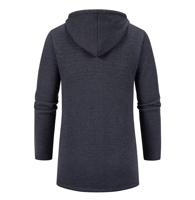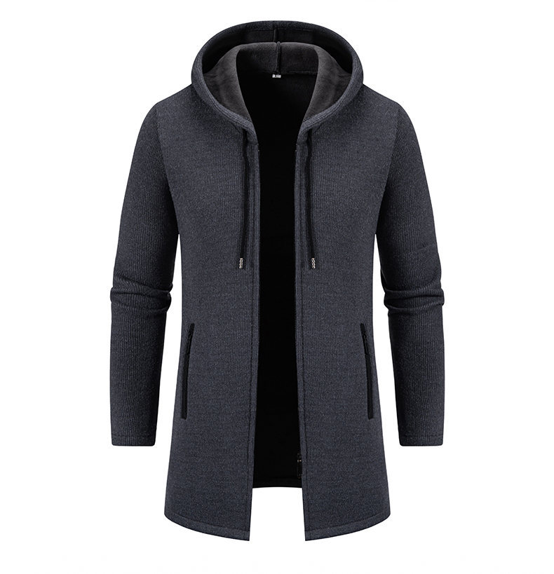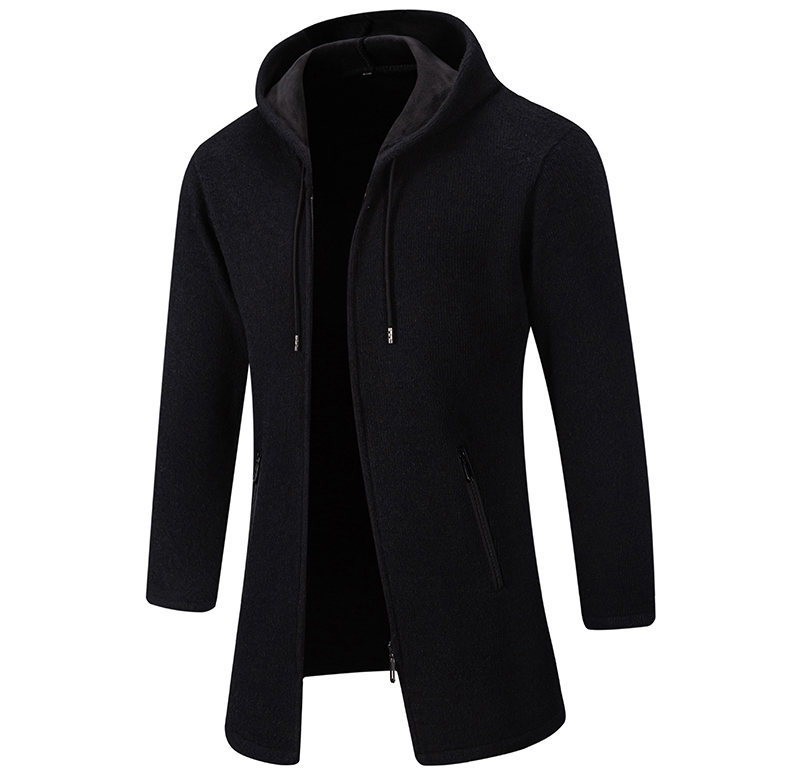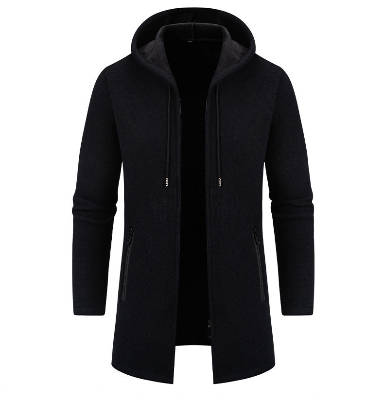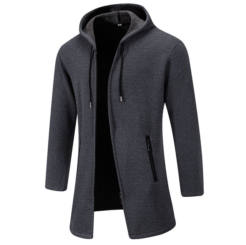 대외 무역 가을과 겨울 새로운 남성 스웨터 재킷 긴 코트 단색 기모 후드 스웨터 남성 코트