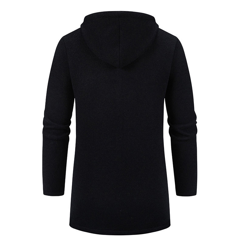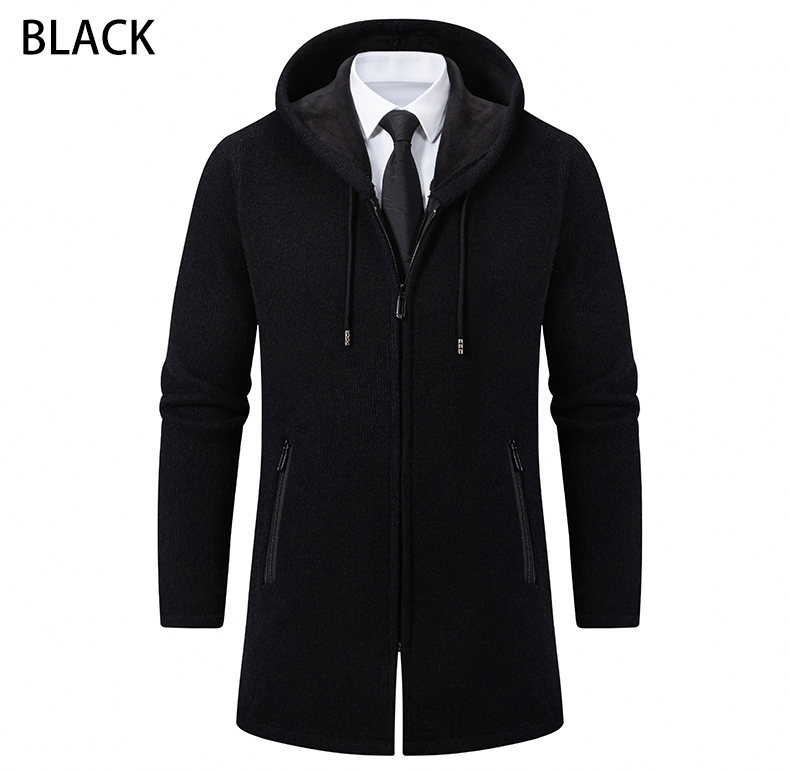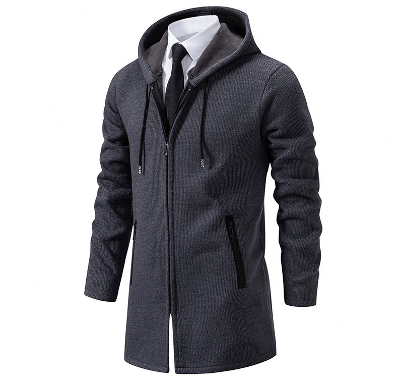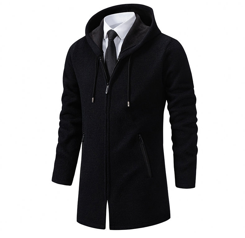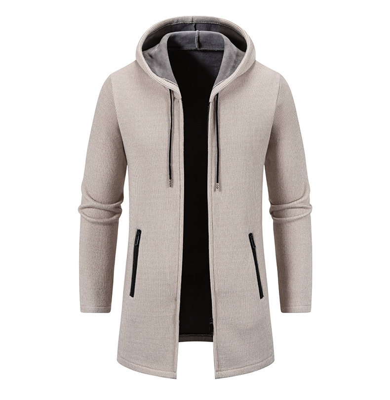 대외 무역 가을과 겨울 새로운 남성 스웨터 재킷 긴 코트 단색 기모 후드 스웨터 남성 코트