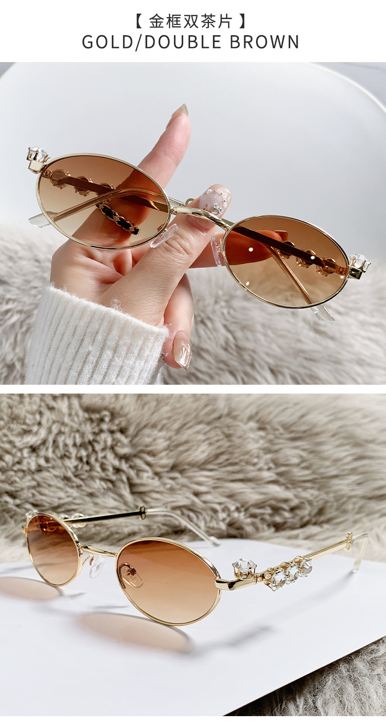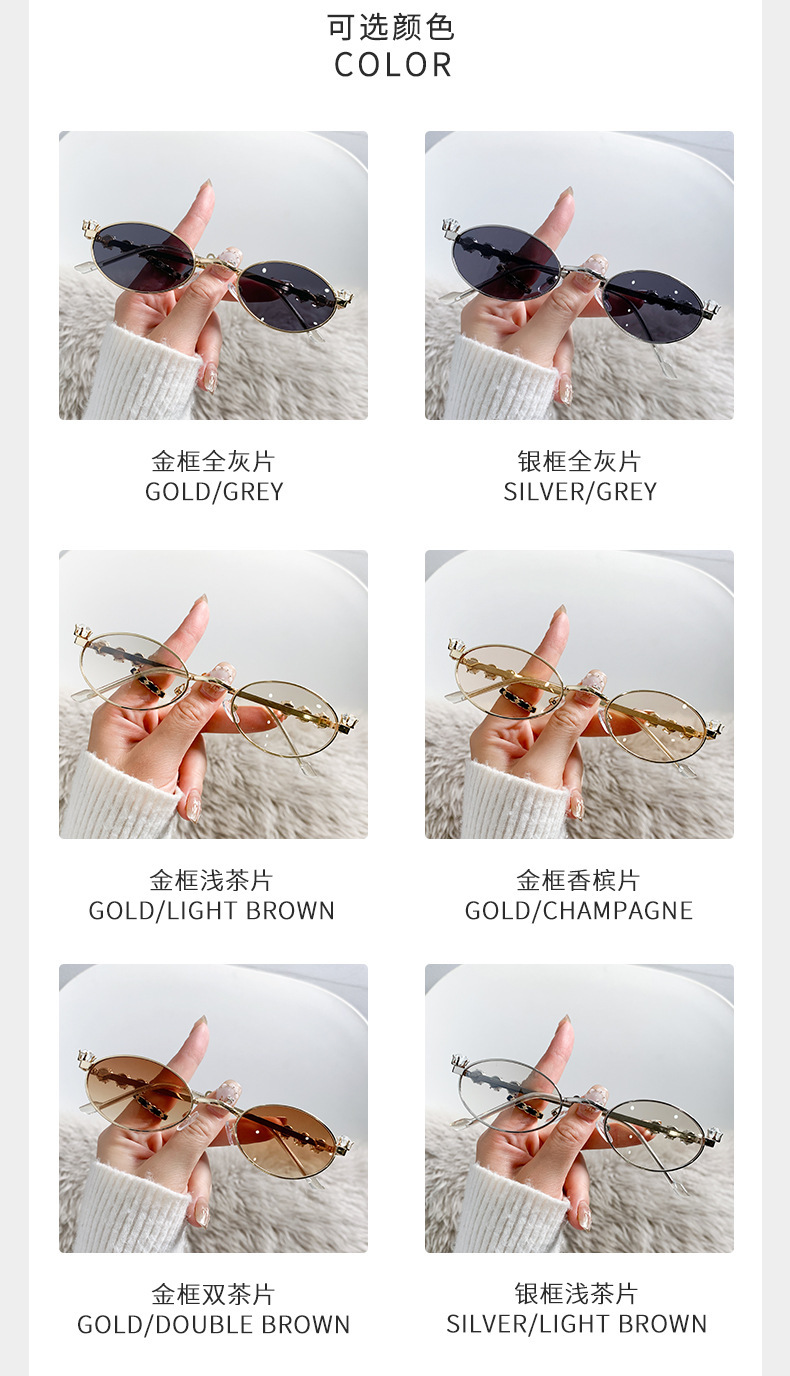 국경 새 그물 빨간 거리 선글라스 개인화 된 금속 Y2K 다이아몬드 타원형 작은 프레임 안경 선글라스 공장 아울렛스토어 가기